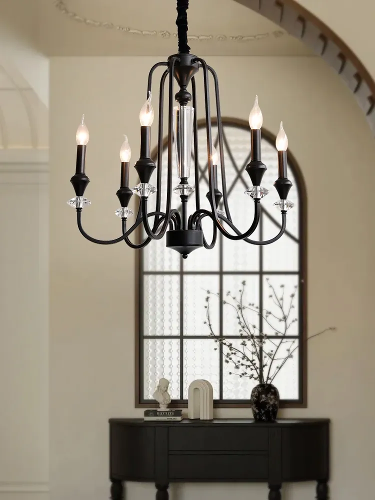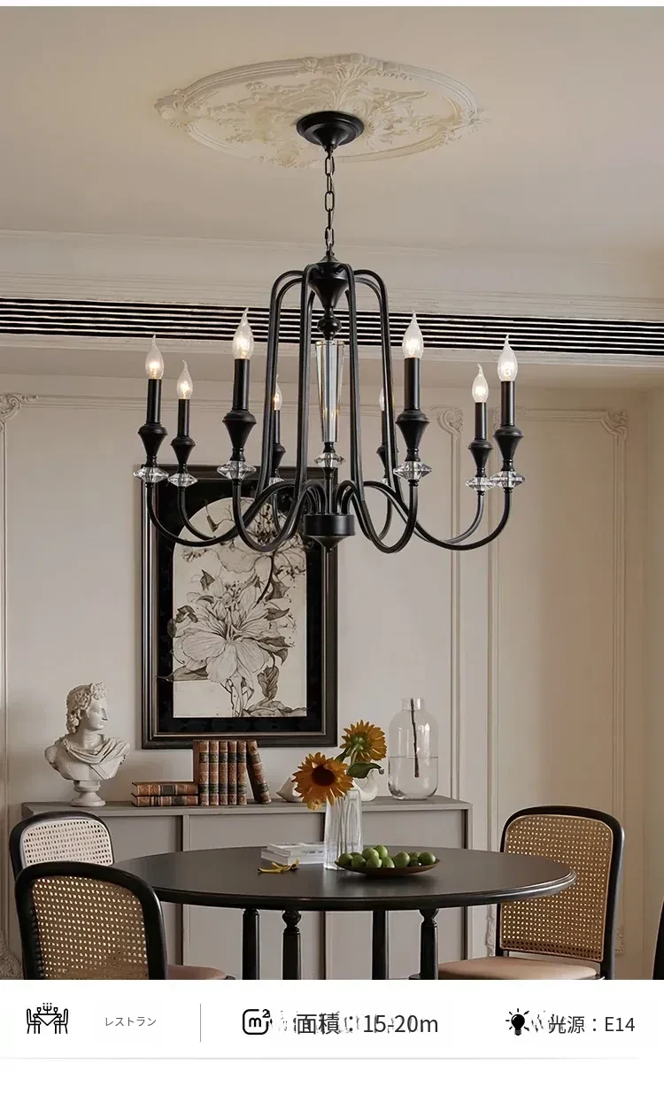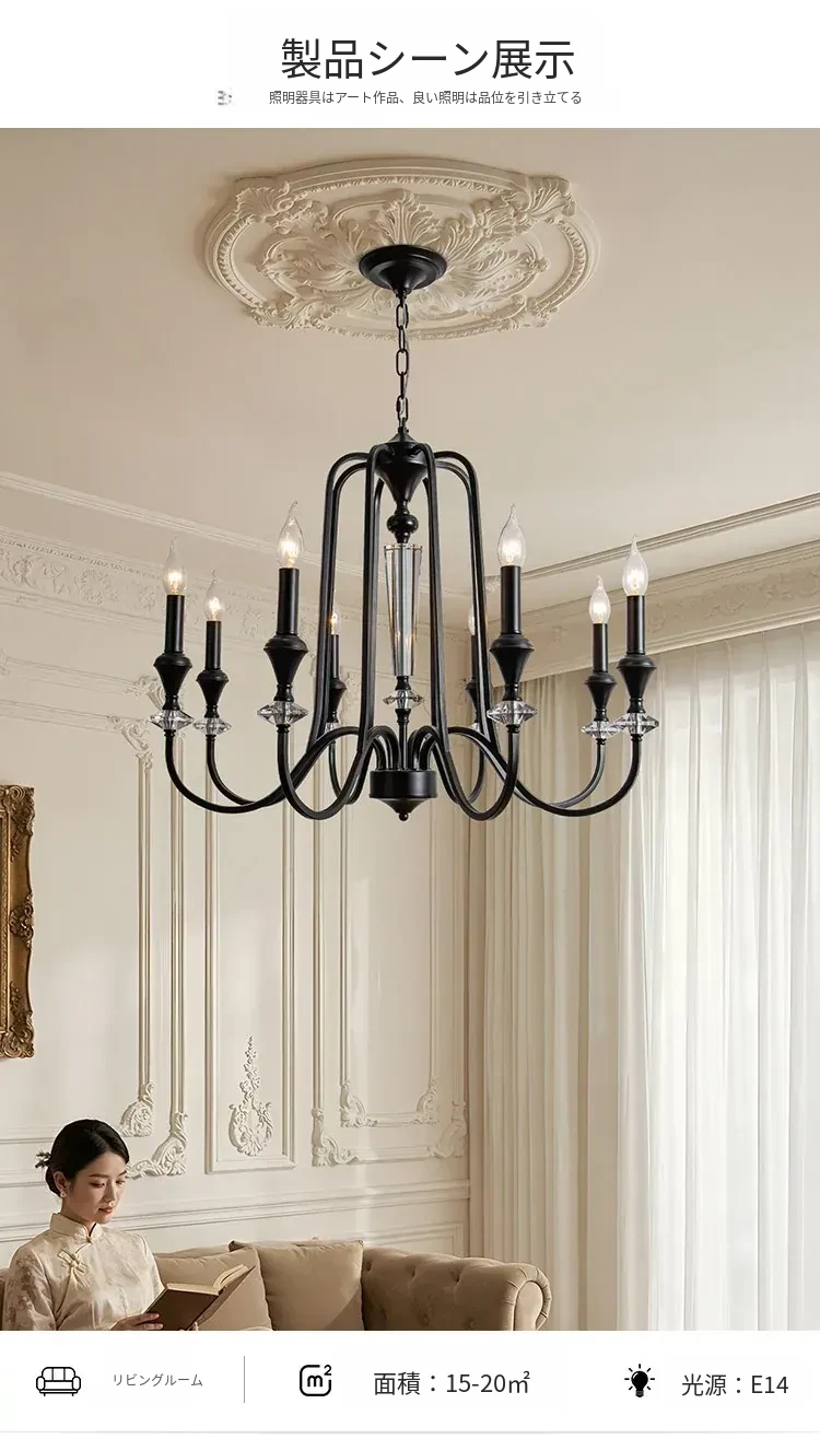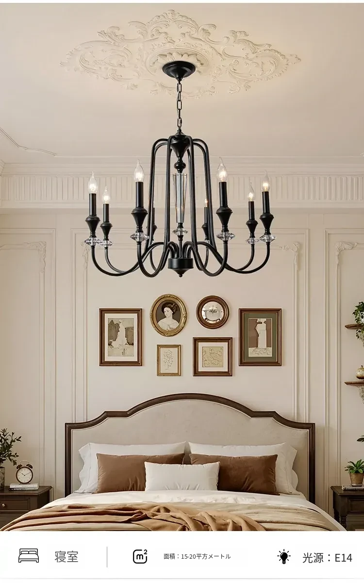 フレンチアンティーク風シャンデリア|豪華別荘やメゾネットに最適なリビングライト|アメリカンヴィンテージスタイルの寝室用|クリスタル製キャンドルライトで優雅なダイニングを演出