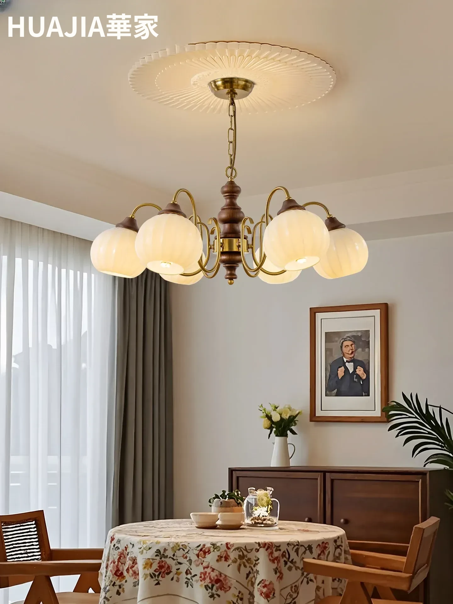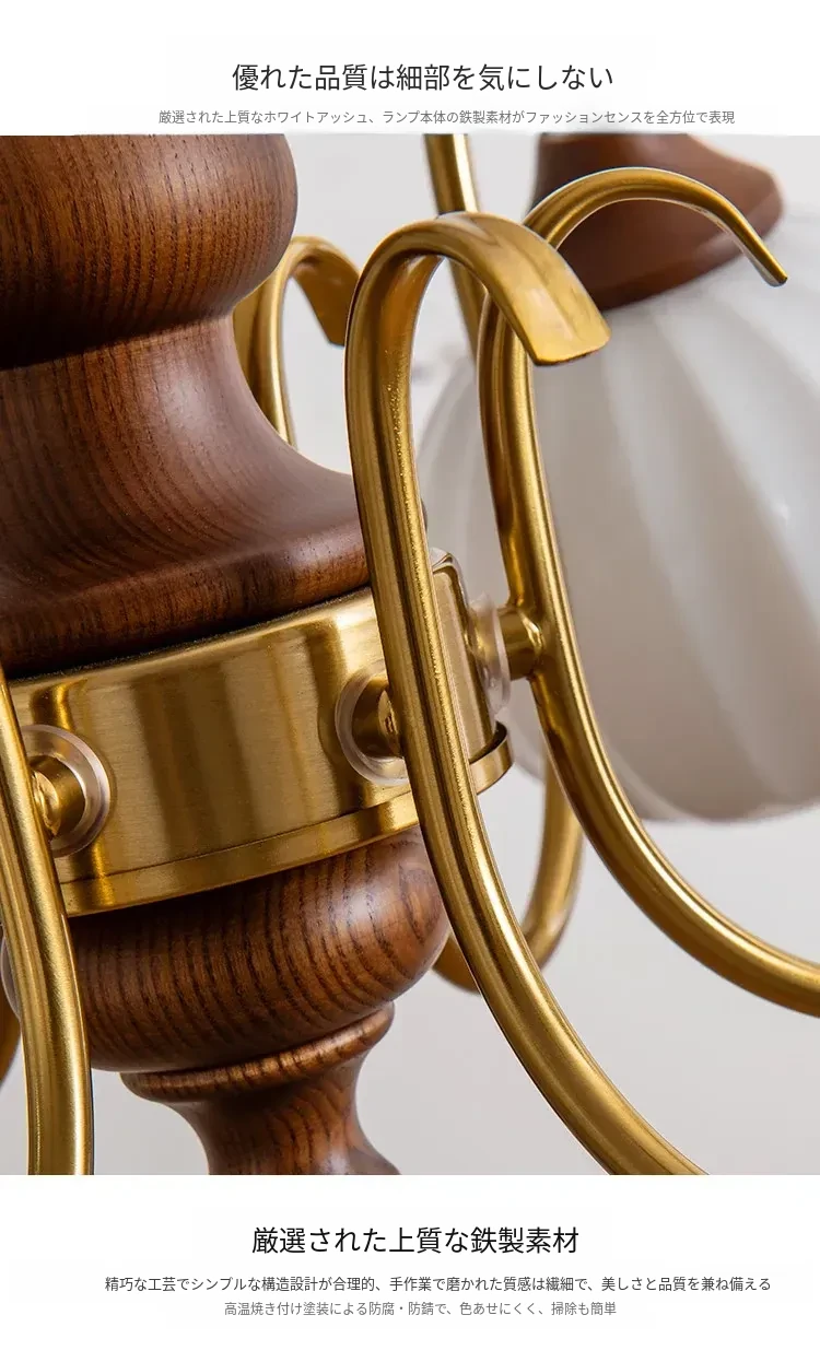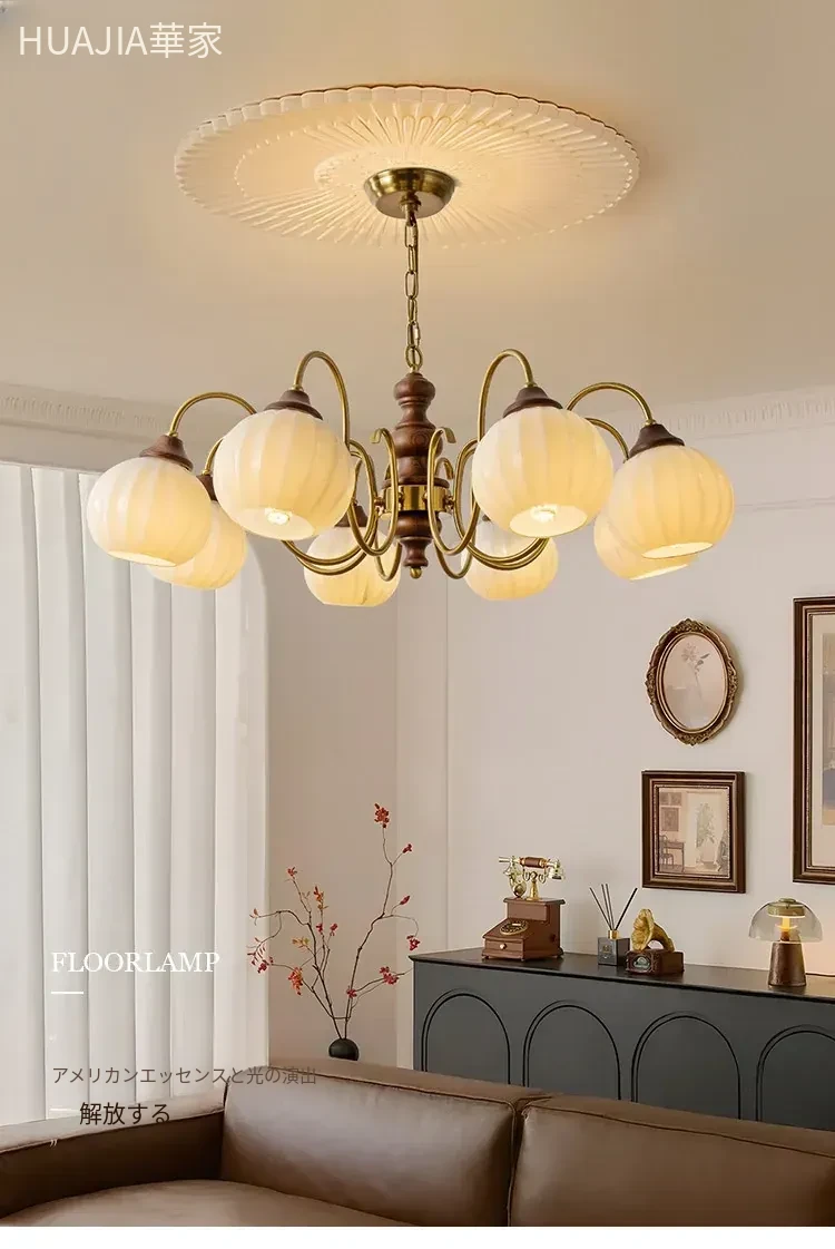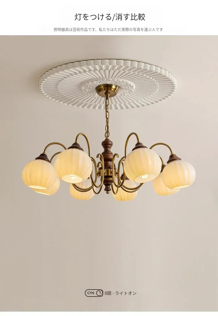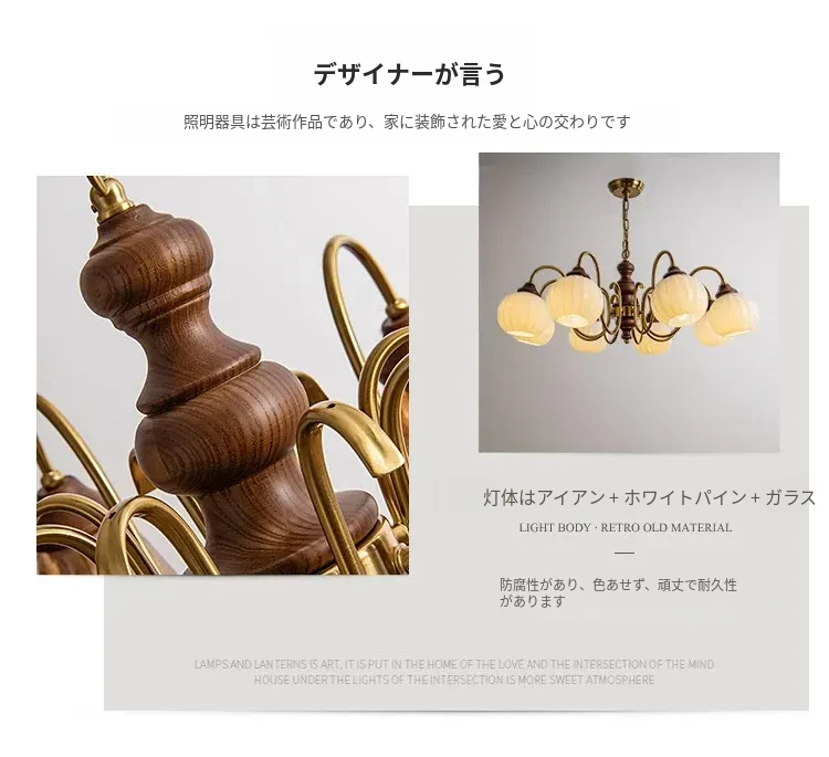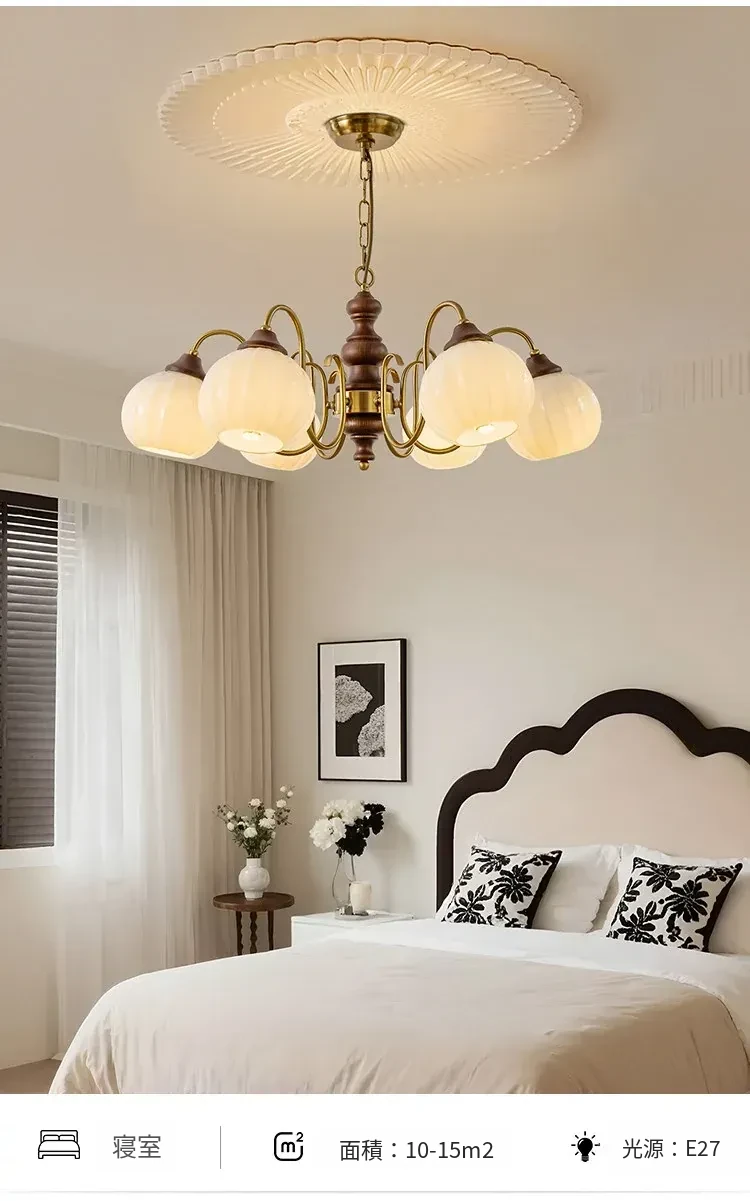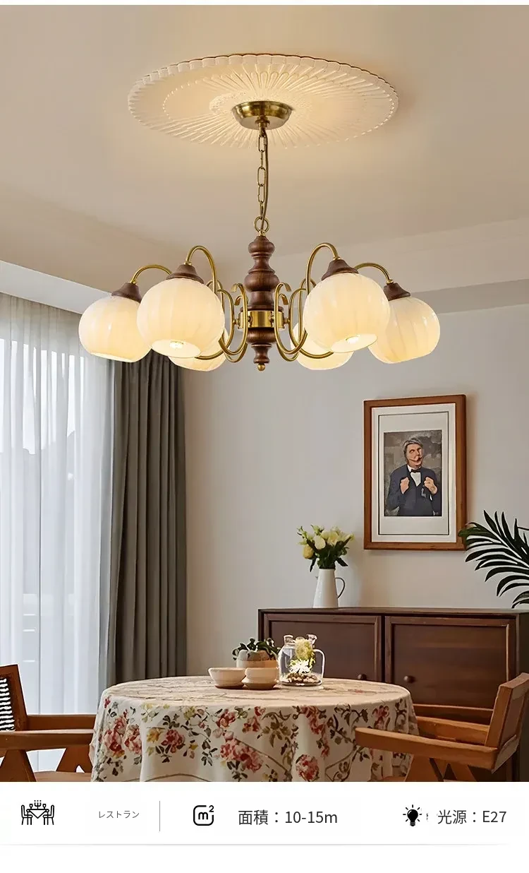 フランス風シャンデリア 中古スタイルのリビングライト アメリカンヴィンテージの雰囲気 演出するウォールナット材とガラスの吊り灯で、心地よい空間を演出します。寝室やダイニングにも最適!