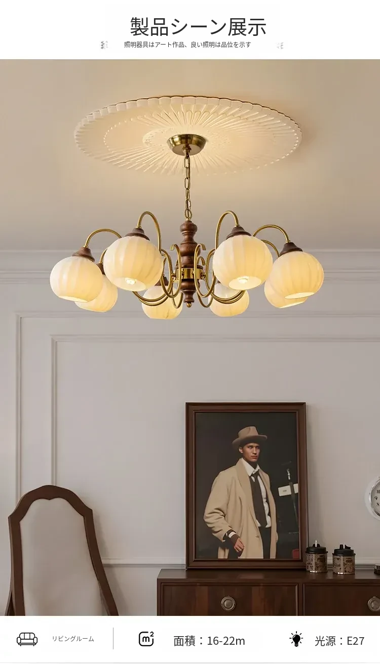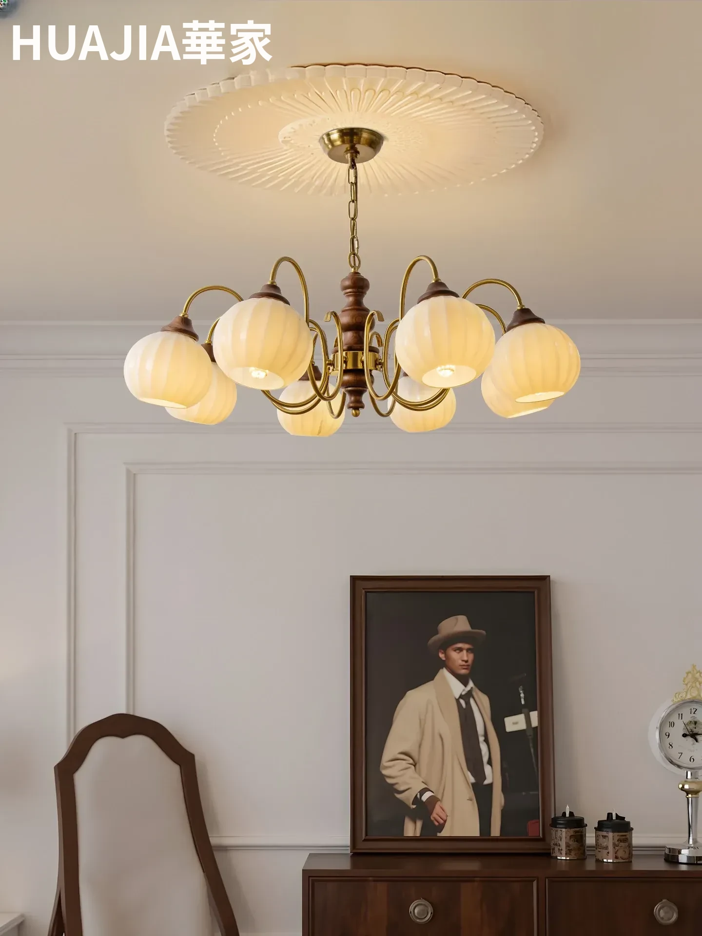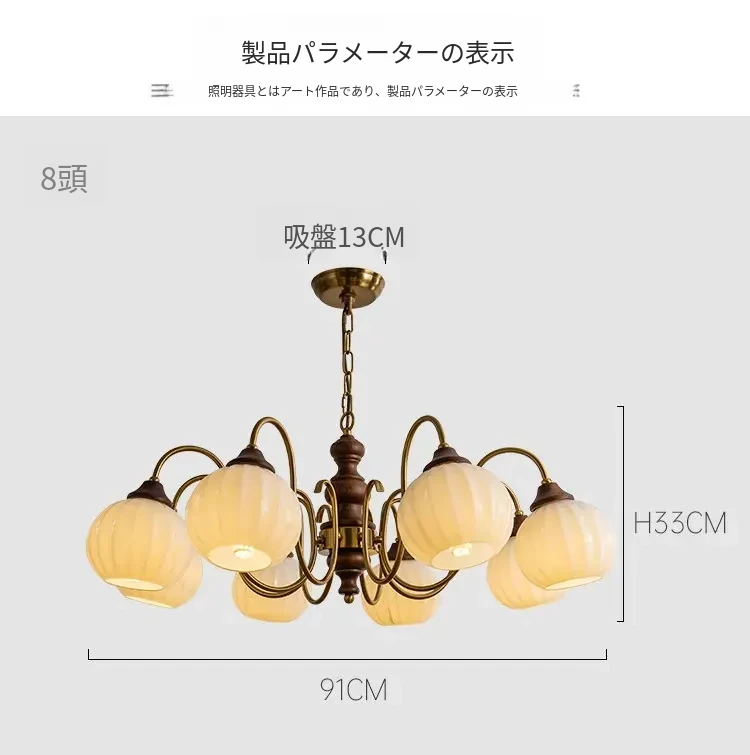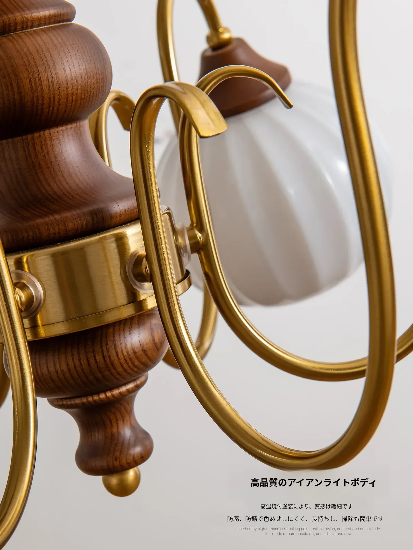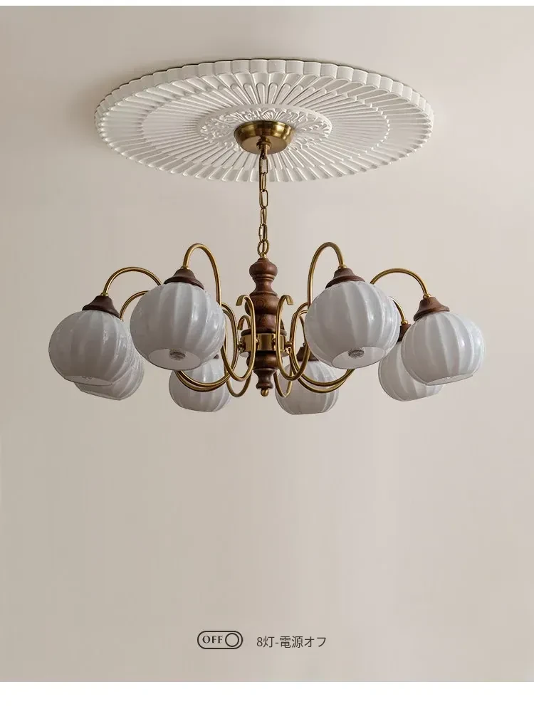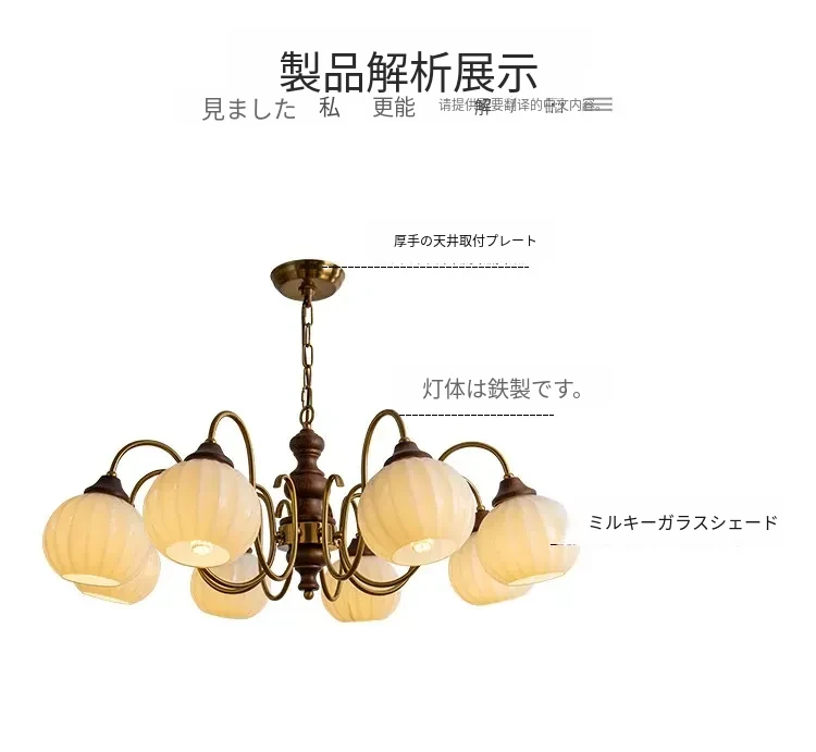 フランス風シャンデリア 中古スタイルのリビングライト アメリカンヴィンテージの雰囲気 演出するウォールナット材とガラスの吊り灯で、心地よい空間を演出します。寝室やダイニングにも最適!
