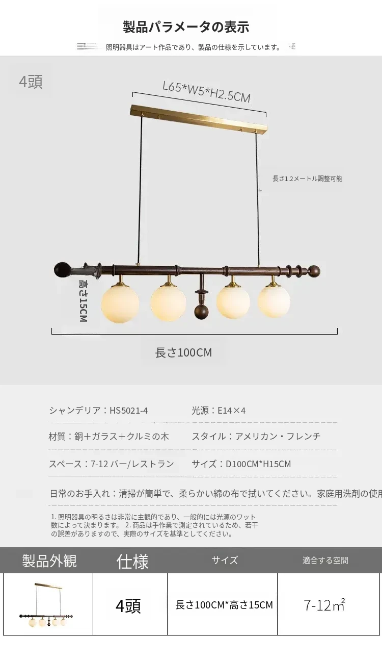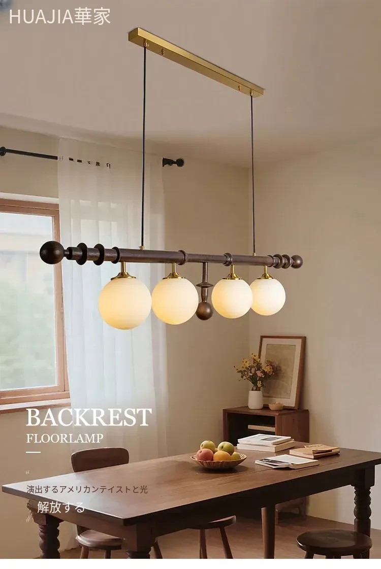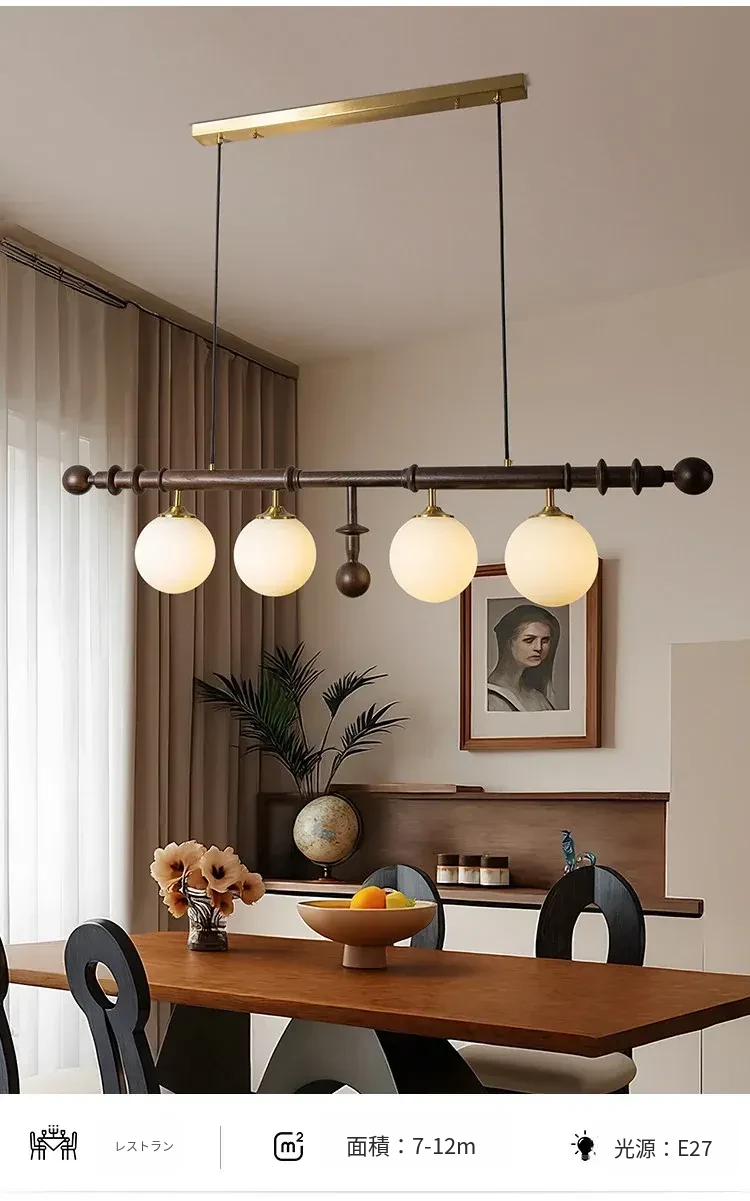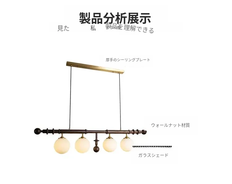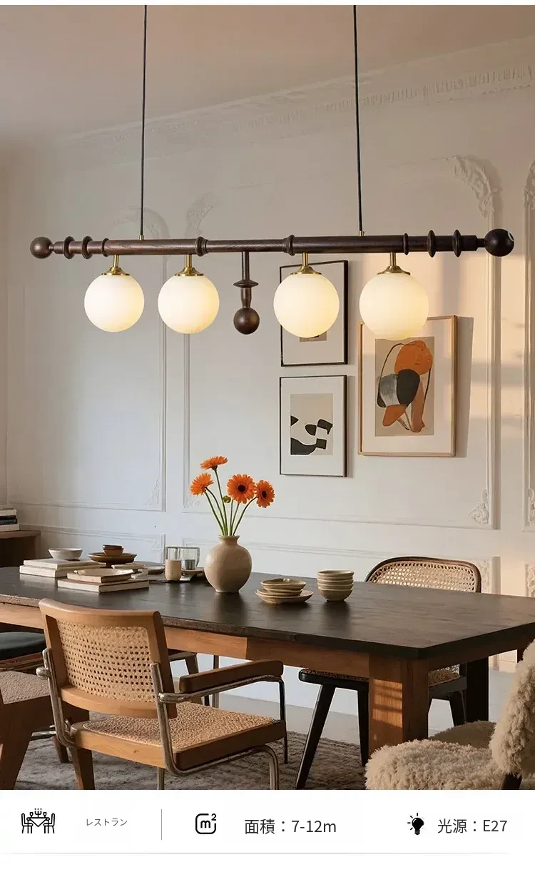 フレンチヴィンテージスタイルのレストラン用シャンデリア、アメリカンレトロのシンプルなウォールナット製ロングテーブル&バー、エレガントなガラスシェード付き。おしゃれで心地よい空間を演出します!