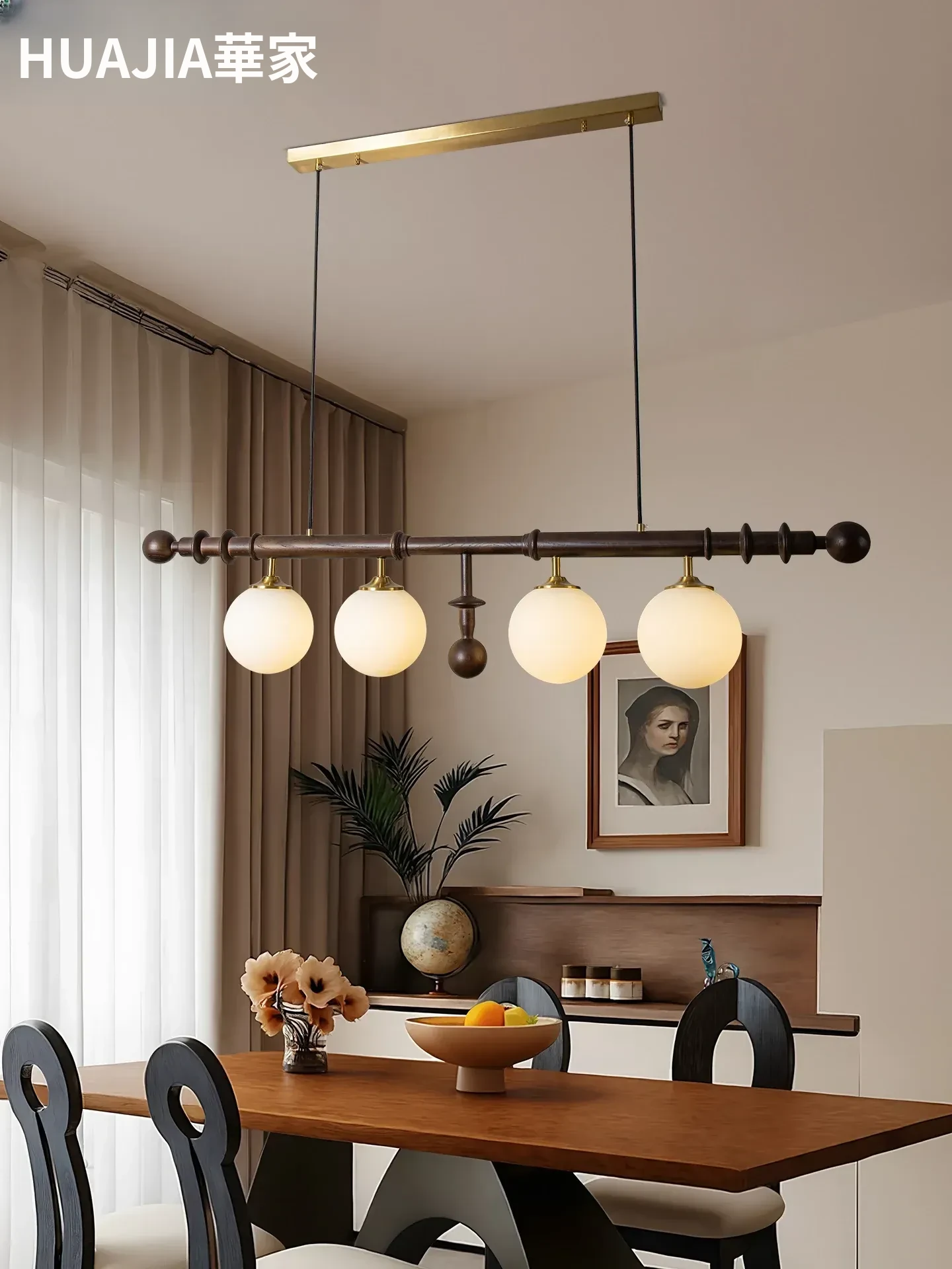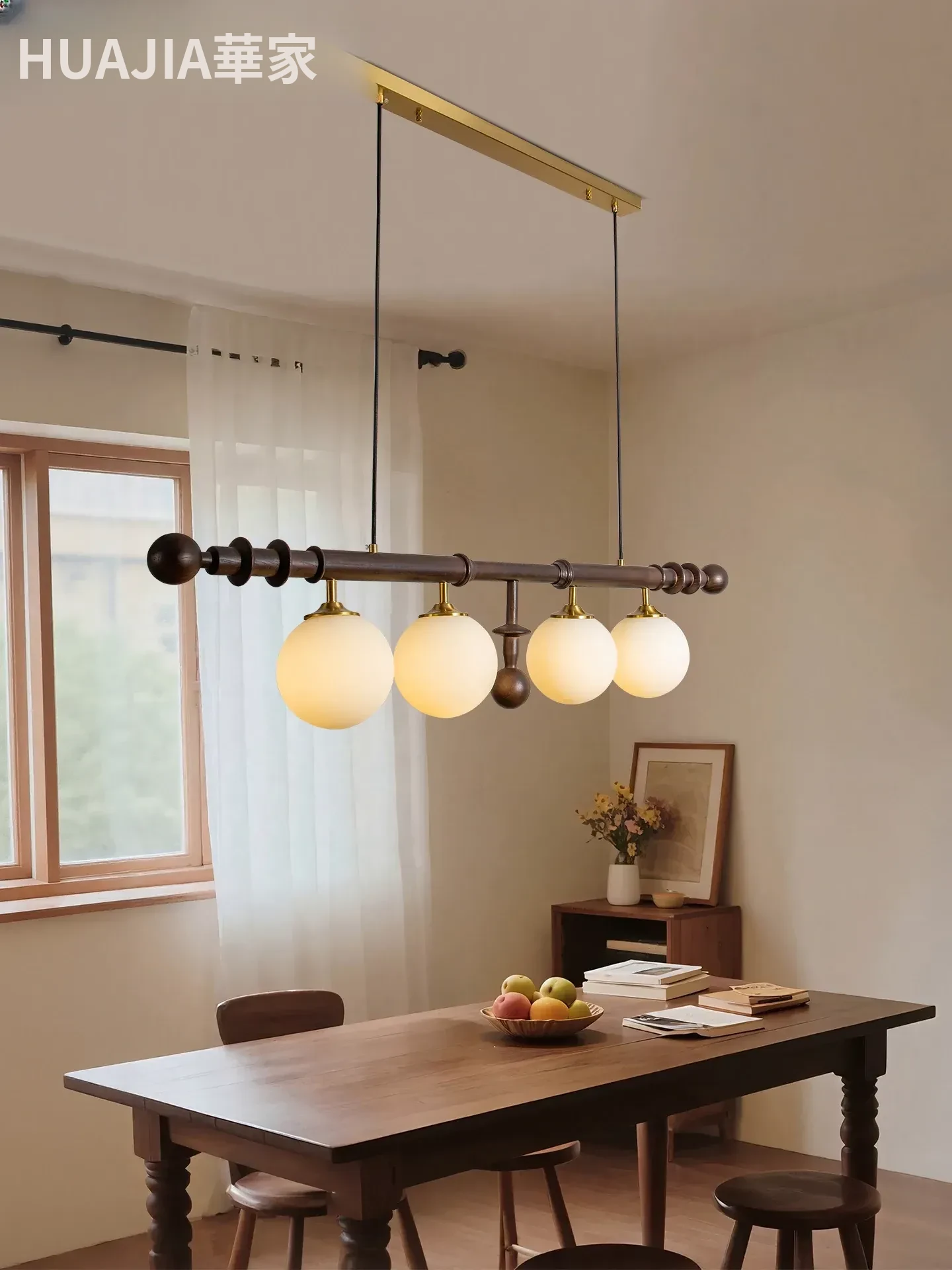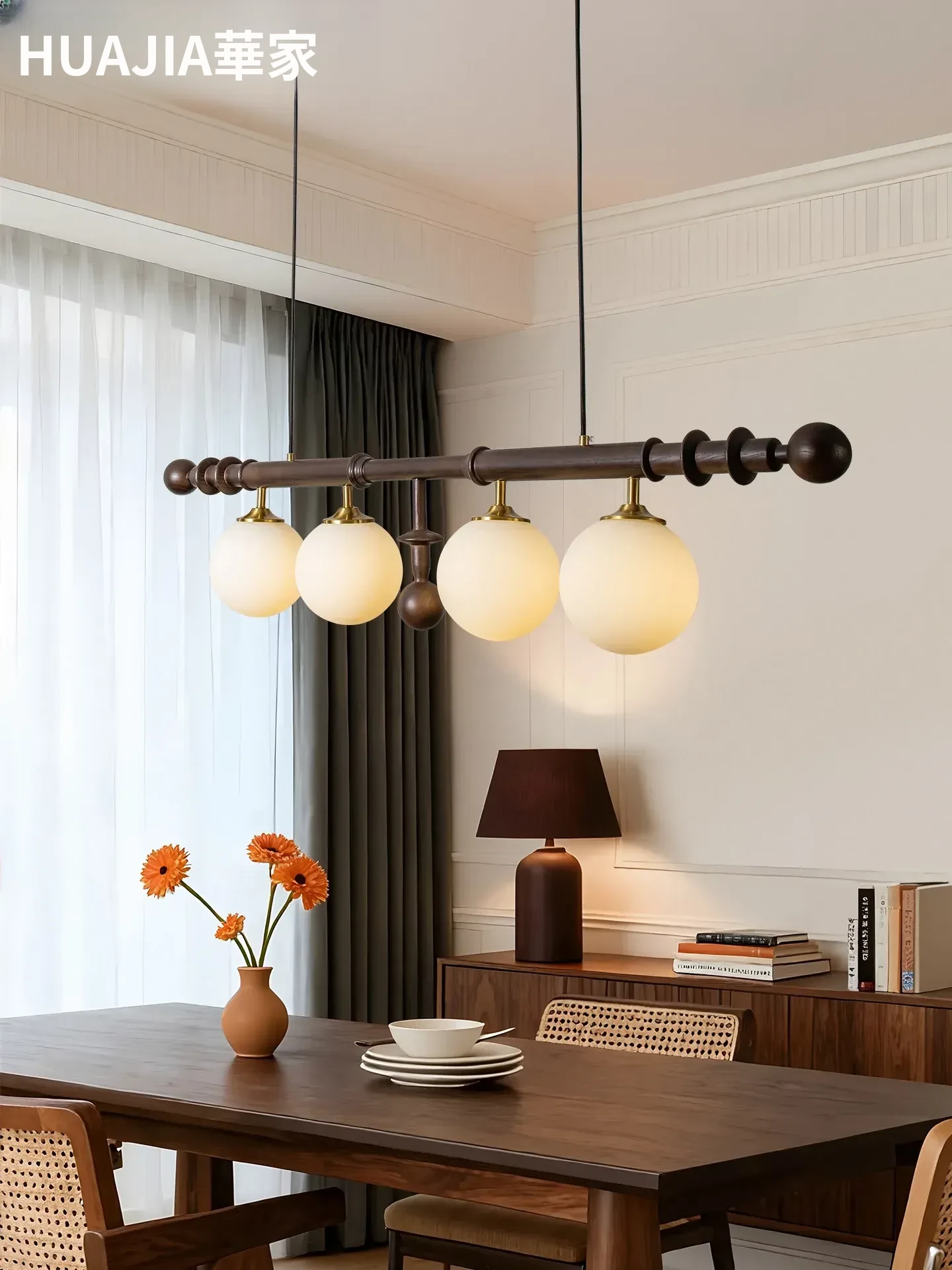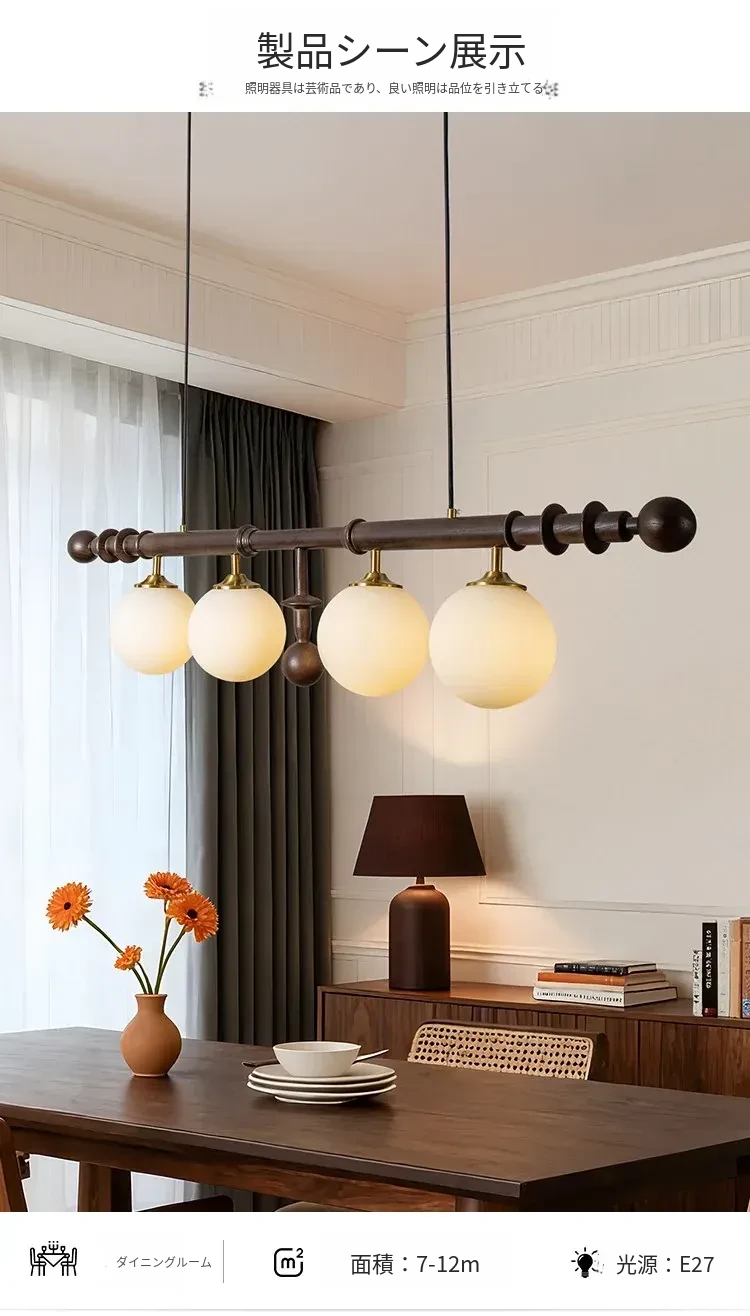 フレンチヴィンテージスタイルのレストラン用シャンデリア、アメリカンレトロのシンプルなウォールナット製ロングテーブル&バー、エレガントなガラスシェード付き。おしゃれで心地よい空間を演出します!
