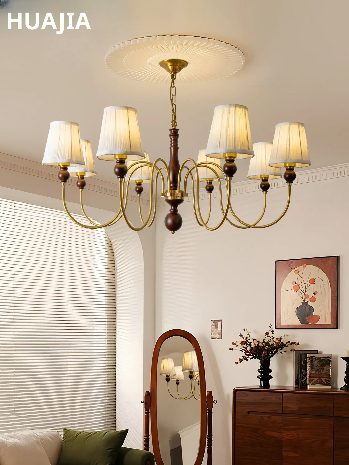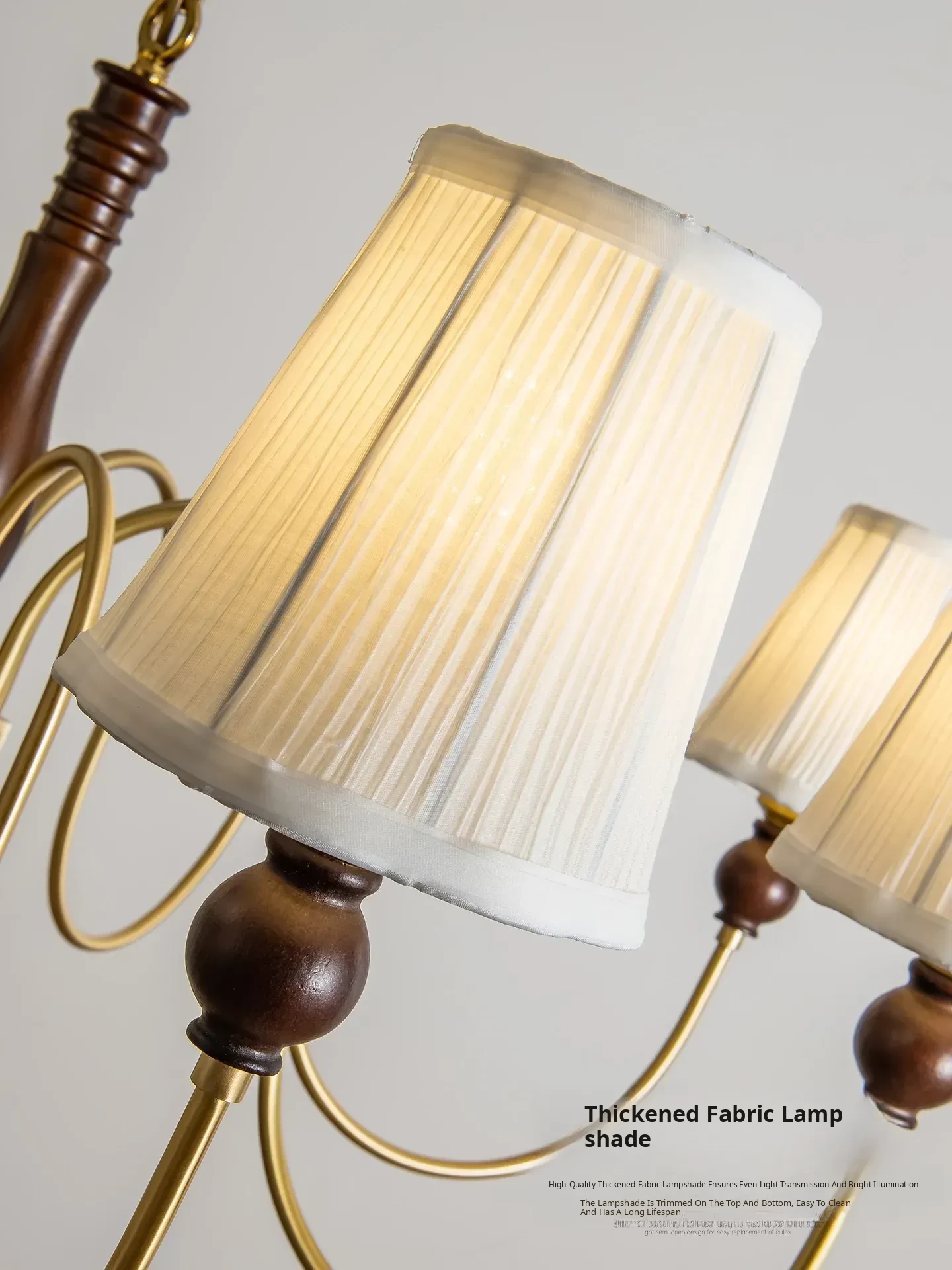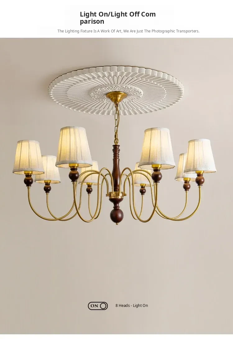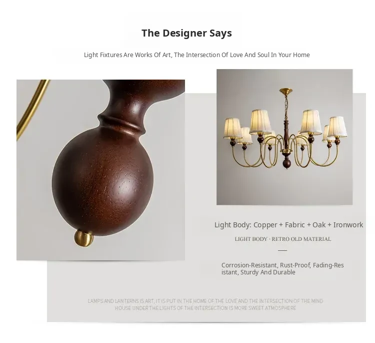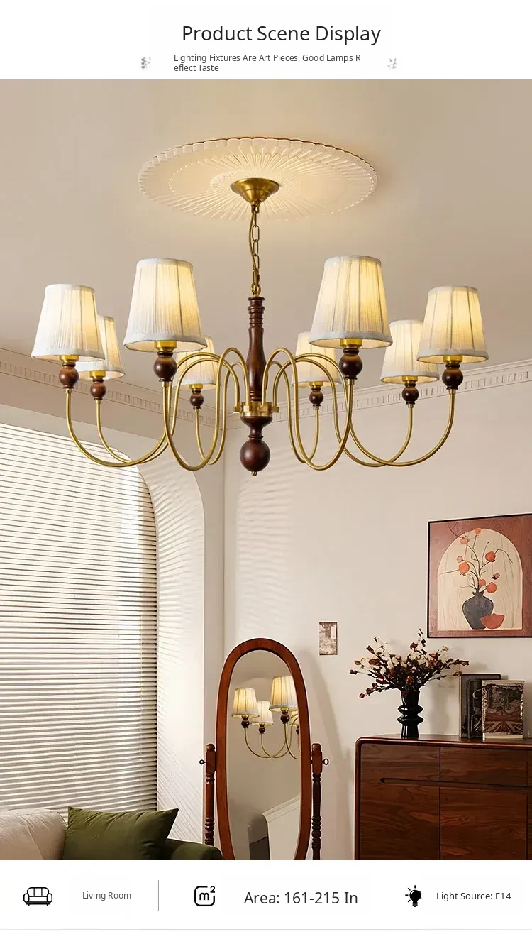 French Vintage Fabric Chandelier - American Retro Solid Wood Atmosphere Lamp for Living Room, Bedroom, and Dining Room