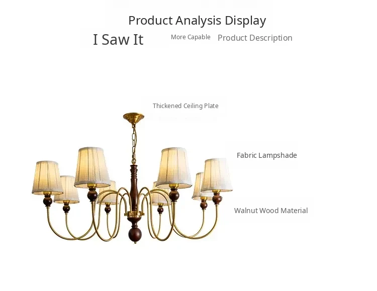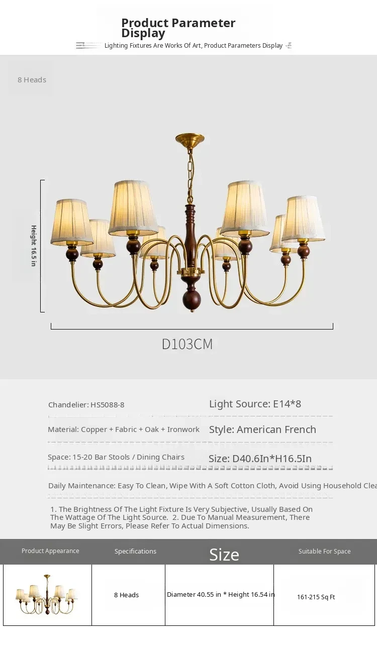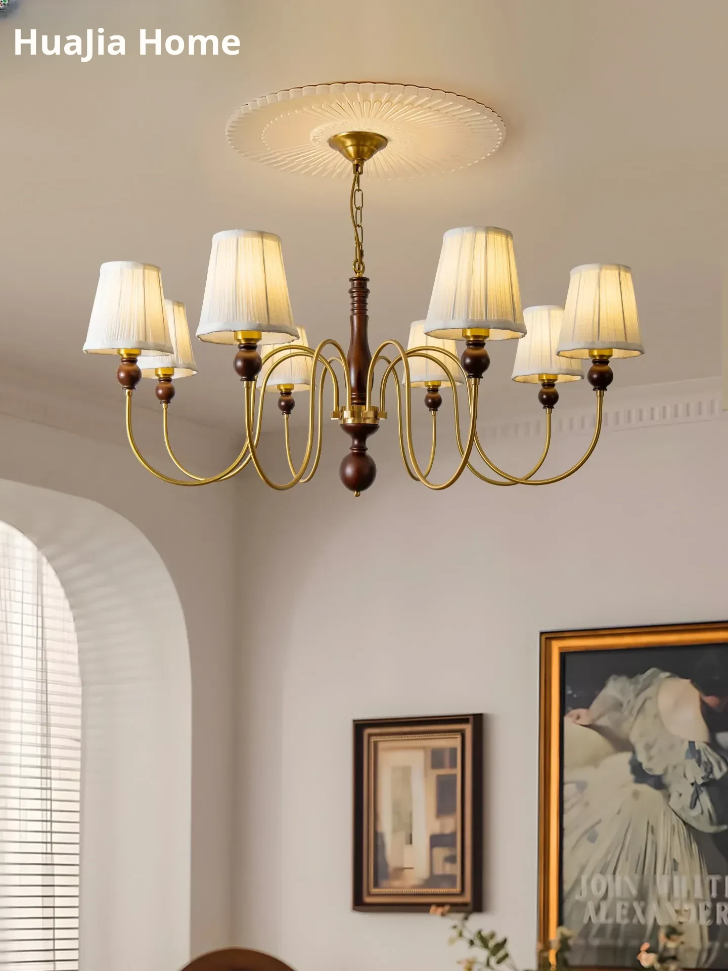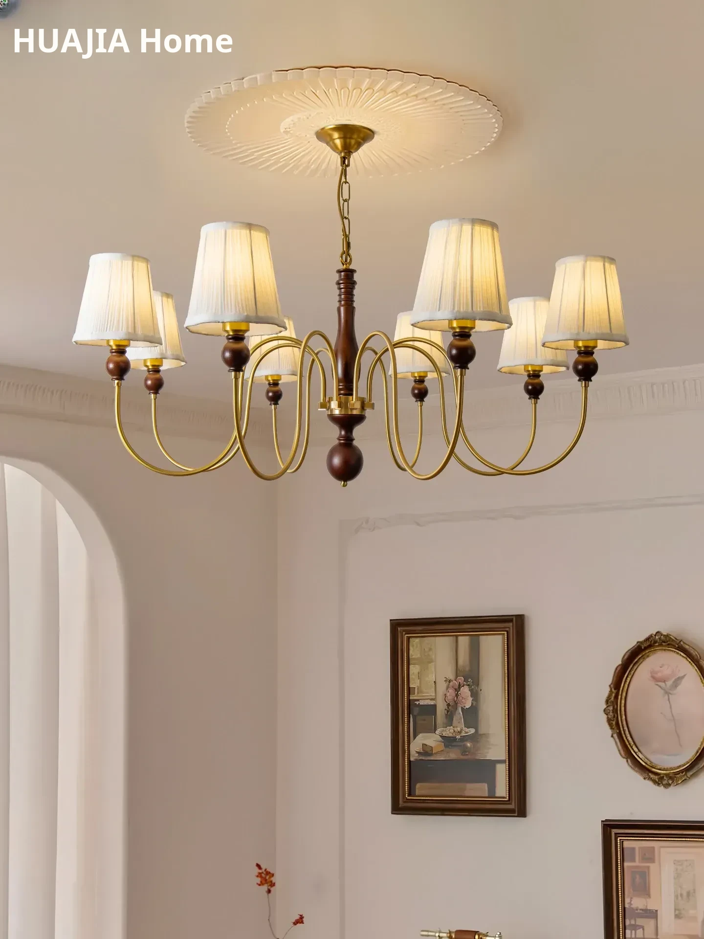 French Vintage Fabric Chandelier - American Retro Solid Wood Atmosphere Lamp for Living Room, Bedroom, and Dining Room