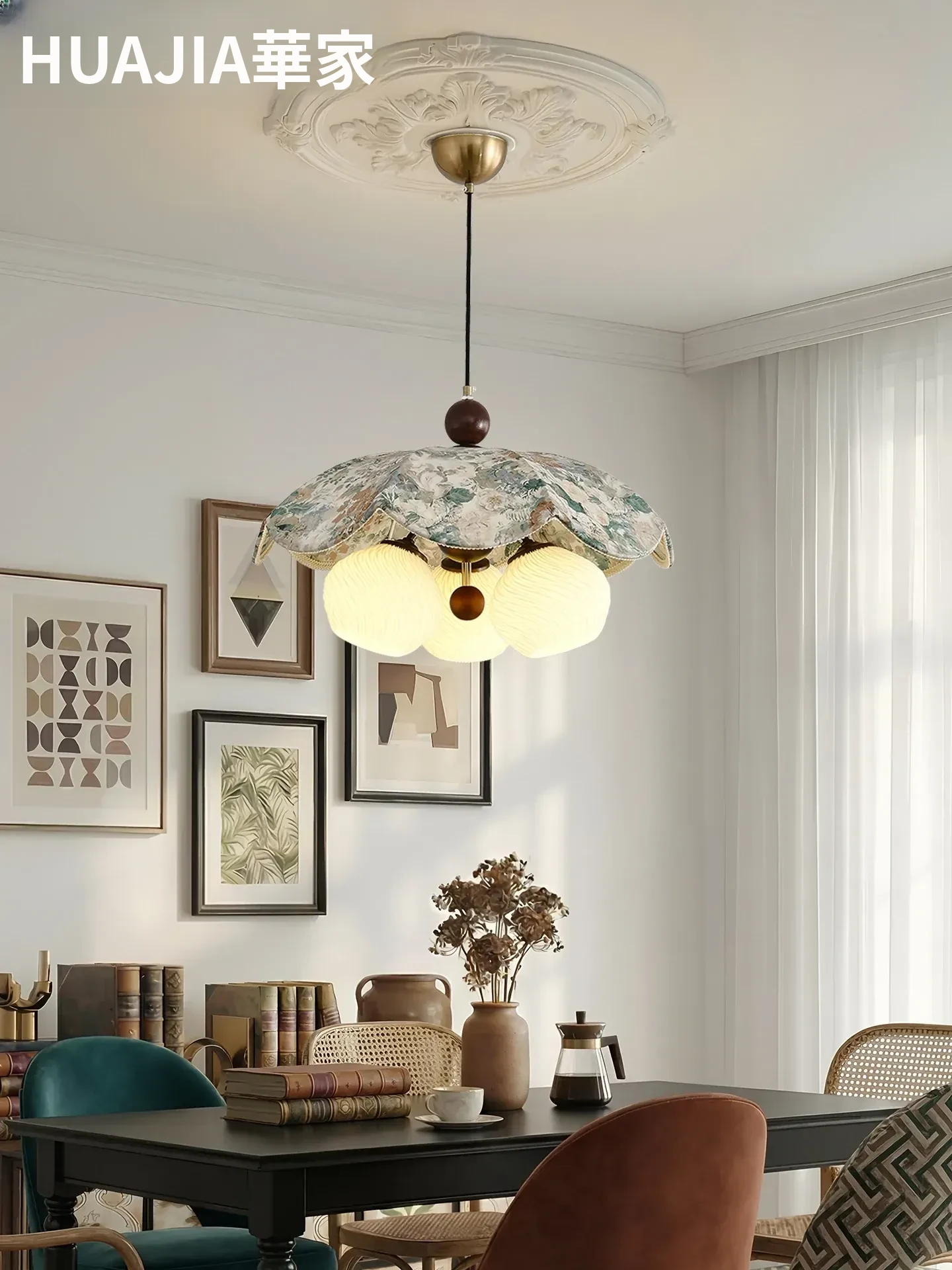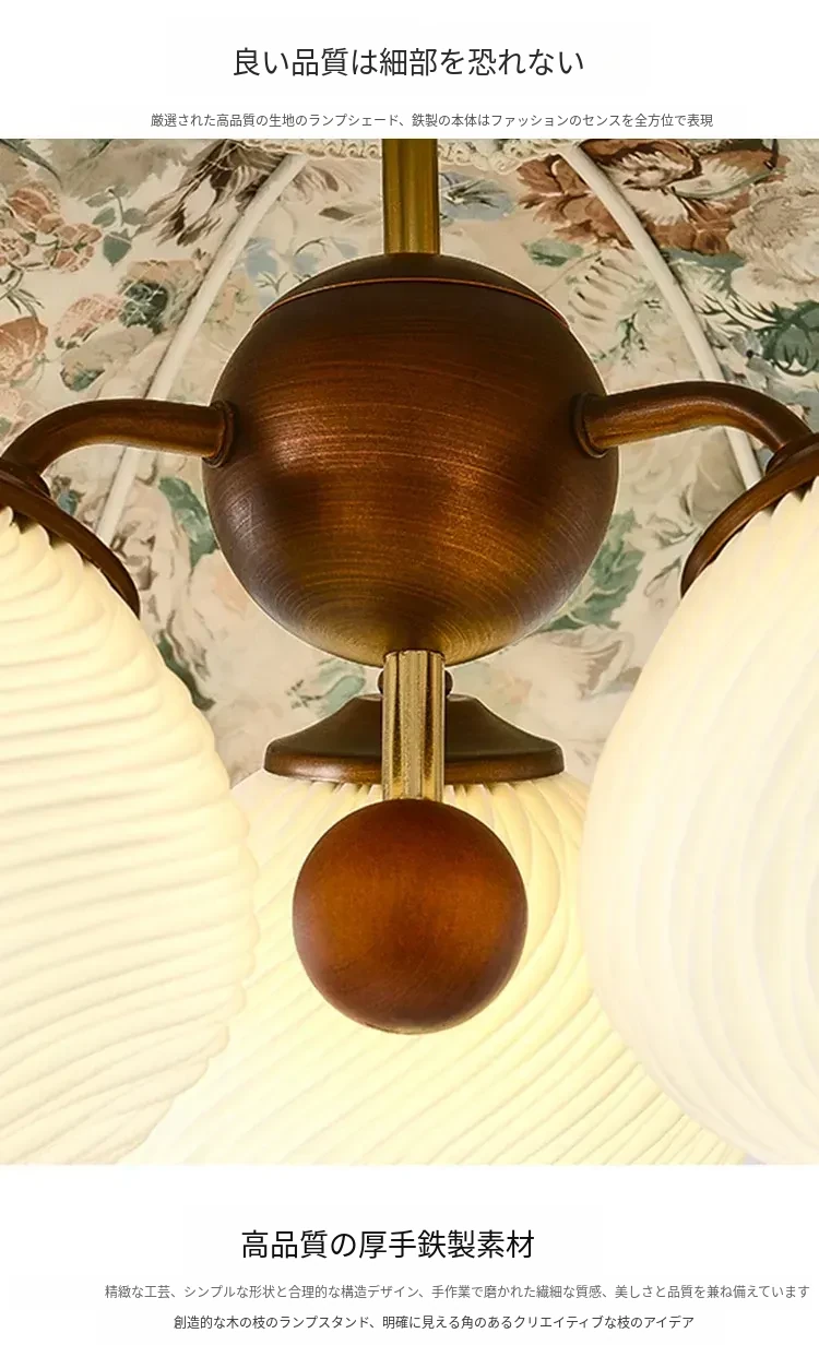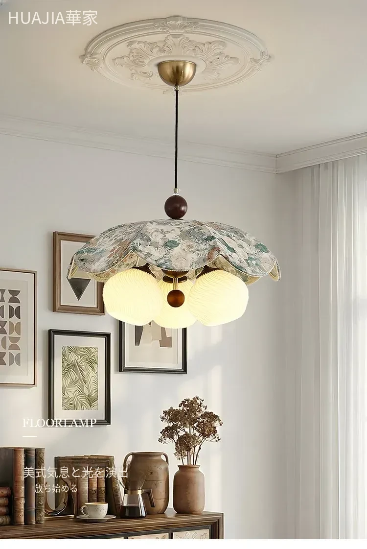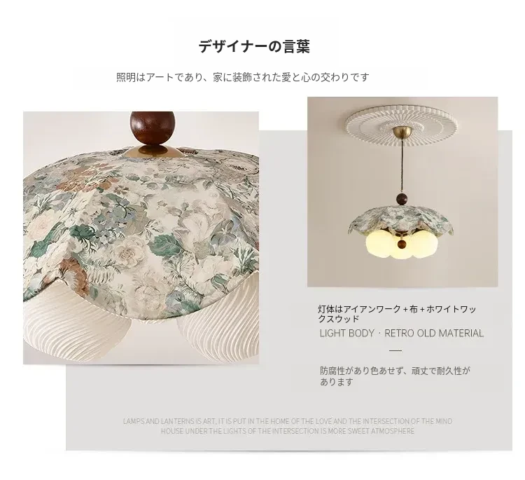フレンチアンティークスタイルの布製シャンデリア|アメリカンレトロな雰囲気漂うダイニング用吊り灯|寝室や書斎にもぴったりな魅力的なインテリア照明!