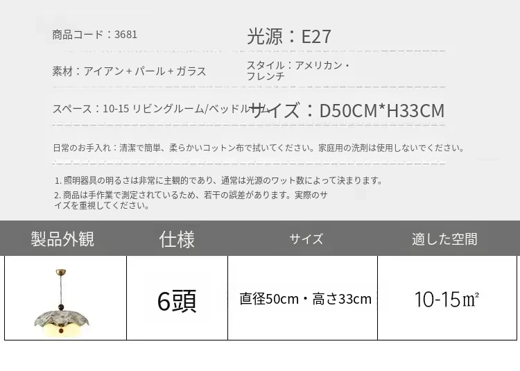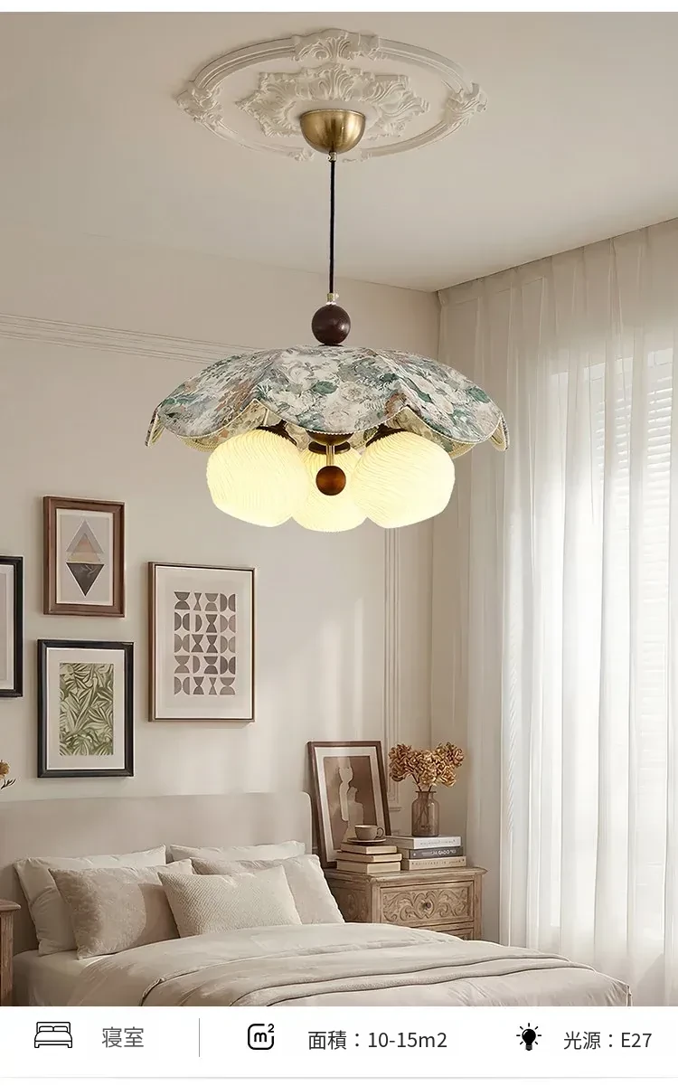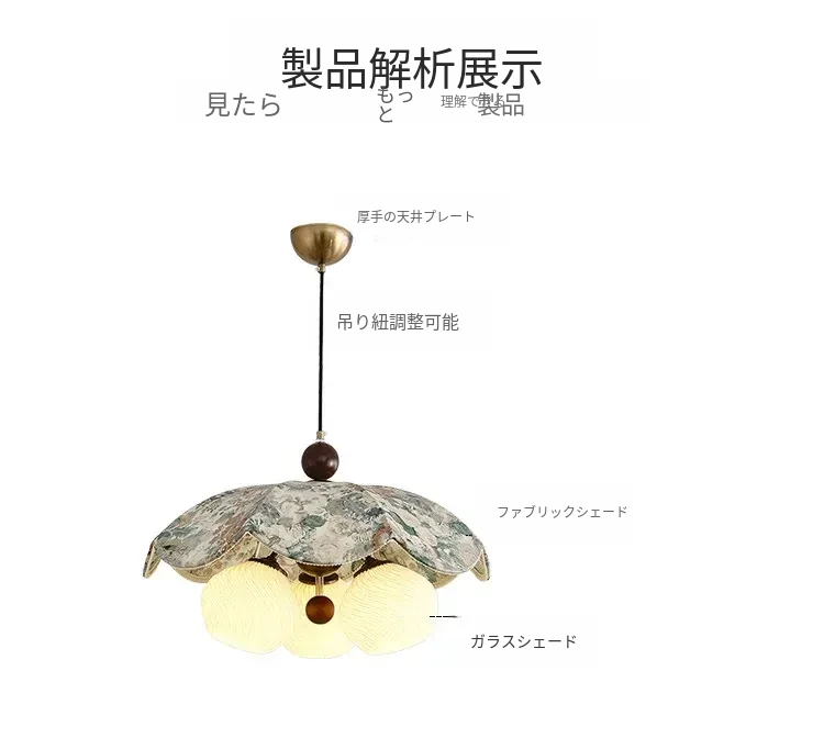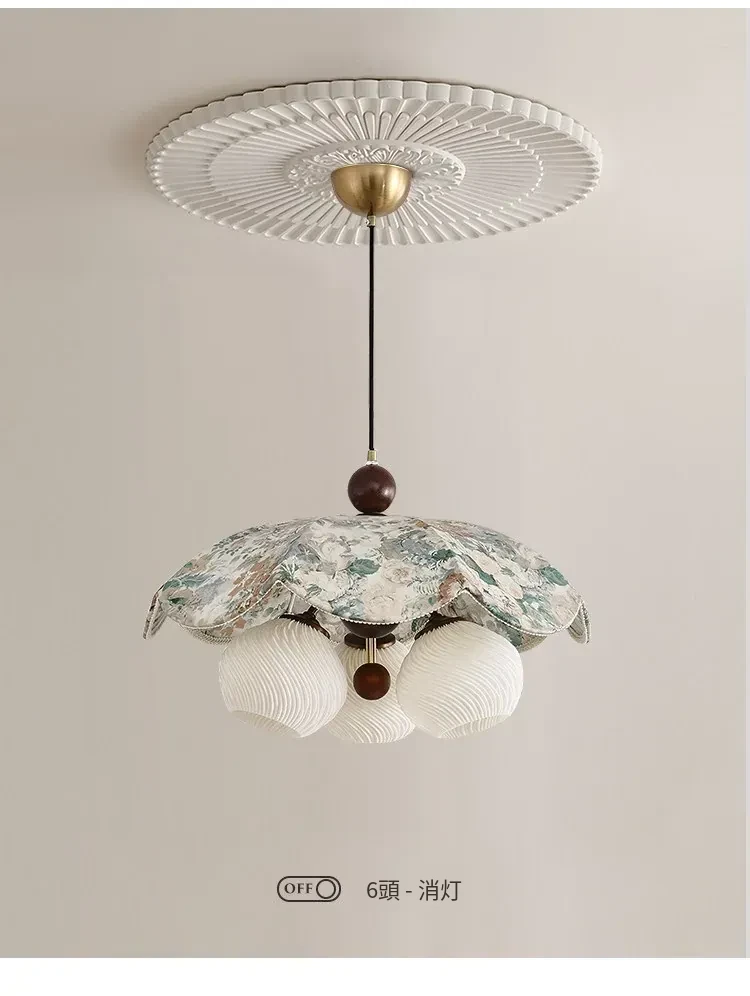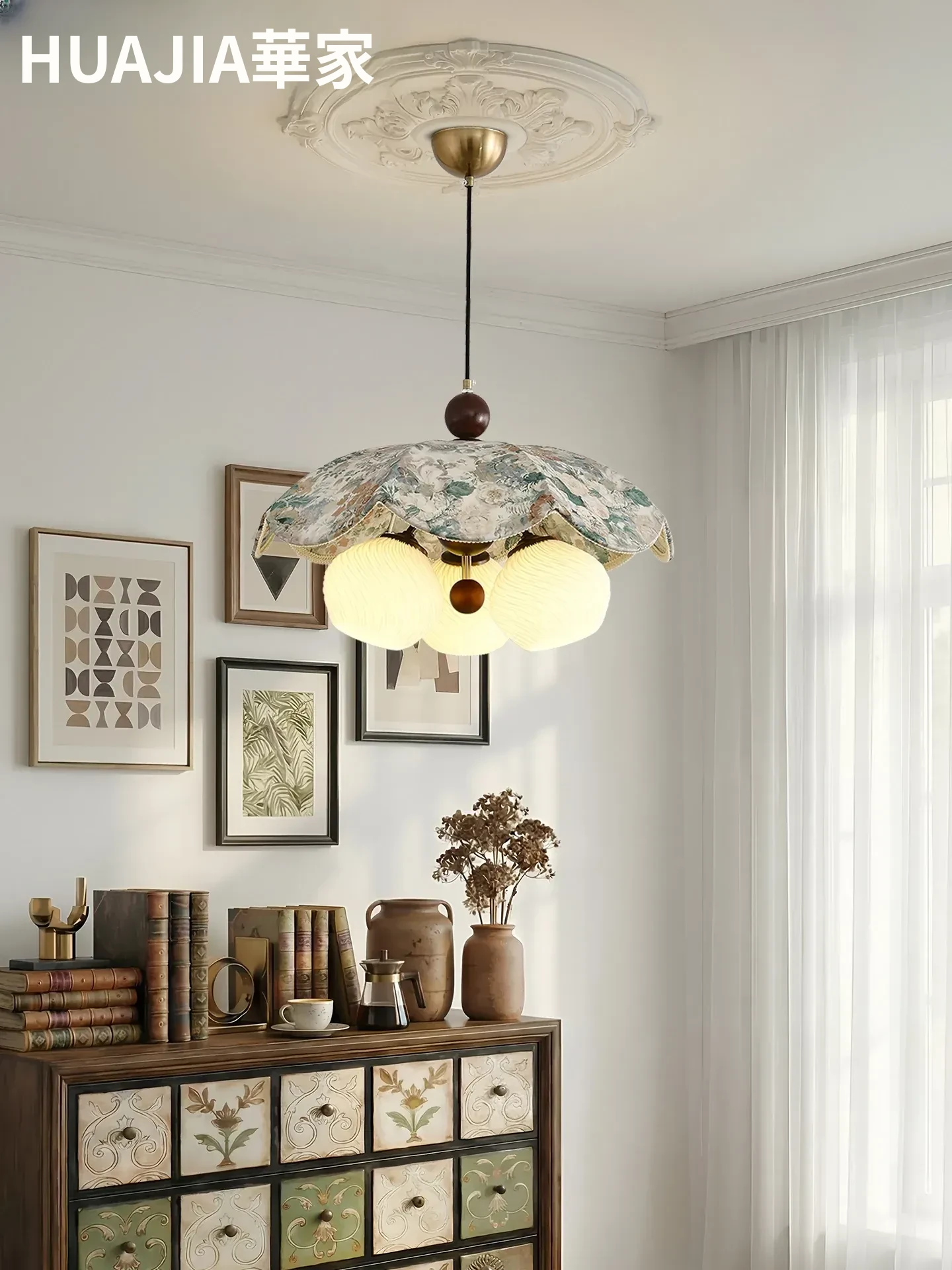 フレンチアンティークスタイルの布製シャンデリア|アメリカンレトロな雰囲気漂うダイニング用吊り灯|寝室や書斎にもぴったりな魅力的なインテリア照明!