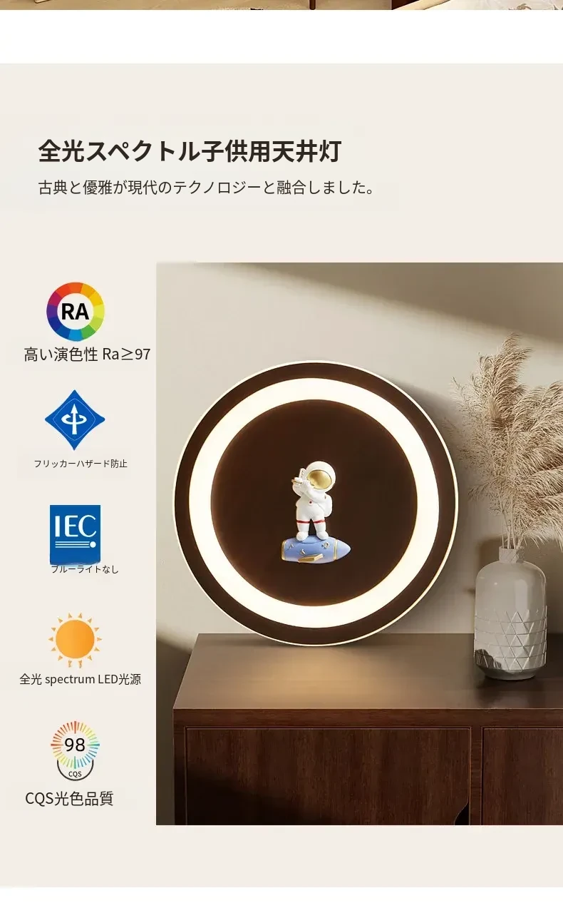 フランス風のレトロな子供部屋用天井照明!かわいい宇宙飛行士デザインで、お子様の目を守るLED天井灯。おしゃれで安心な空間を演出し、楽しい夢の世界へ導きます!