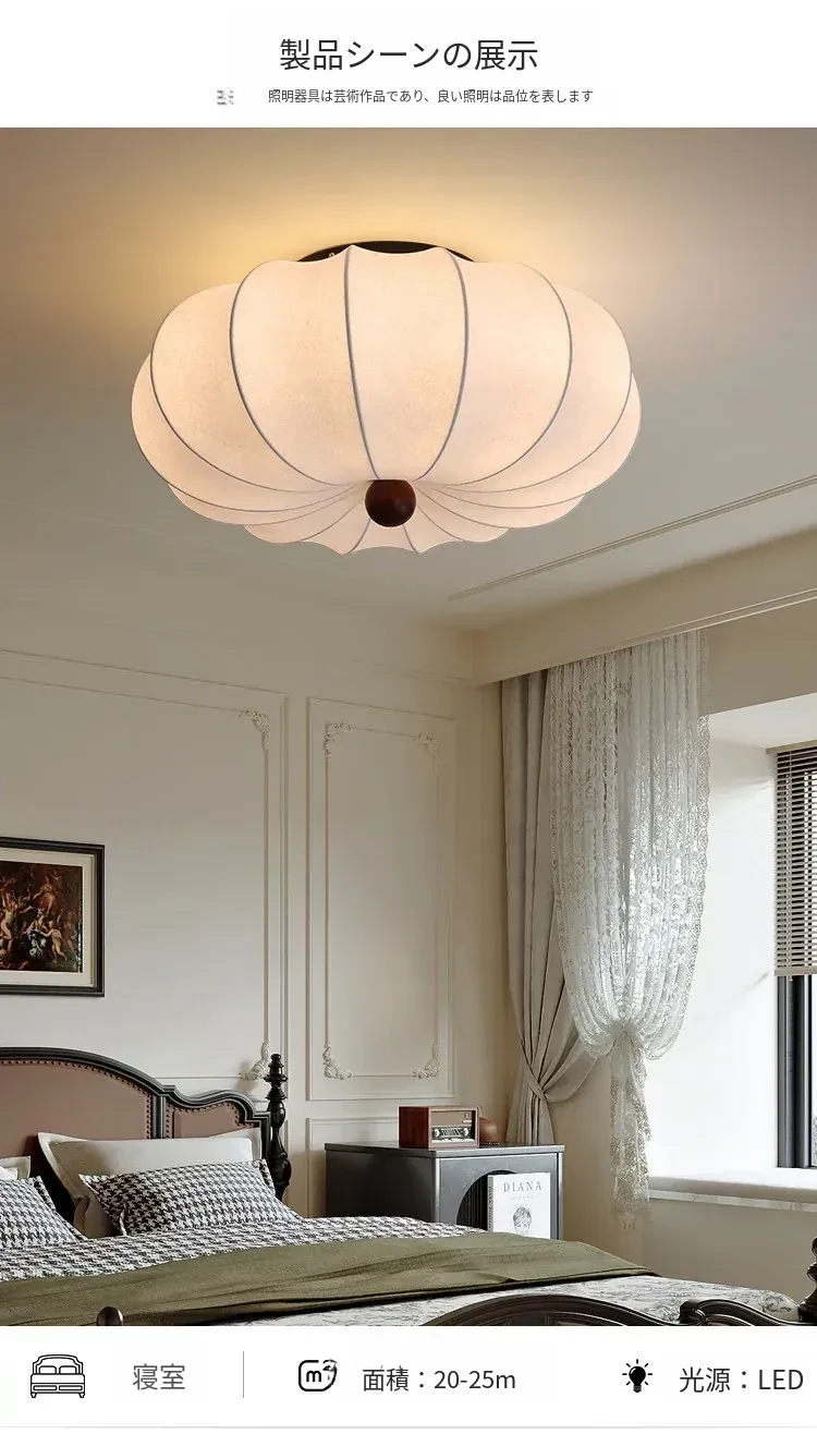 フランス風ヴィンテージの天井照明、アメリカンレトロクリーム色のカボチャデザイン!全光スペクトルで目に優しい、子供部屋や書斎にぴったりの照明です。おしゃれで心地よい空間を演出します!