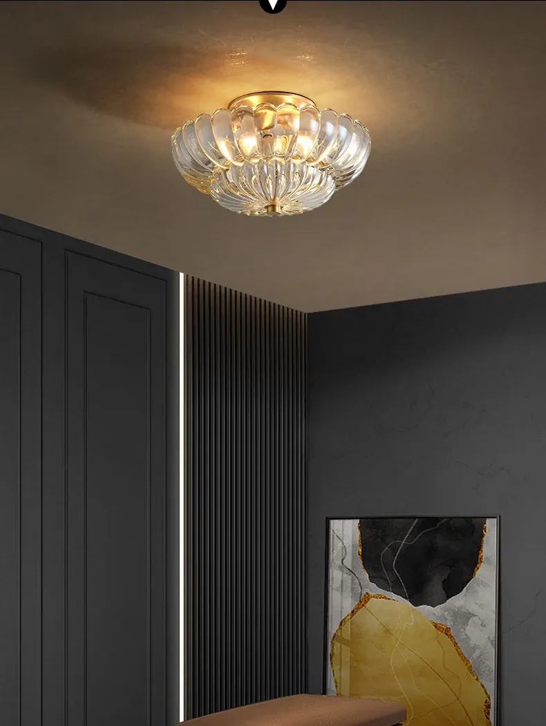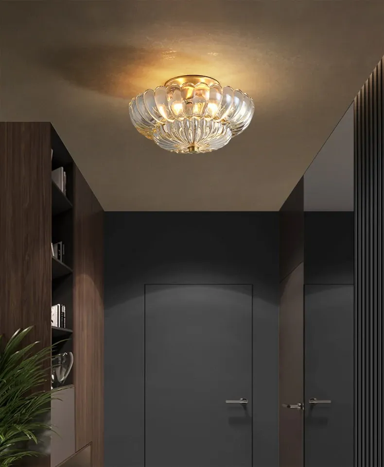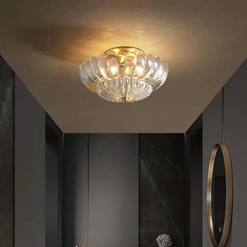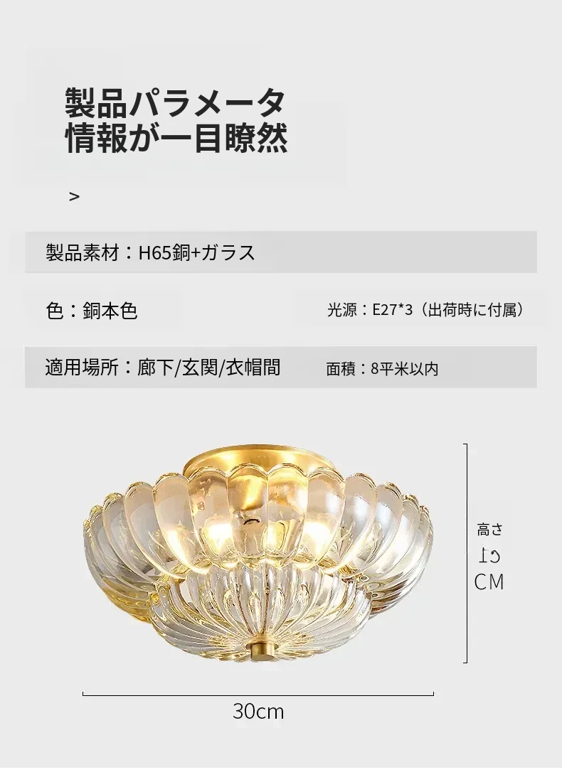 フランス風アンティークシーリングライト 廊下や通路に最適!全銅製のレトロデザイン、入居者を迎える玄関やバルコニーにもピッタリなガラスシーリングランプ。洗練された雰囲気を演出します!