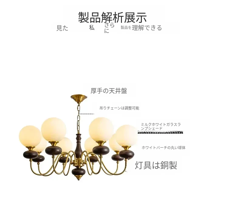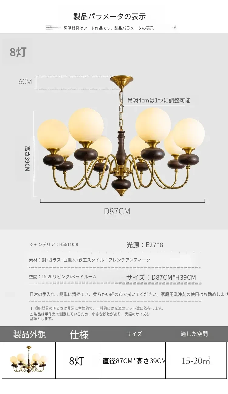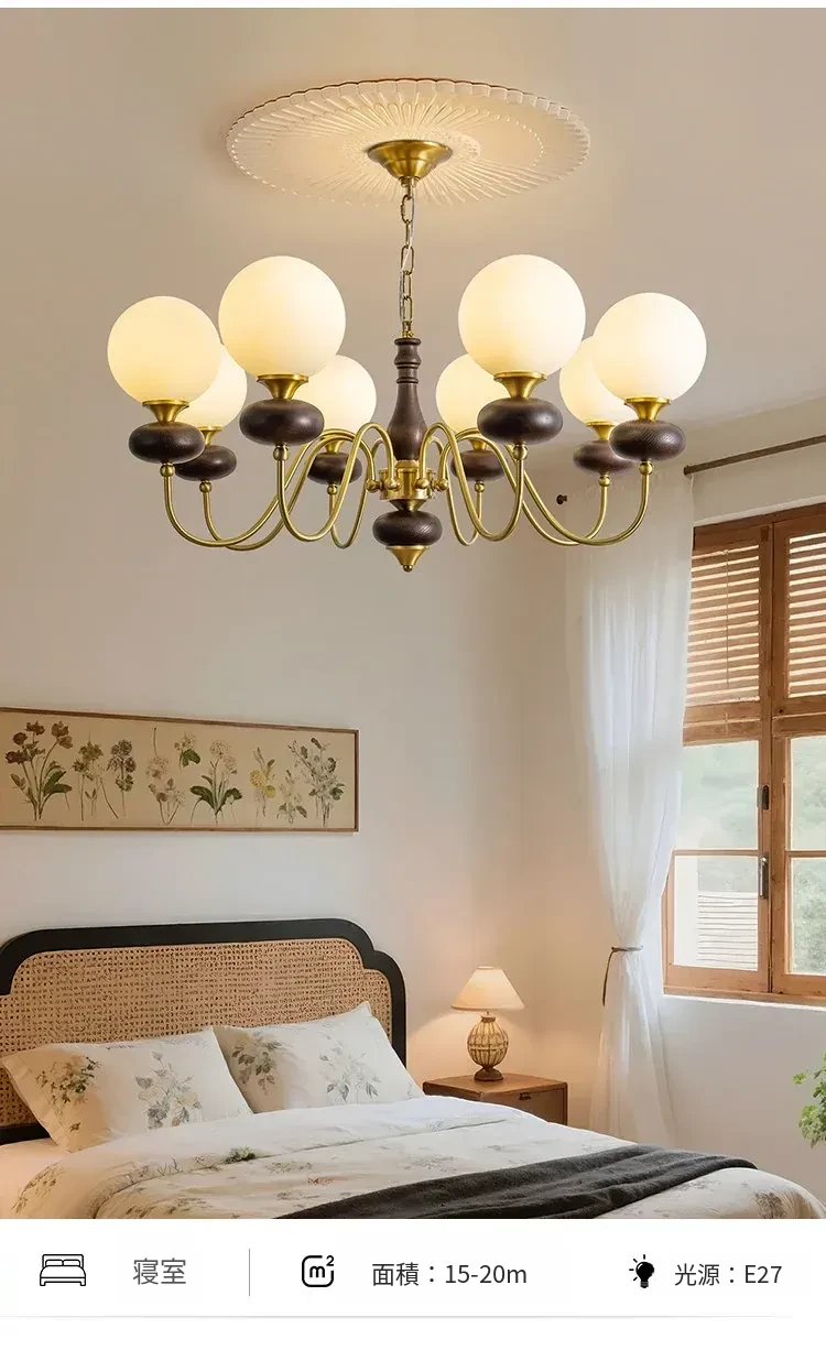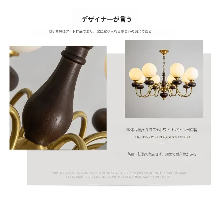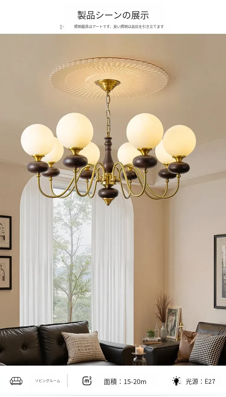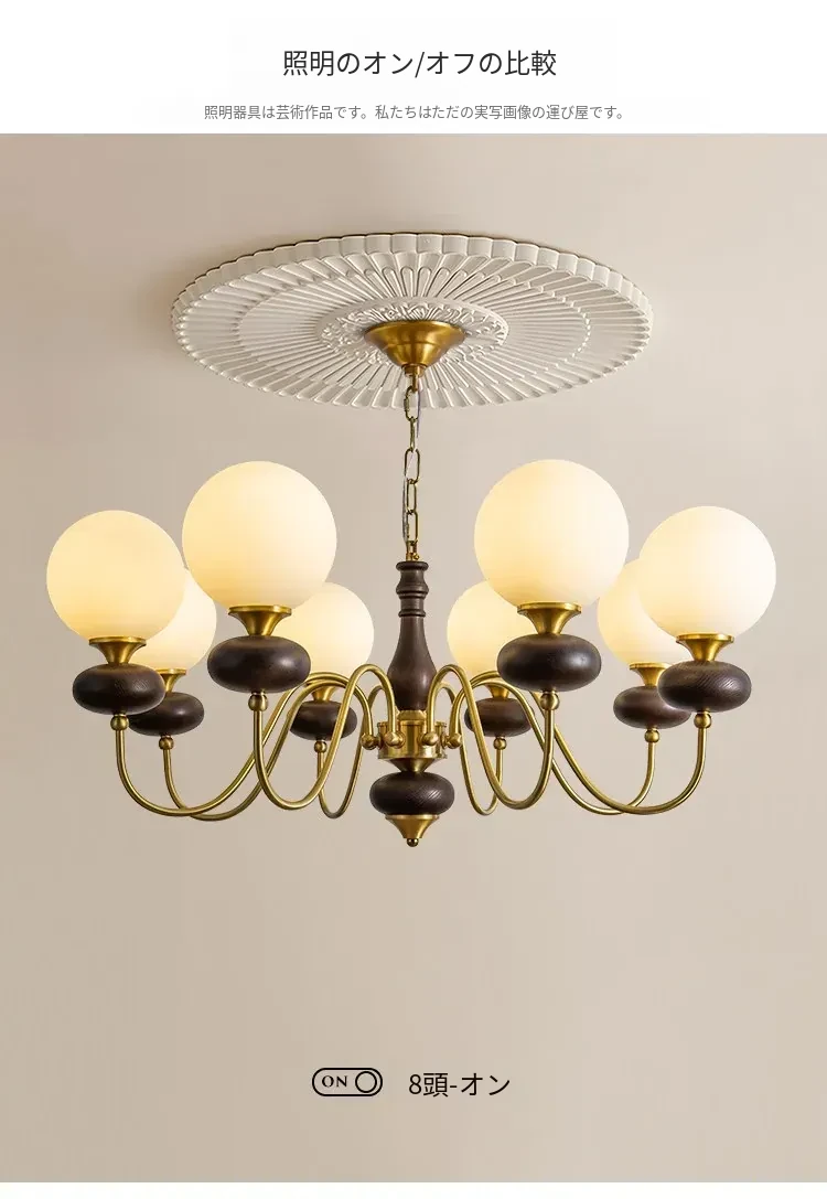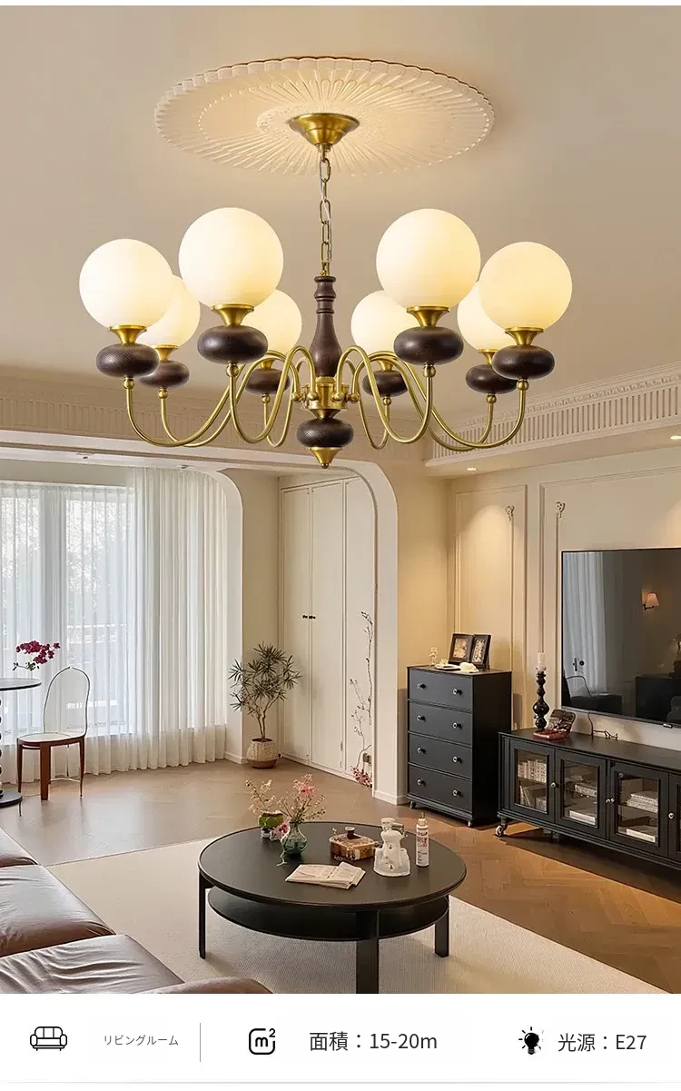 フレンチスタイルのアンティーク感漂う寝室用シャンデリア。アメリカンスタイルの全銅製レトロ・ウォールナットウッドとガラスのダイニング用吊り灯。おしゃれな空間を演出し、心地よい雰囲気をお届けします。
