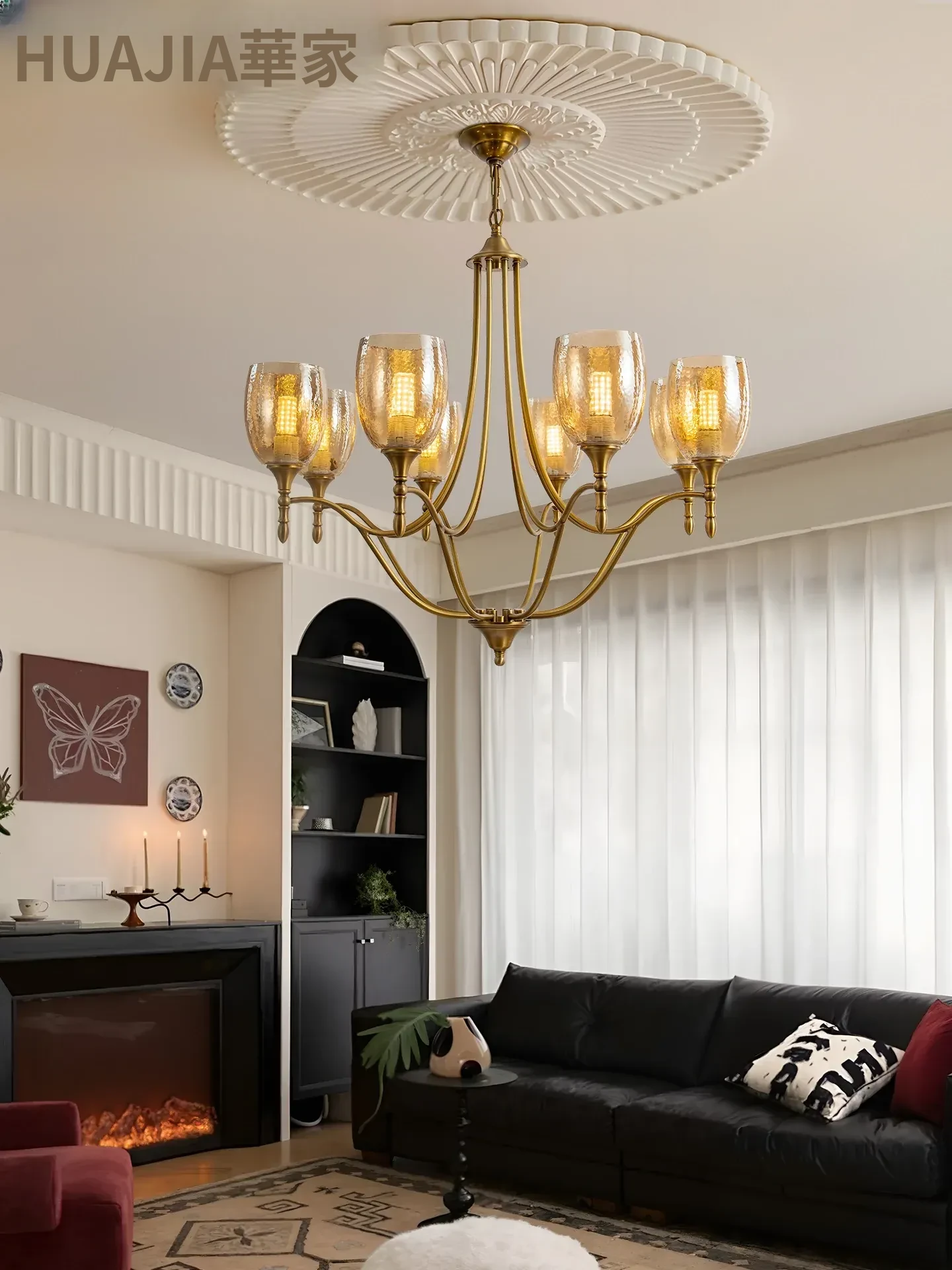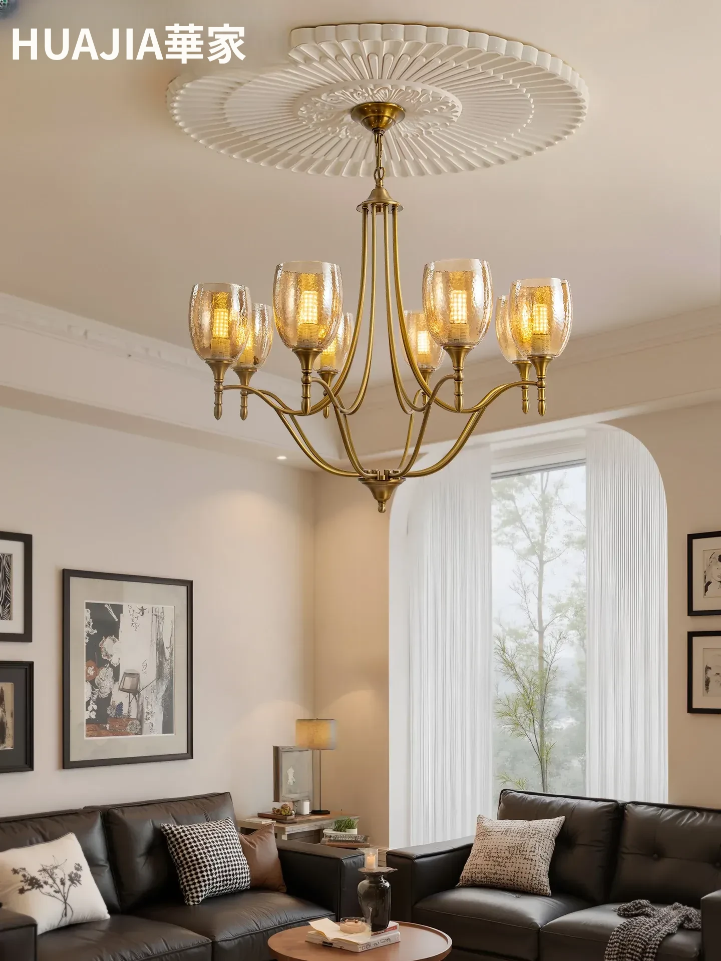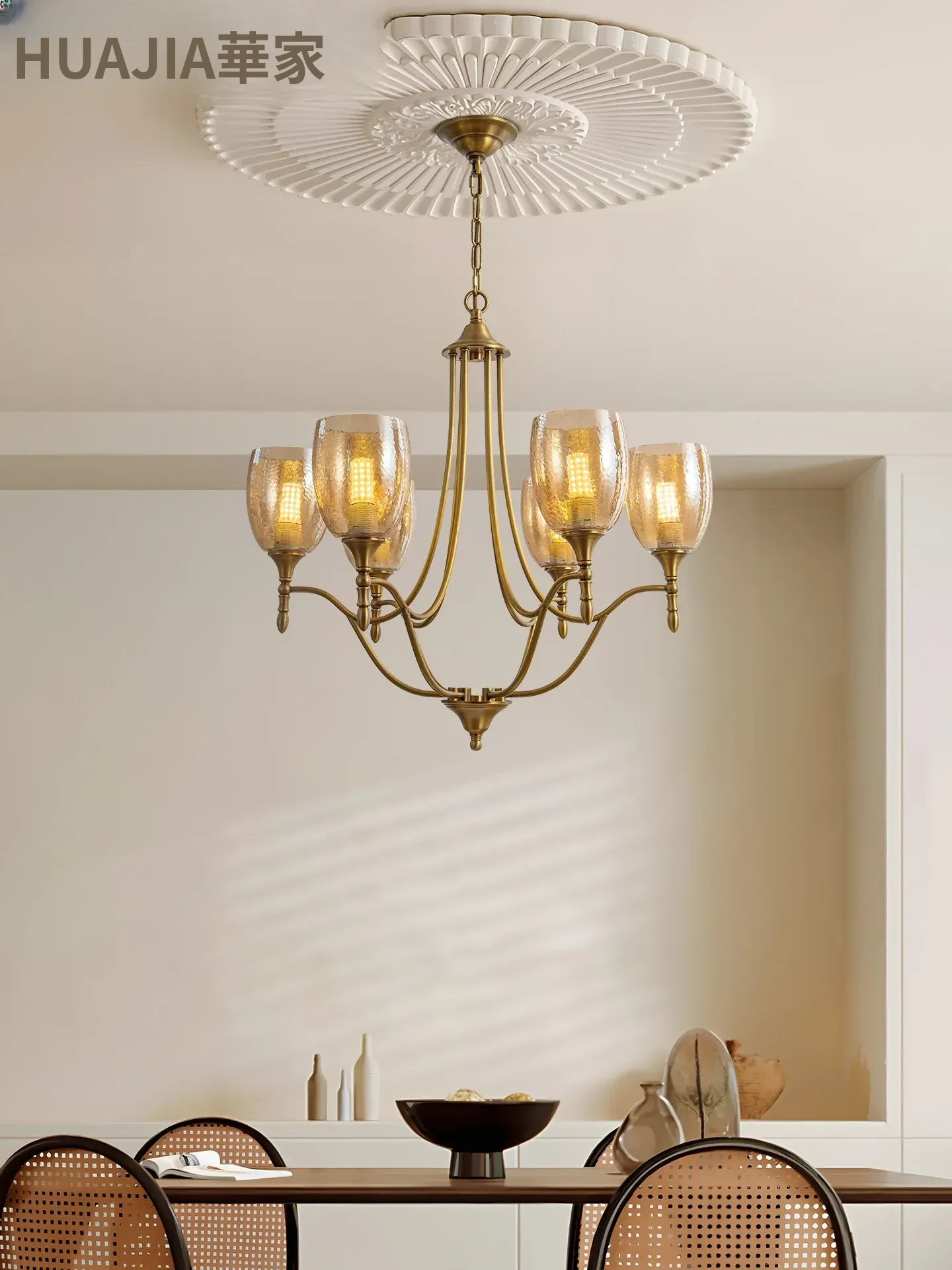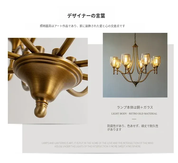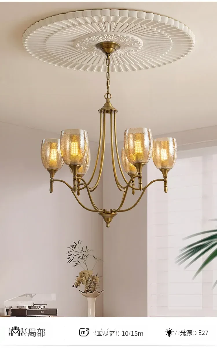 フレンチアンティークスタイルのリビングルーム用シャンデリア、アメリカンレトロ全銅製、高級感あふれる琥珀色ガラスのダイニング&ベッドルームライト。洗練されたデザインで、空間を華やかに演出します!