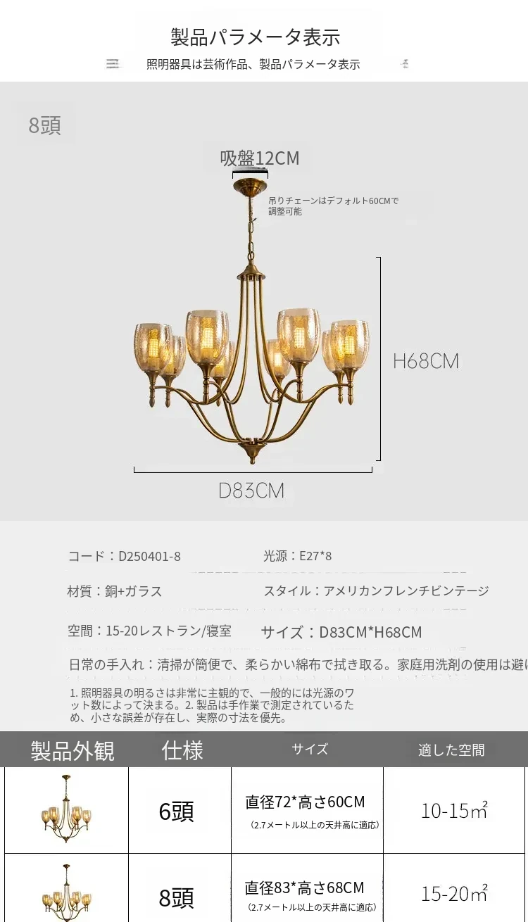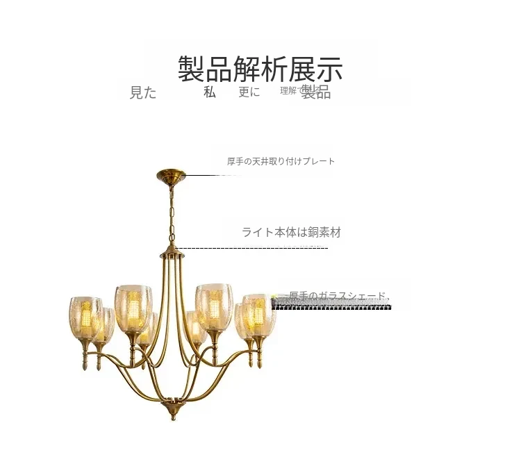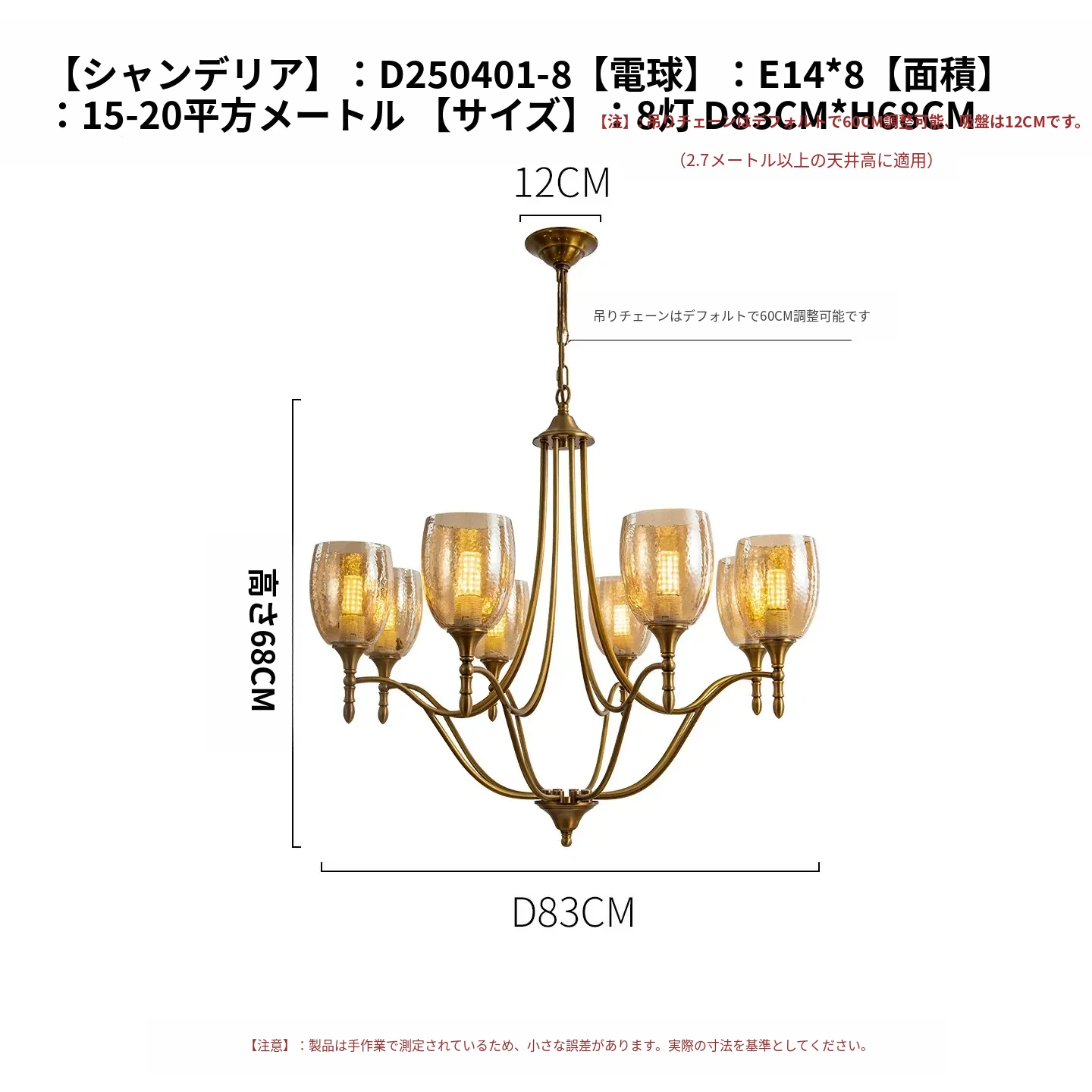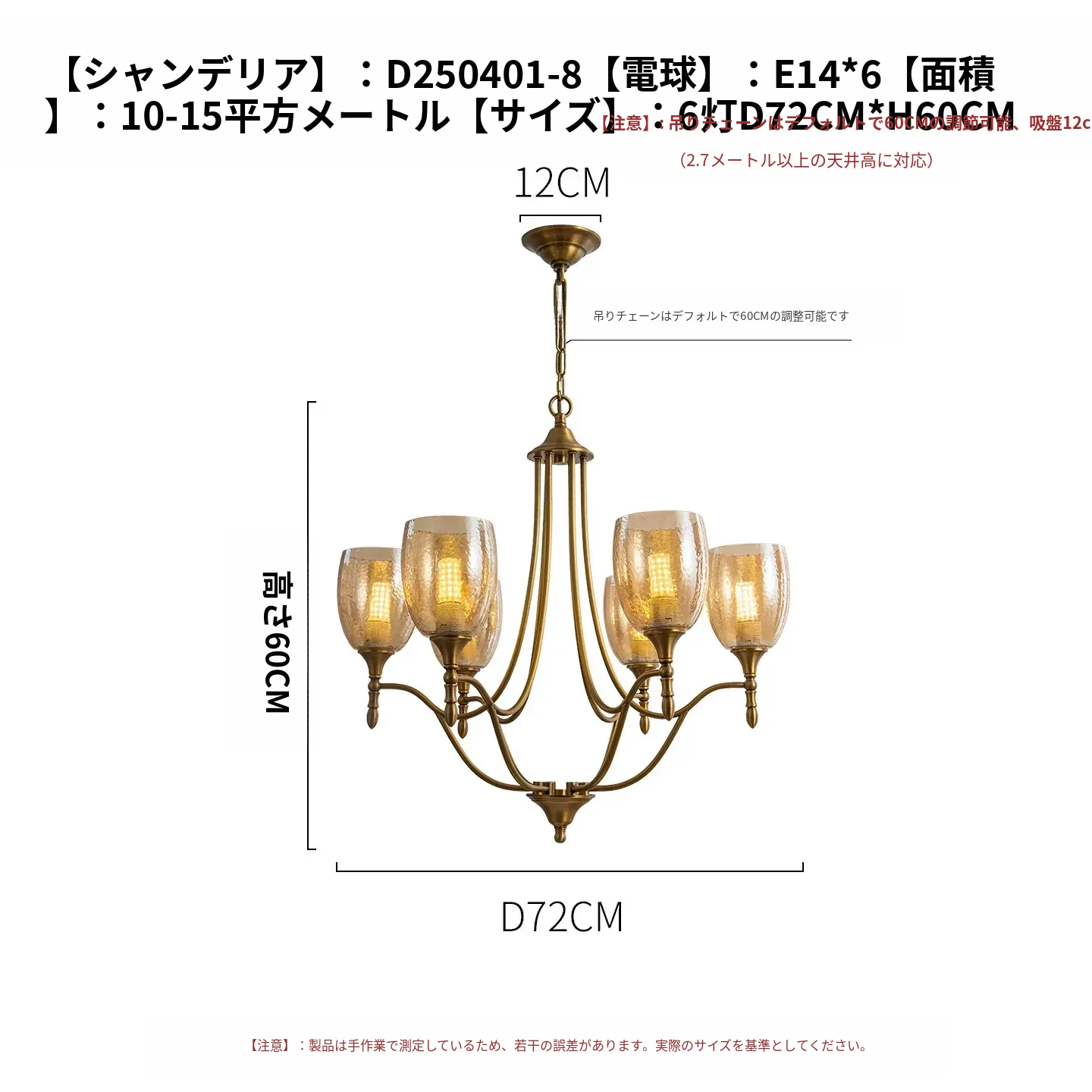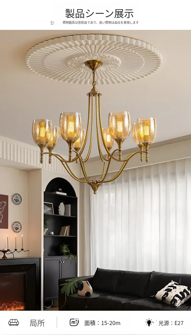 フレンチアンティークスタイルのリビングルーム用シャンデリア、アメリカンレトロ全銅製、高級感あふれる琥珀色ガラスのダイニング&ベッドルームライト。洗練されたデザインで、空間を華やかに演出します!