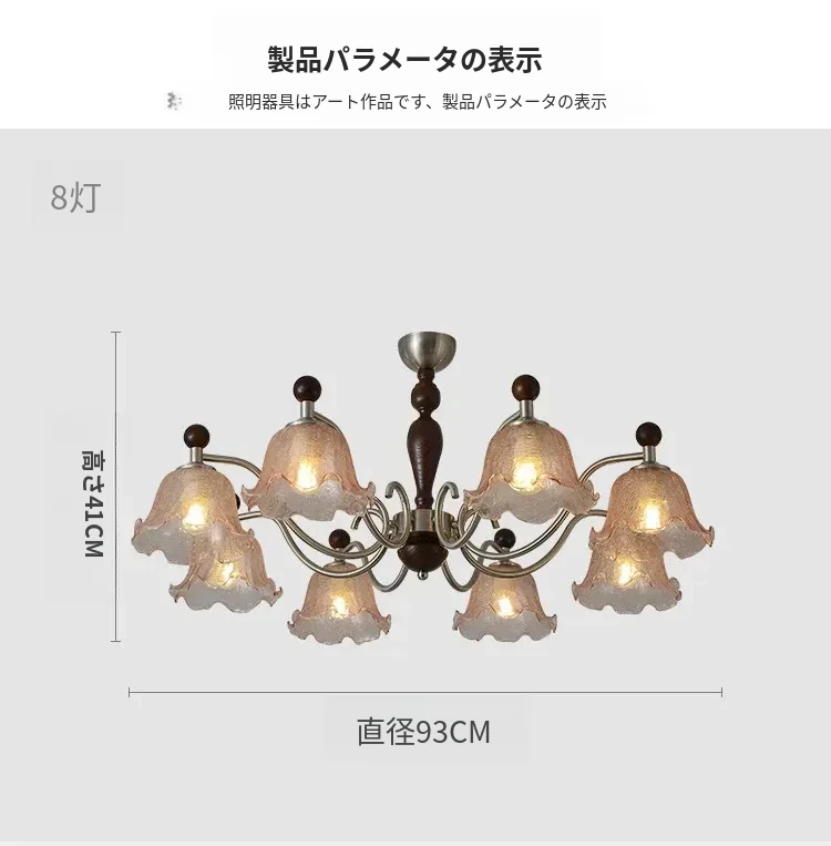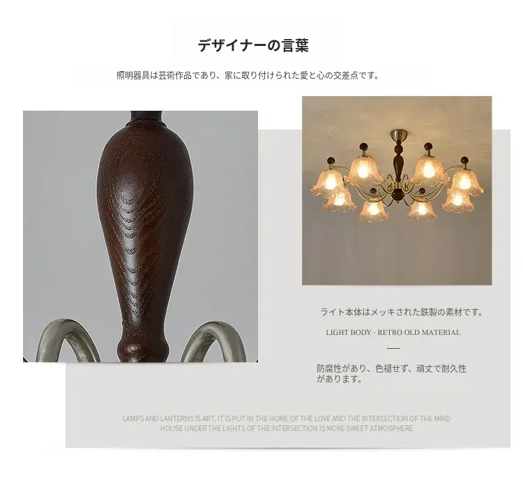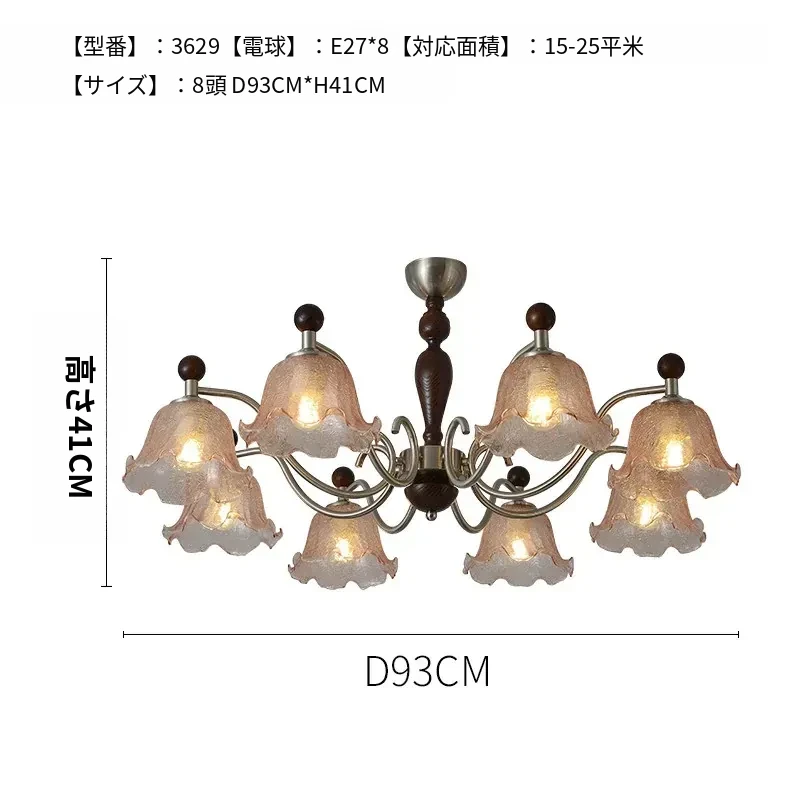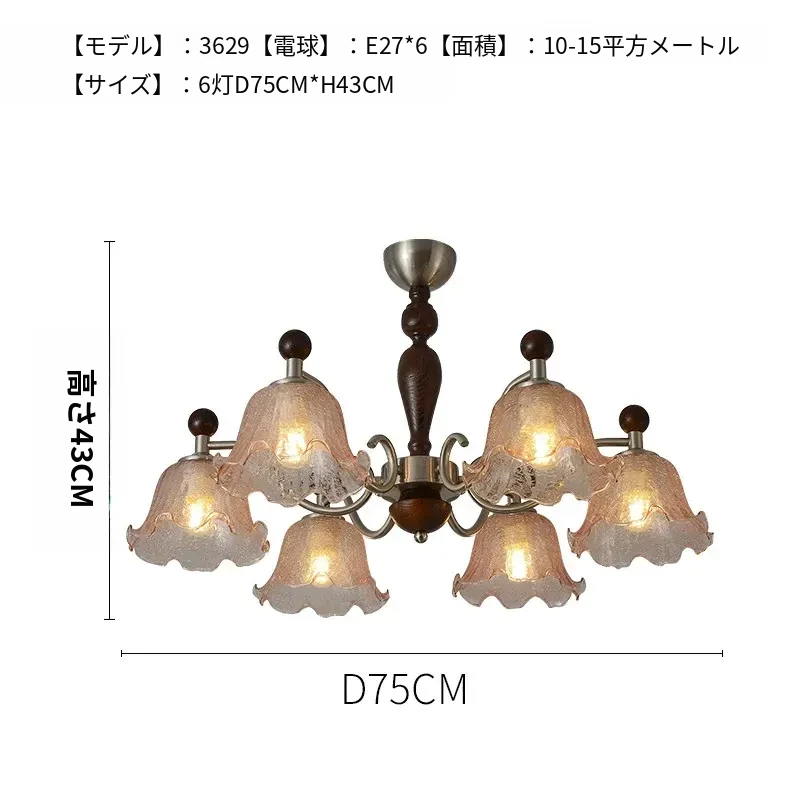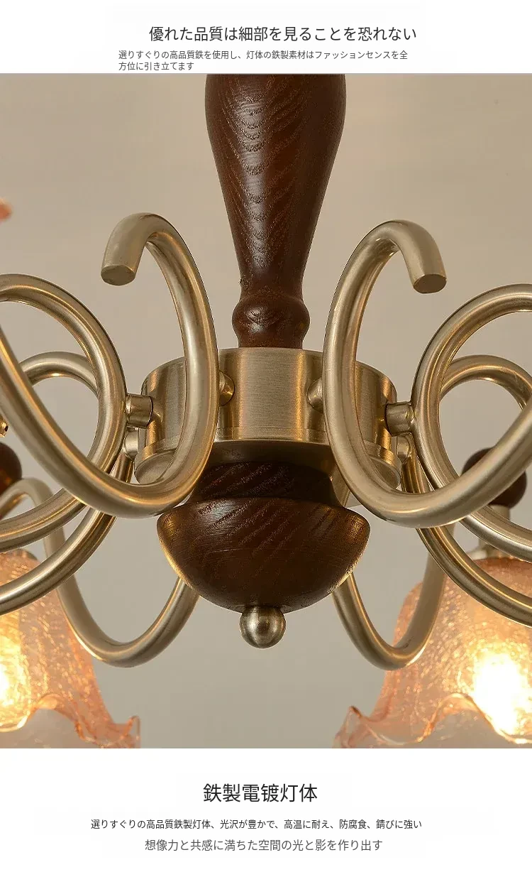 フレンチヴィンテージ風のリビング用シャンデリア!アメリカンレトロな無垢材ダイニングライト、温かみのあるロマンティックな琥珀ガラスのベッドルームシャンデリアで、心地よい空間を演出します。