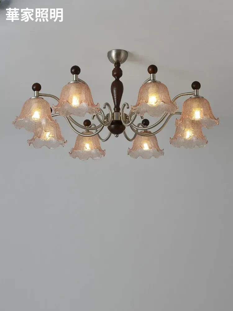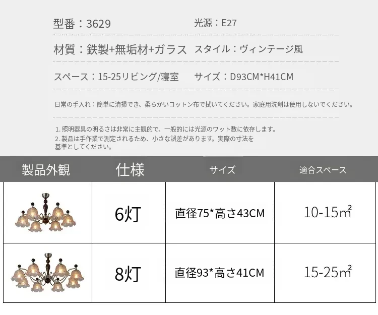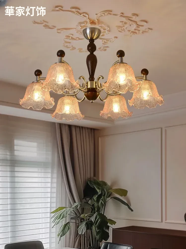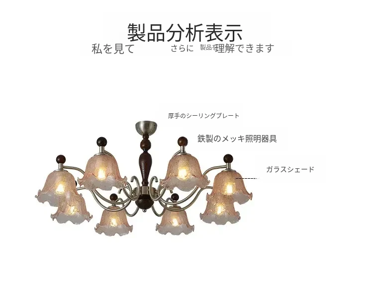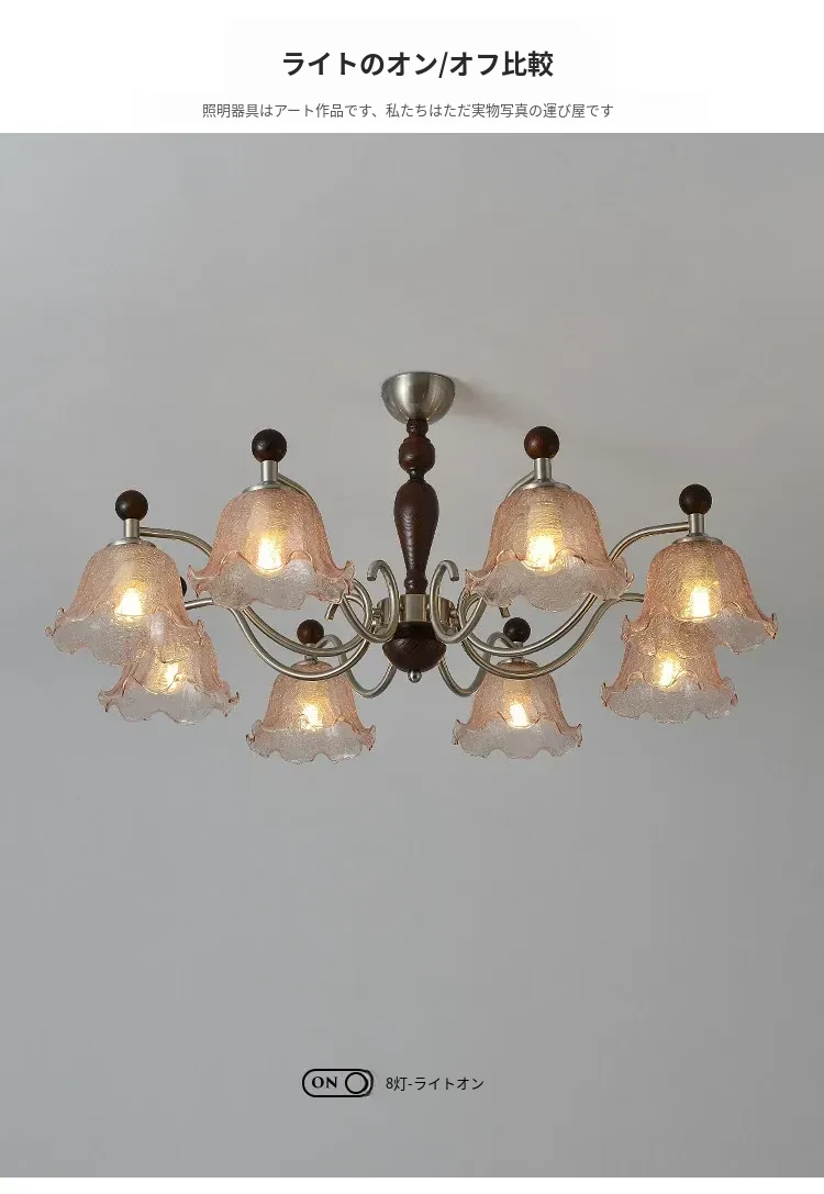 フレンチヴィンテージ風のリビング用シャンデリア!アメリカンレトロな無垢材ダイニングライト、温かみのあるロマンティックな琥珀ガラスのベッドルームシャンデリアで、心地よい空間を演出します。