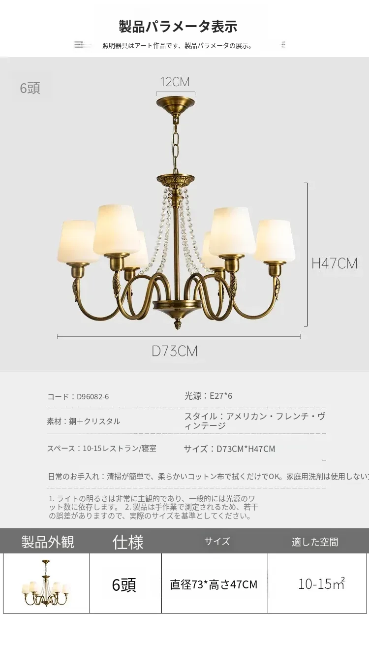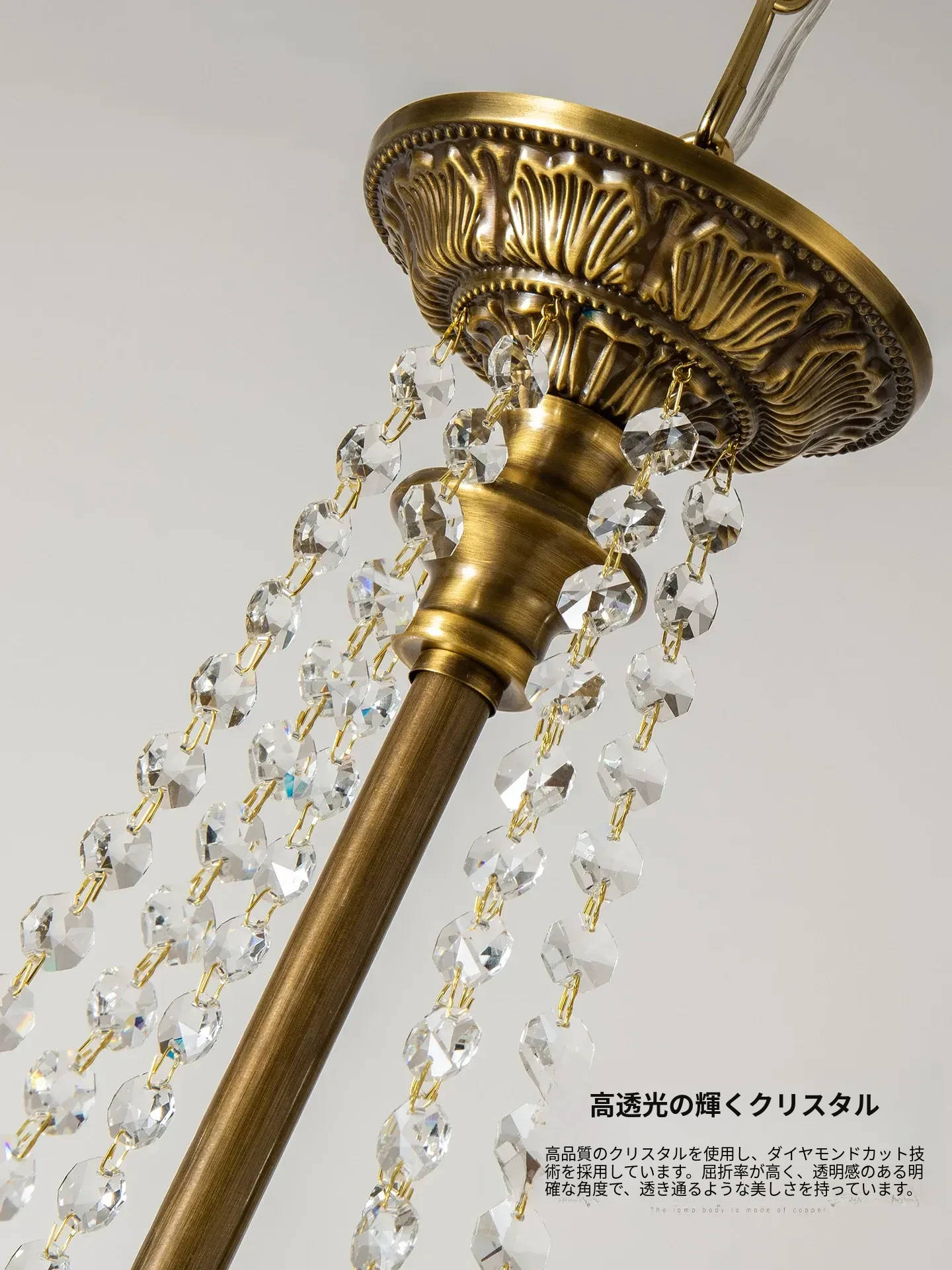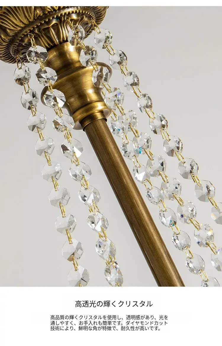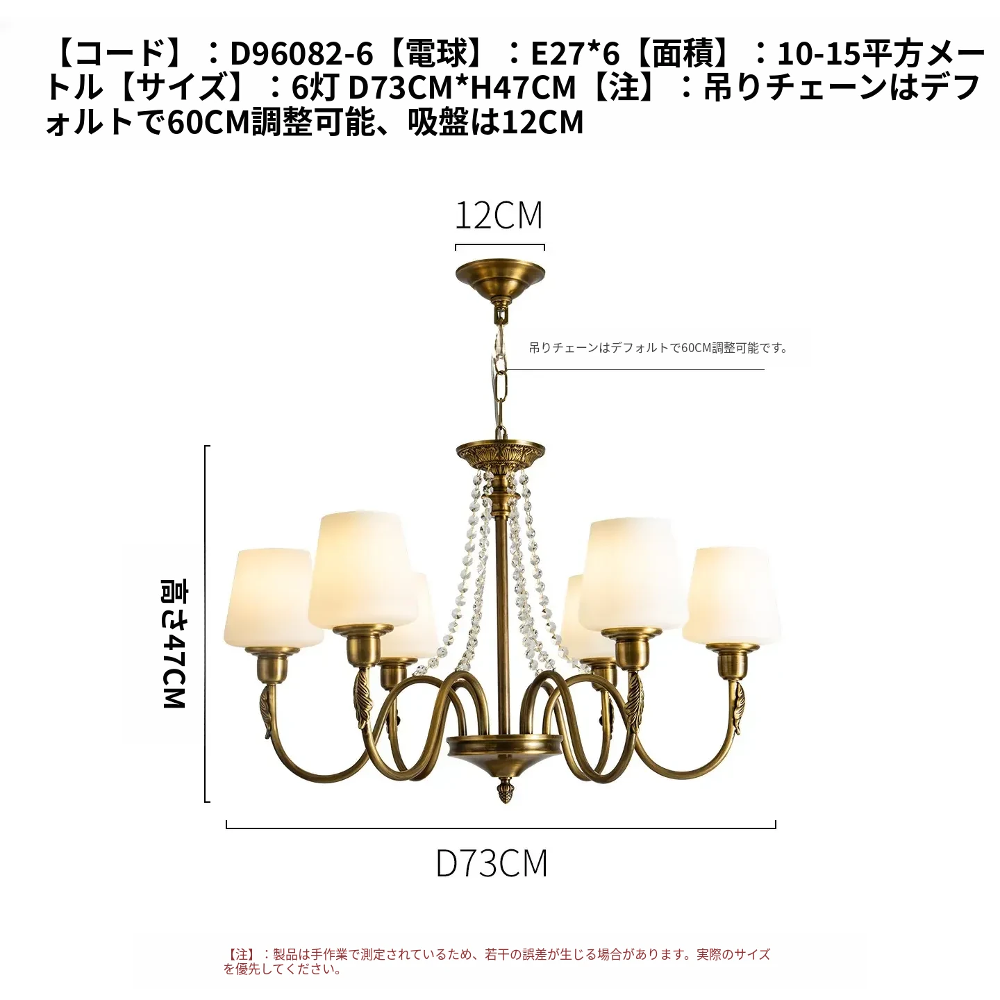 フランス風アンティークスタイルのリビングルーム用シャンデリア。アメリカンレトロなミルクホワイトガラスの吊り灯。全銅製で、雰囲気抜群の寝室やダイニングに最適な照明器具です。