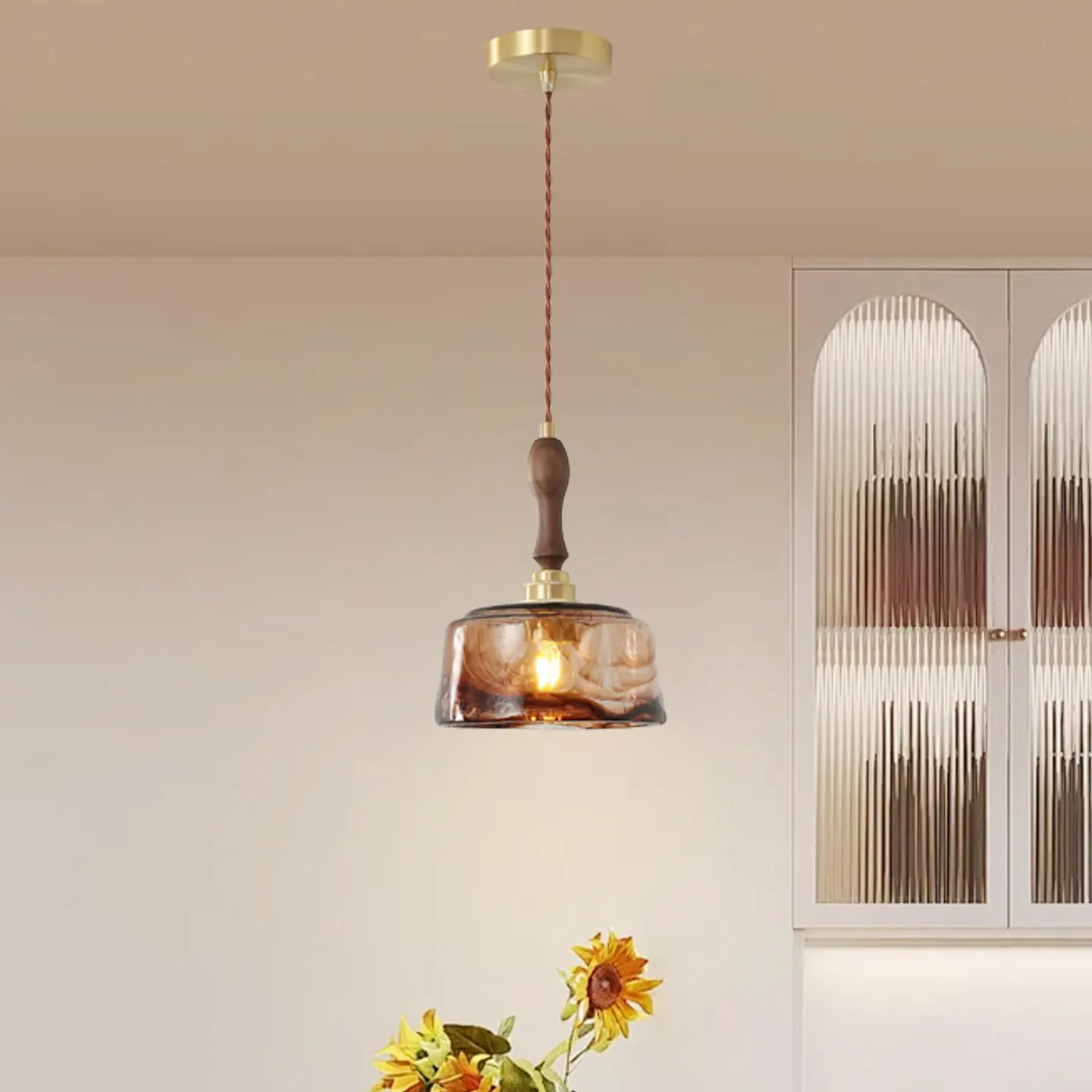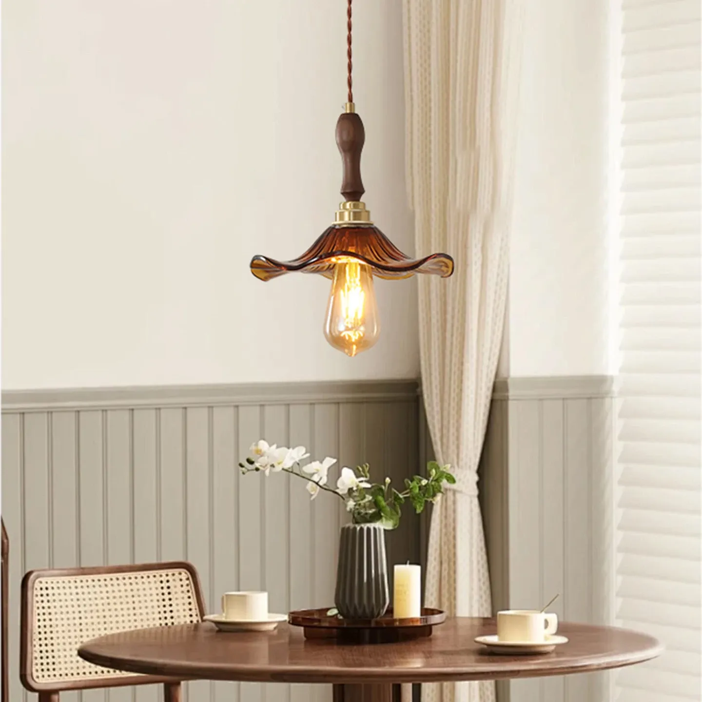 フランス風ヴィンテージ小型シャンデリア|アメリカンレトロ琥珀ガラスのベッドサイドライト|心地よい雰囲気を演出するバースタイル吊り下げランプ