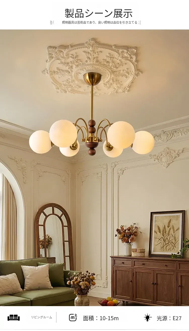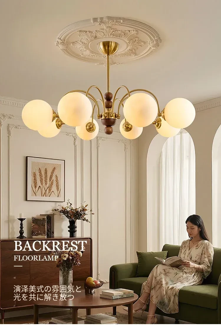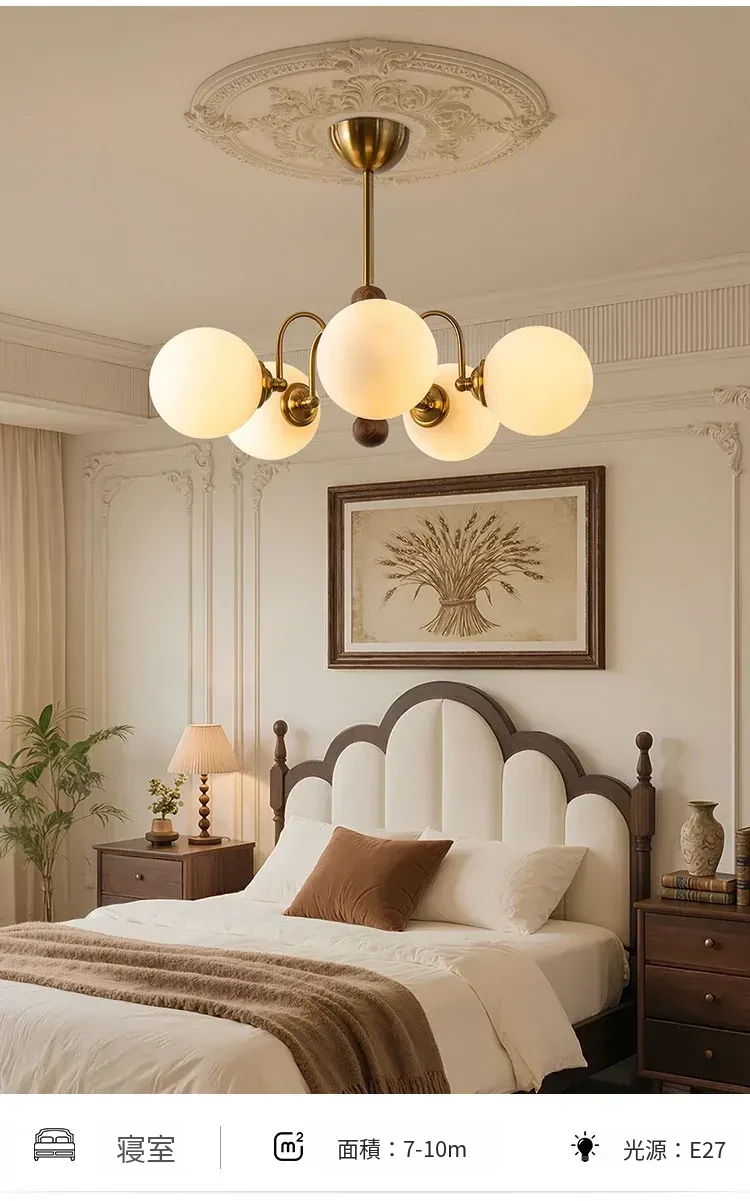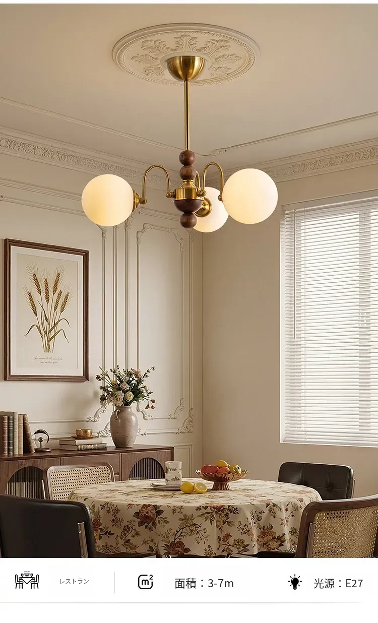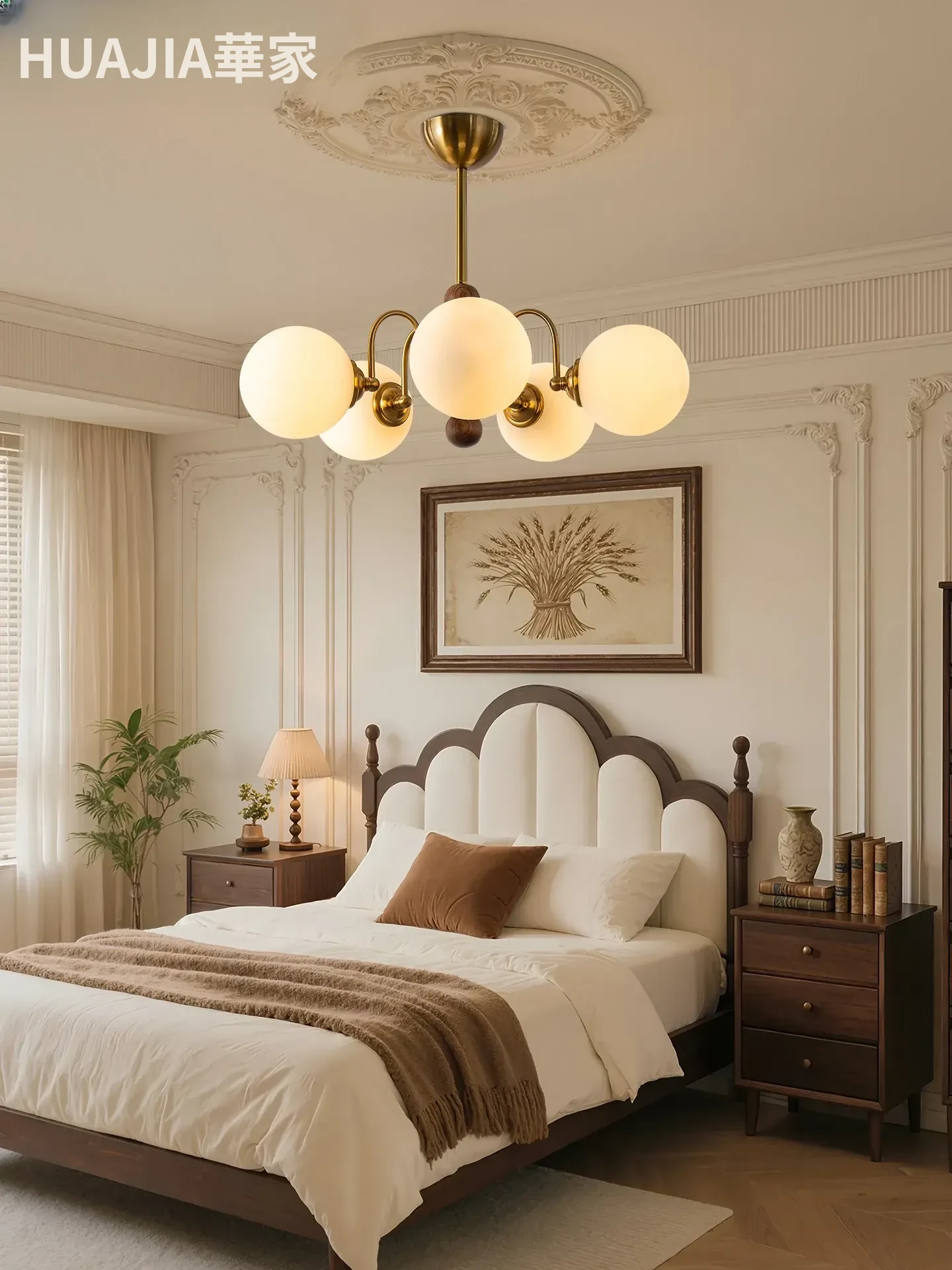 フランス風ヴィンテージリビングダイニング用マジックビーンズクリエイティブシャンデリア、アメリカンウォールナット製、高級感あふれるエレガントなデザイン、寝室やダイニングに最適な照明器具