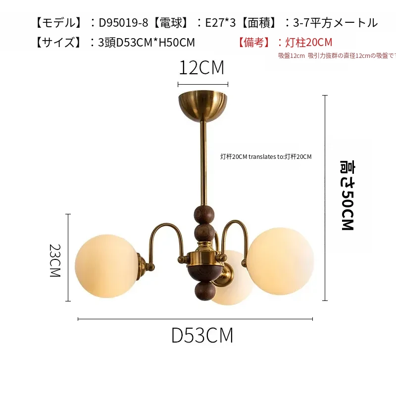 D53*H50cm 3灯銅色+ホワイトアッシュ-三色調光