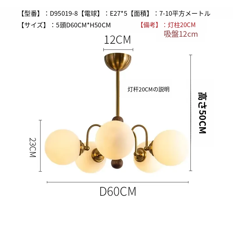 D60*H50cm 5灯銅色+ホワイトアッシュ-三色調光