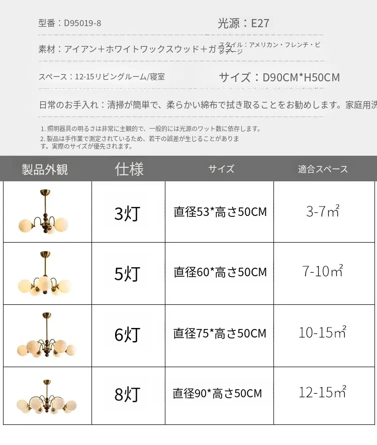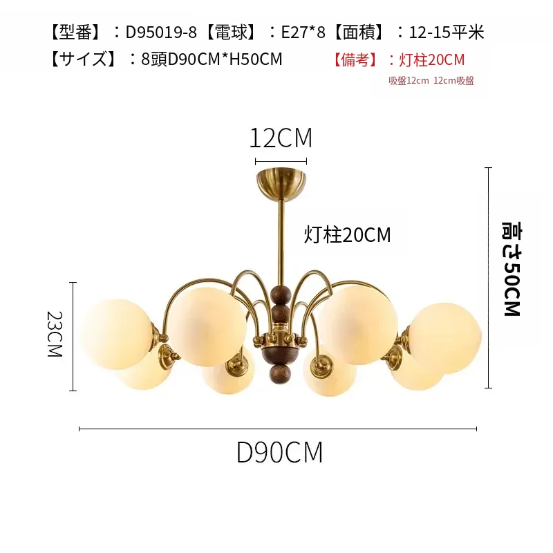D90*H50cm 8灯銅色+ホワイトアッシュ-三色調光