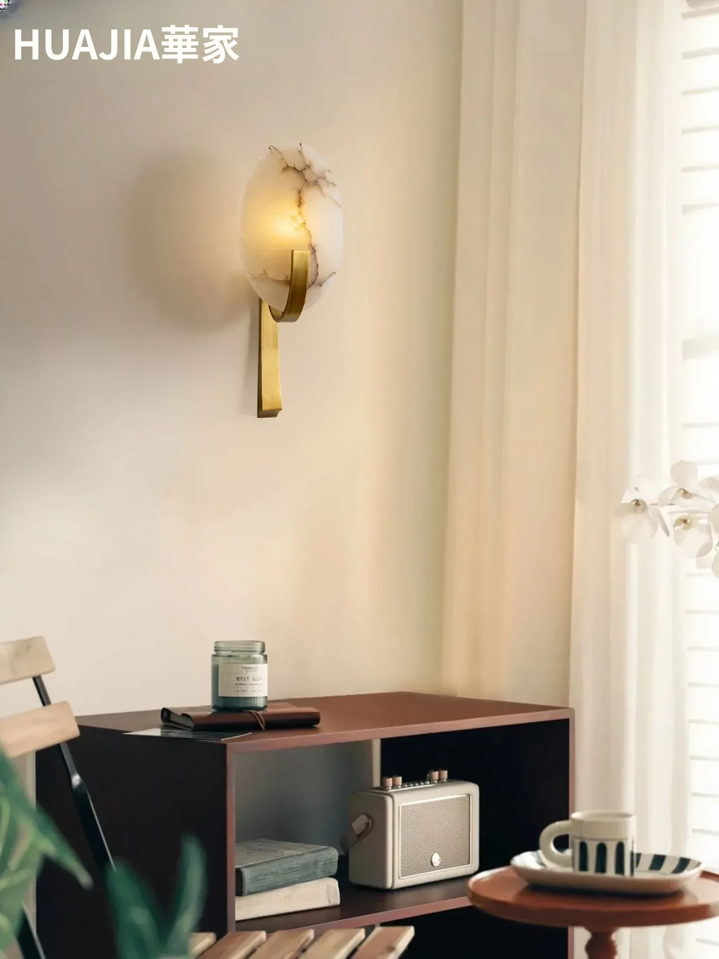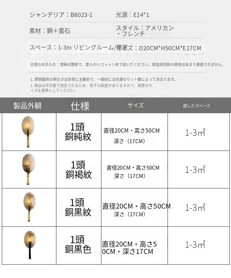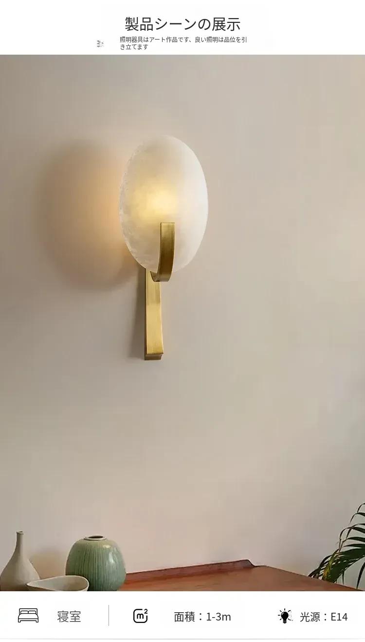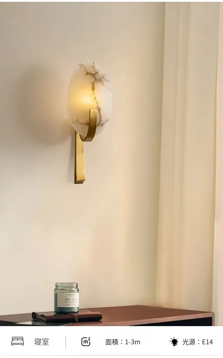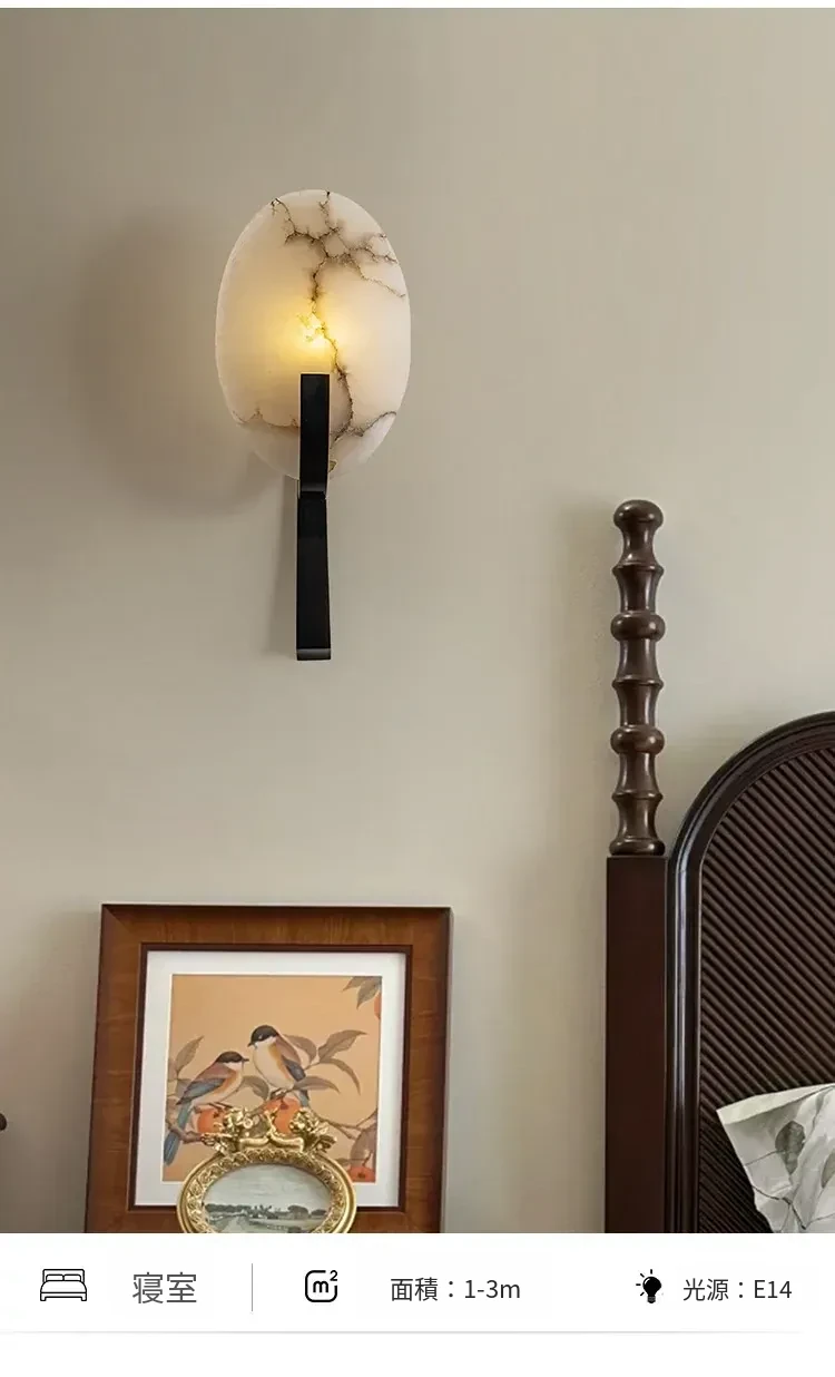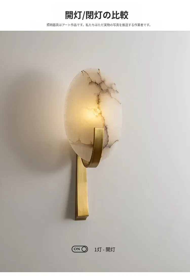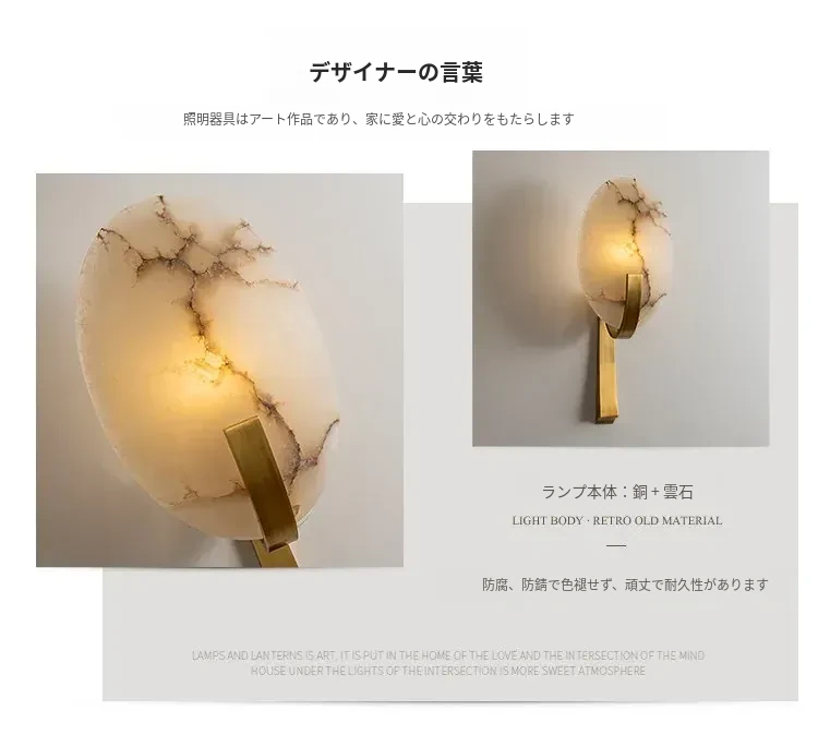 フランス風アンティーク全銅製ウォールランプ - ヴィラや寝室にぴったりなベッドサイドライト。大理石のデザインで、廊下や階段を優雅に演出。心地よい雰囲気をお届けします。