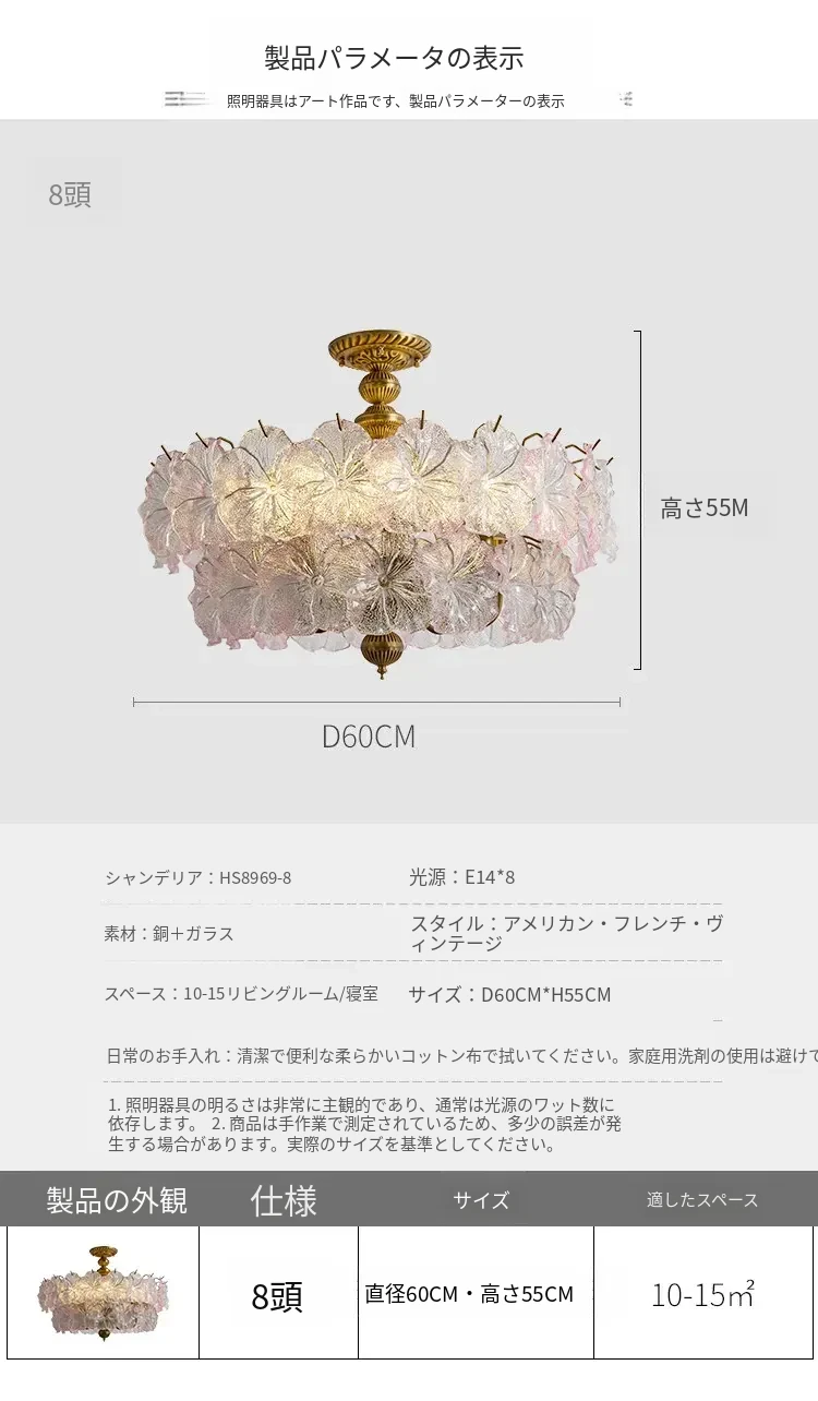フランス風ラグジュアリーガラスシャンデリア - アメリカンスタイルの高級寝室・ダイニング用ペンダントライト。高級感あふれる雰囲気を演出し、寝室や書斎に最適なアイテム!