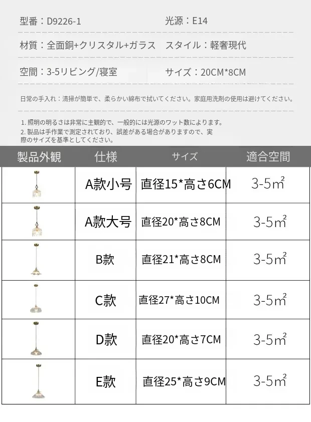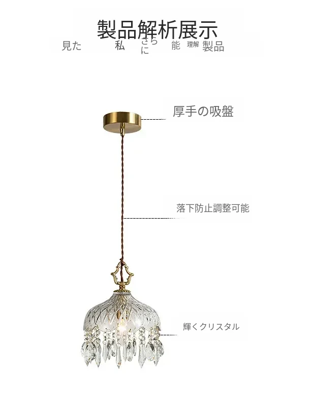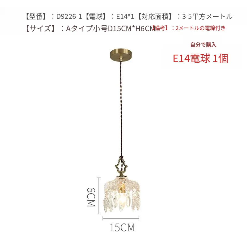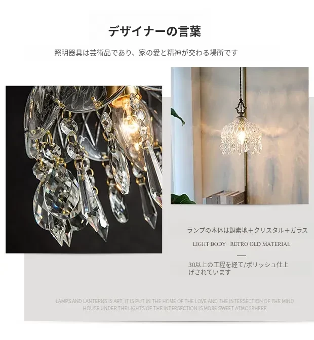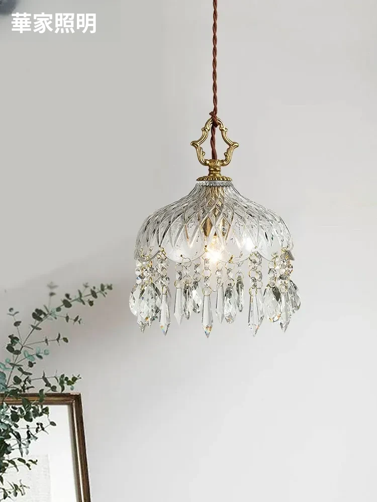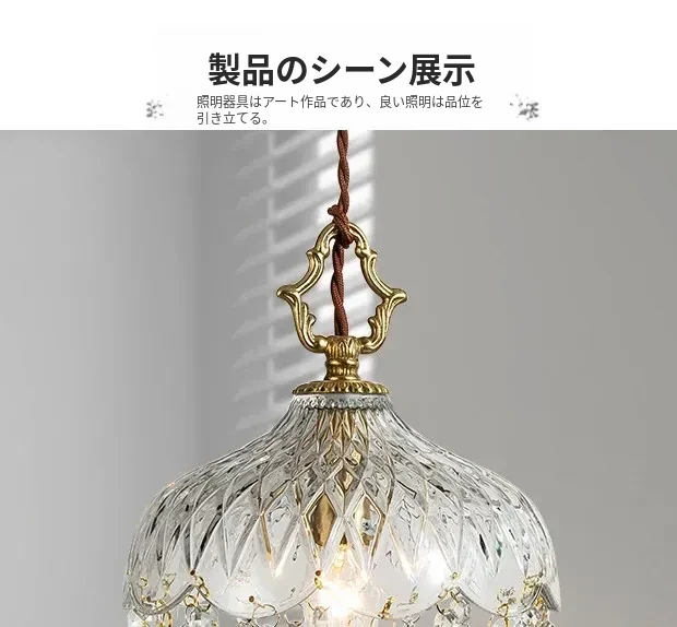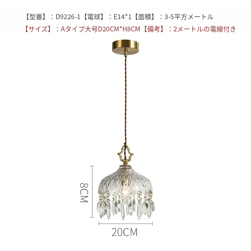 寝室用フレンチスタイルのクリスタルペンダントライト、シンプルでエレガントなデザイン!アメリカンビンテージの魅力が光る、玄関や廊下にぴったりのライトです。あなたの空間を華やかに彩ります!