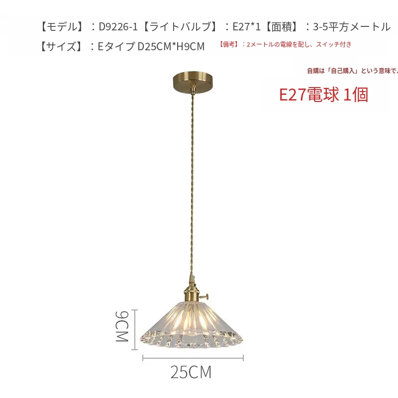 D25*H9CM1頭E款 全銅小吊灯