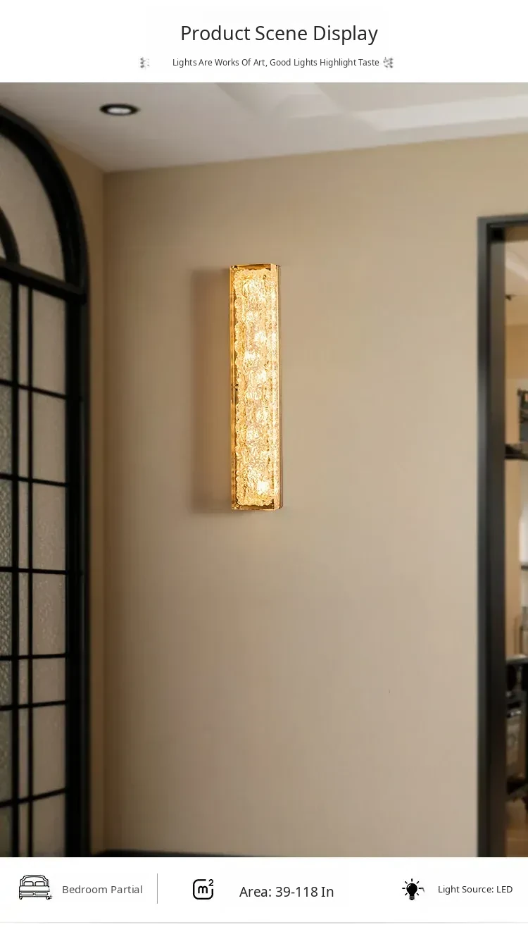 French-style Elegant Wall Lamp - Modern Minimalist Bedside Light for Bedroom, Chic Glass Lighting Fixture with Water Wave Design for Living Room, Accent Walls, and Hallways. Perfect for Adding a Touch of Sophistication to Your Home Décor!