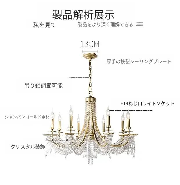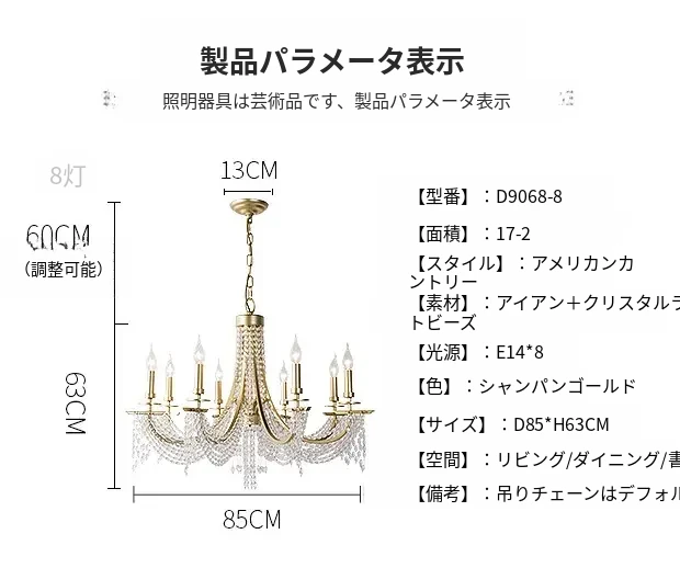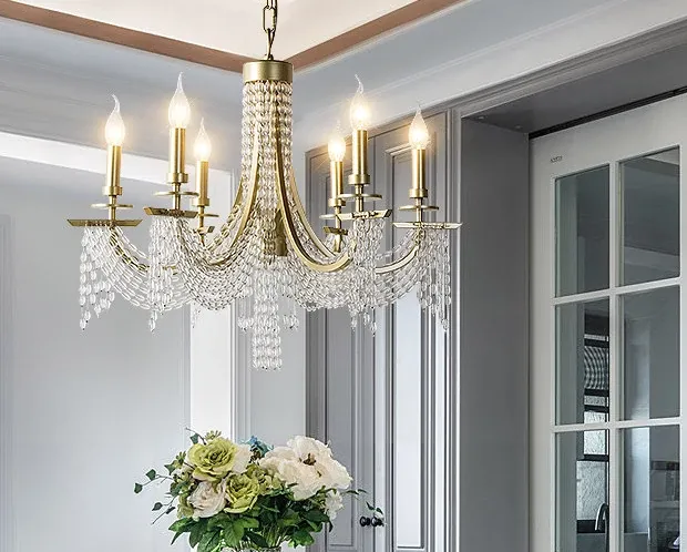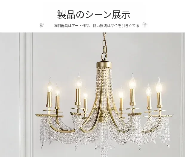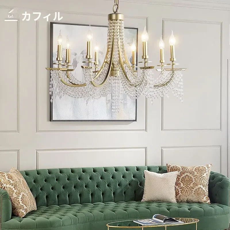 カフィール アメリカンスタイル シャンデリア リビングルーム ランプ ビーズチェーン アートクリエイティブ シンプル ラグジュアリー フレンチ ダイニングルーム ライト 寝室用 クリスタルライトでおしゃれな空間を演出!