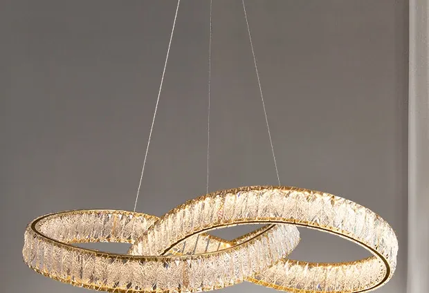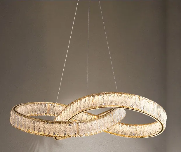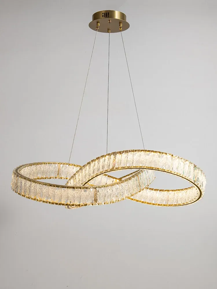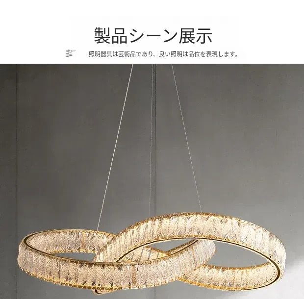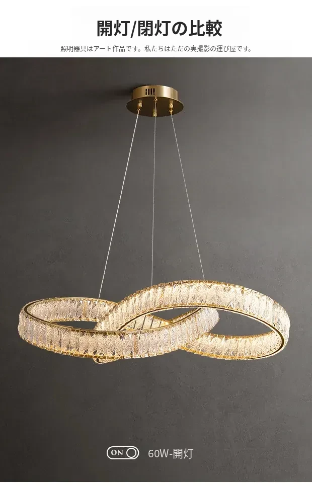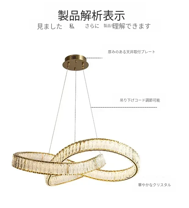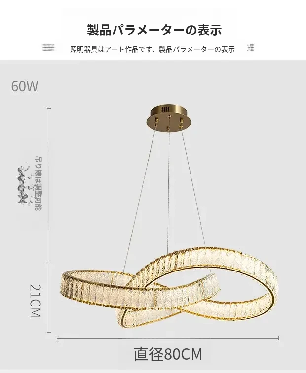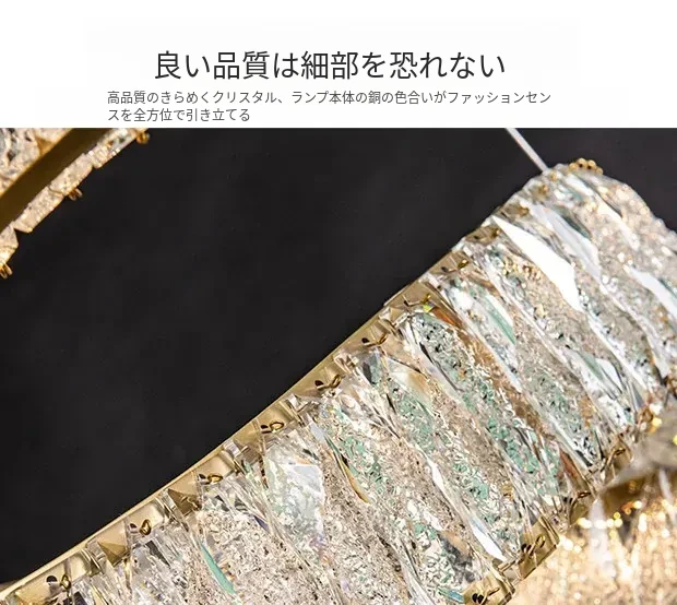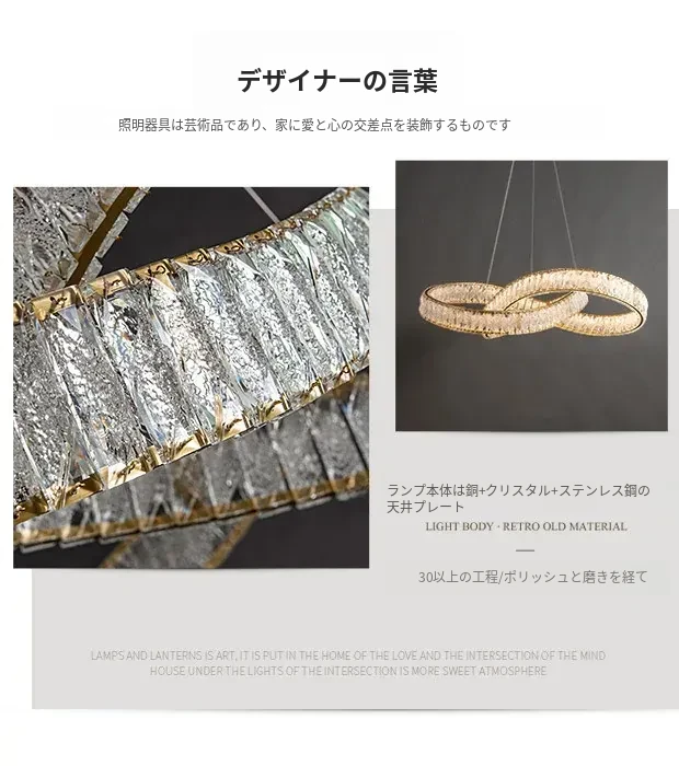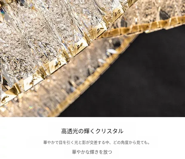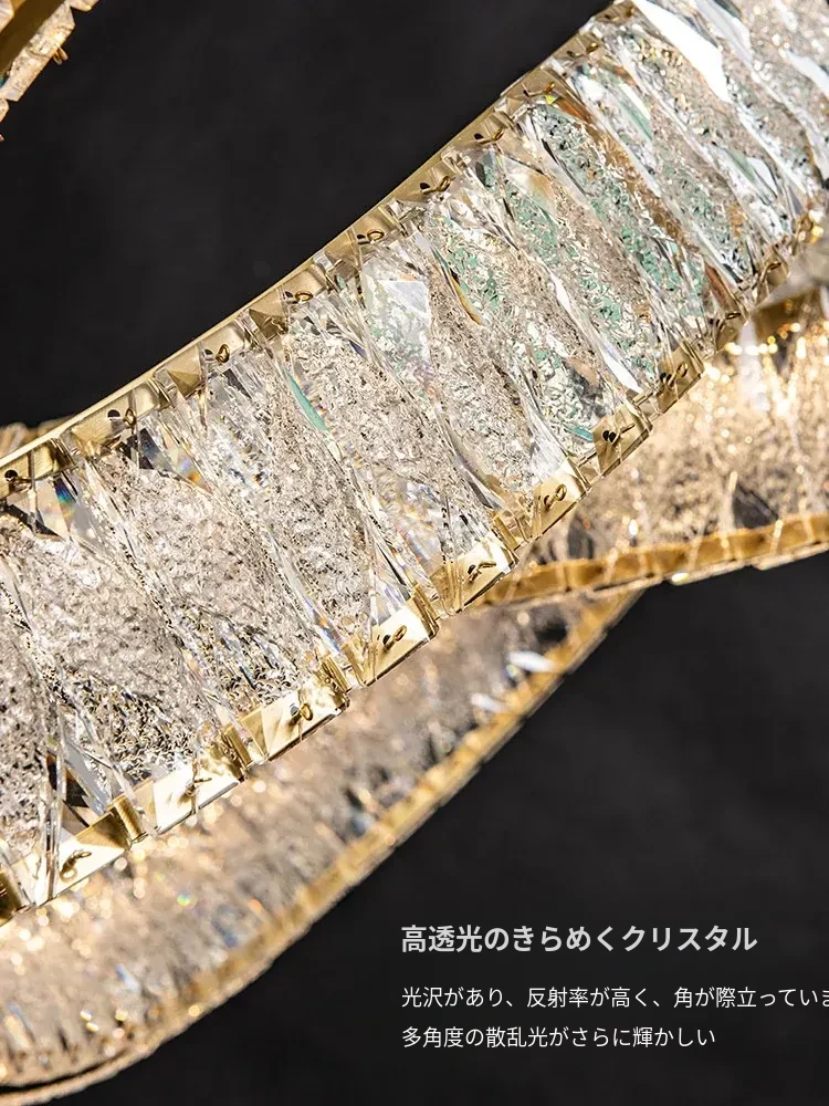 洗練されたデザインのクリスタルシャンデリア - モダンでユニークな形状の高級感あふれる全銅製リビング・ダイニング用照明。贅沢な空間を演出し、あなたのインテリアを一段と引き立てます!