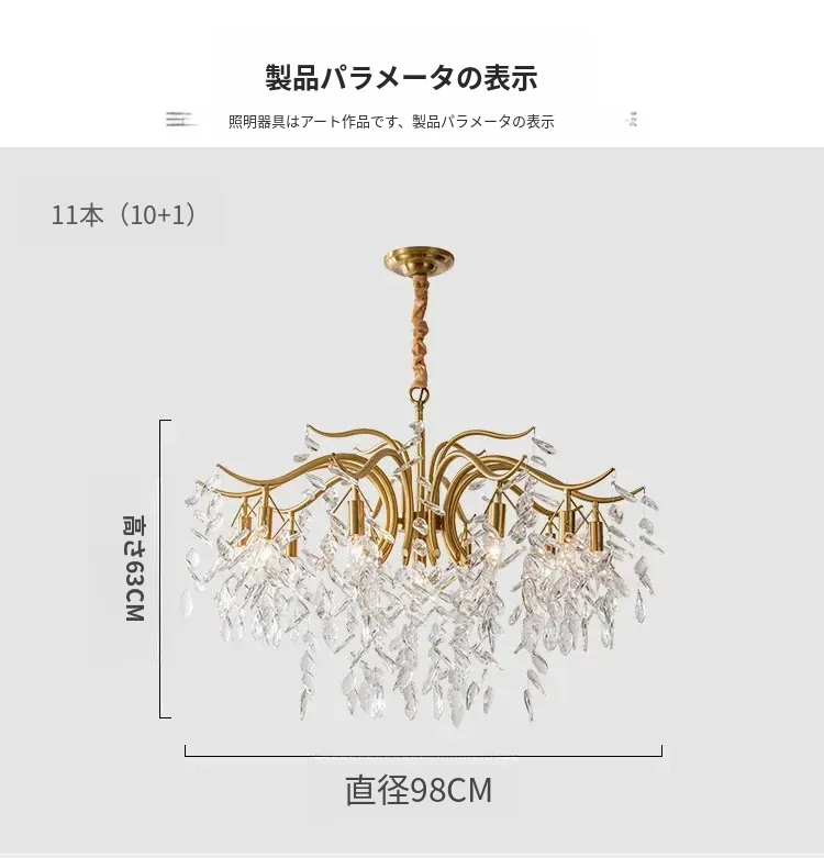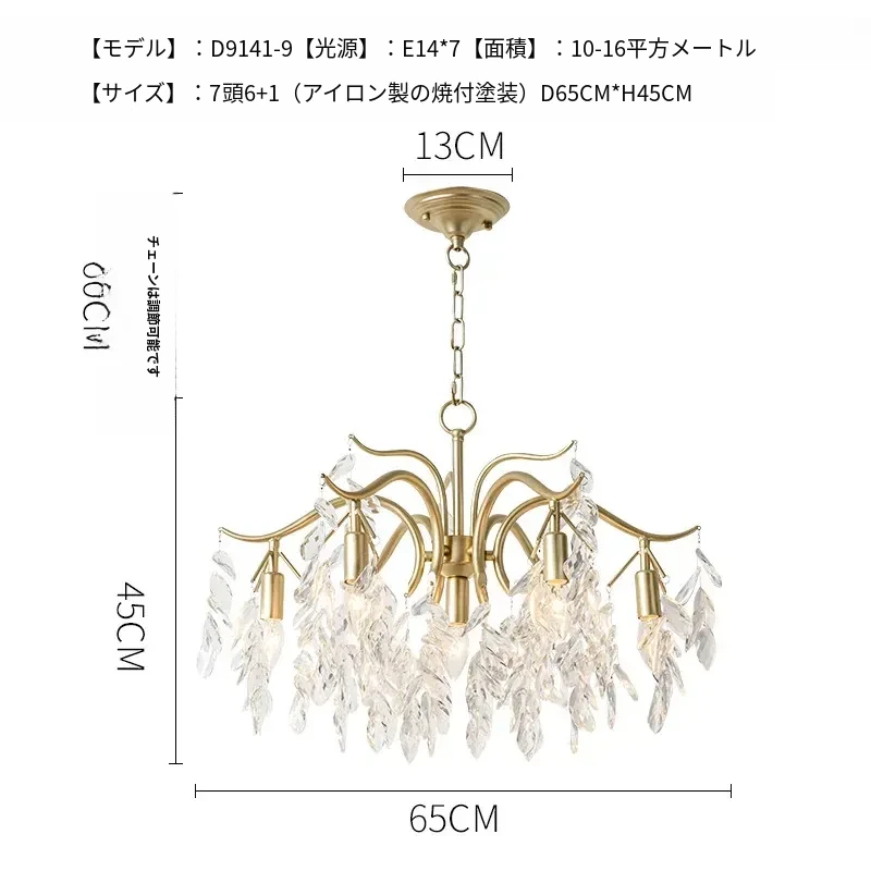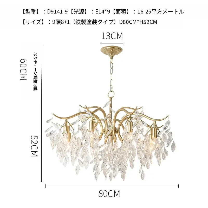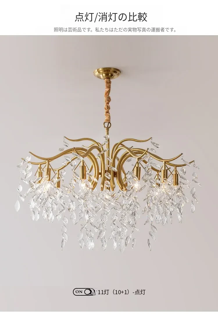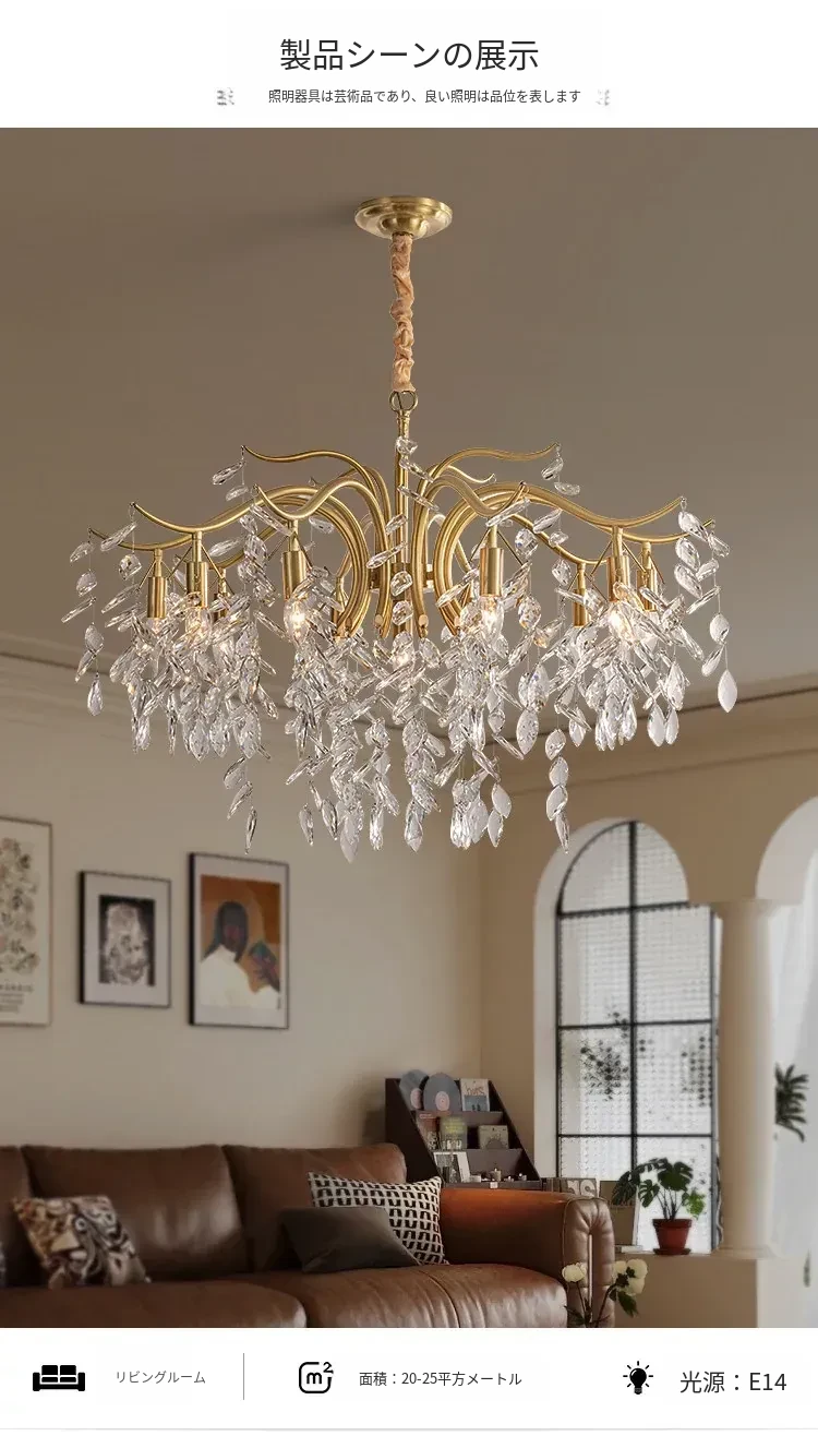 フランス風クリスタルシャンデリア|リビング・ダイニング・寝室に最適|モダンアメリカン・ラグジュアリーな高級感|全銅製シャンデリアで空間を華やかに演出!