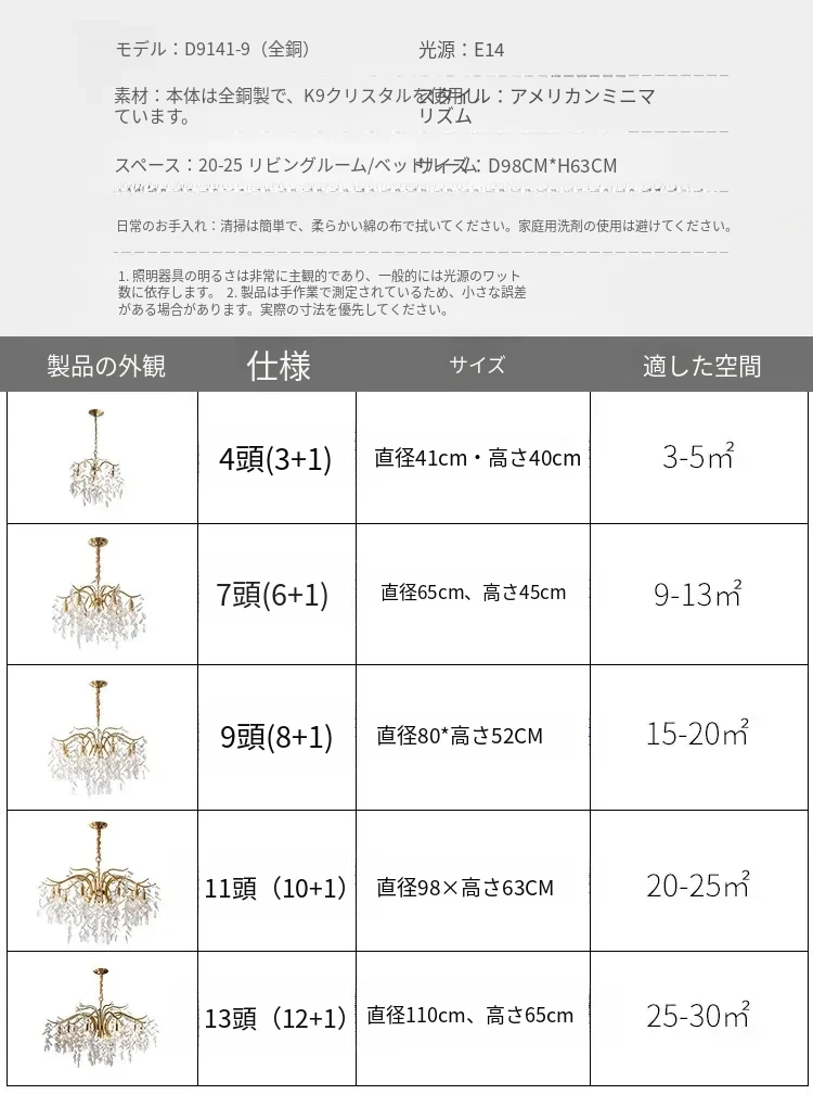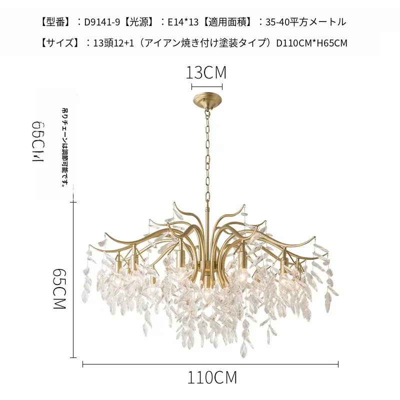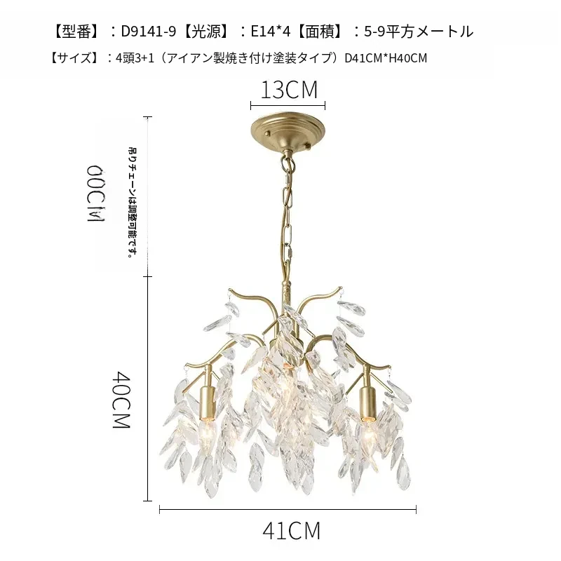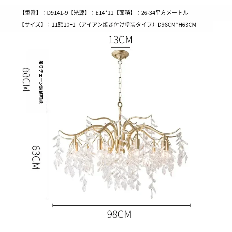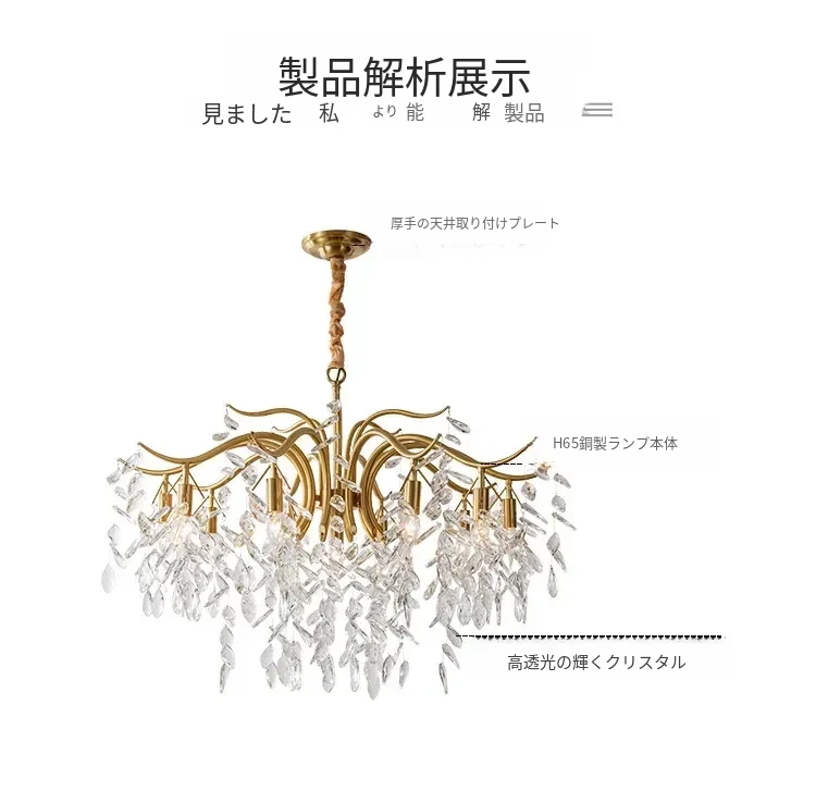 フランス風クリスタルシャンデリア|リビング・ダイニング・寝室に最適|モダンアメリカン・ラグジュアリーな高級感|全銅製シャンデリアで空間を華やかに演出!