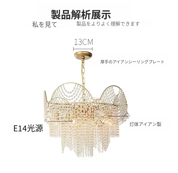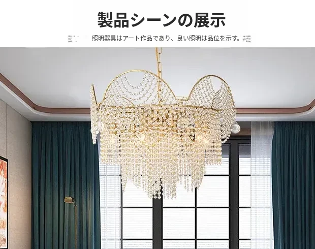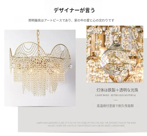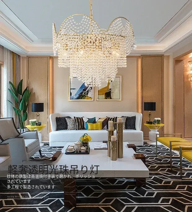アメリカンカントリー風の軽奢クリスタルリビング用シャンデリア|現代的でクリエイティブなデザインの寝室灯|デザイナーズモデルルームやダイニングにも最適!