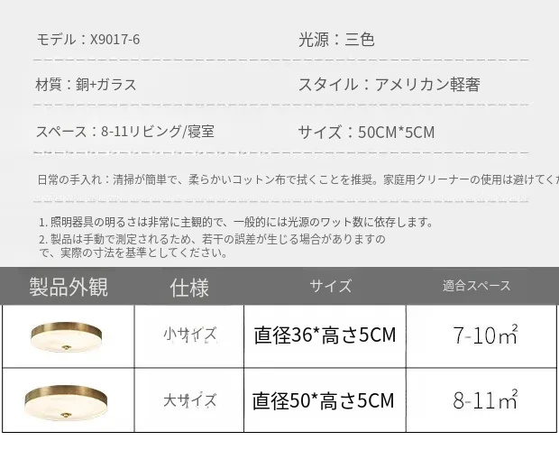 北欧スタイルのシンプルでラグジュアリーな天井灯|現代的なデザインの薄型LED|寝室や書斎に最適なアメリカンスタイルの全銅製|大気を醸し出す円形照明で、心地よい空間を演出します!