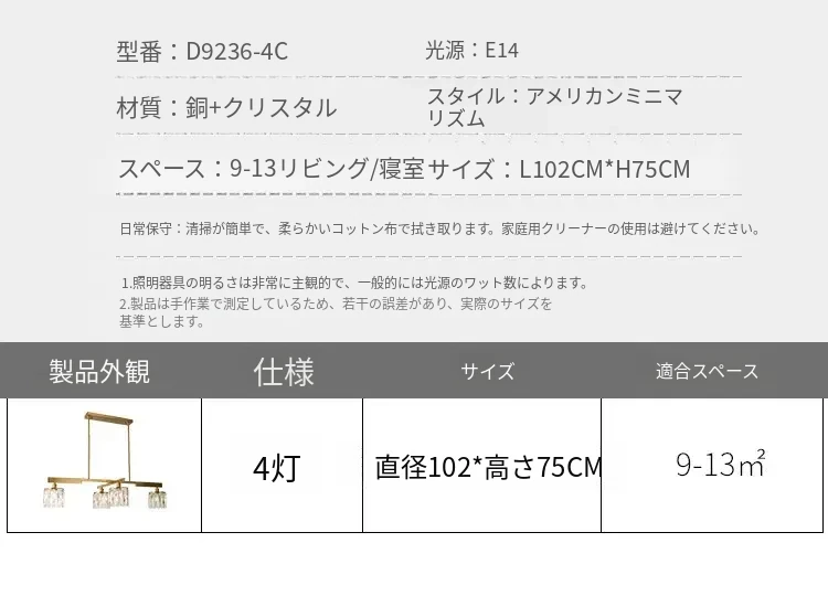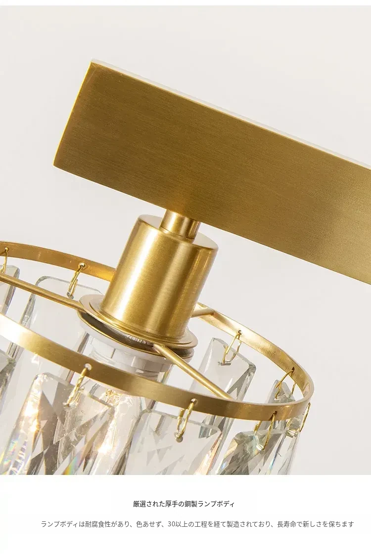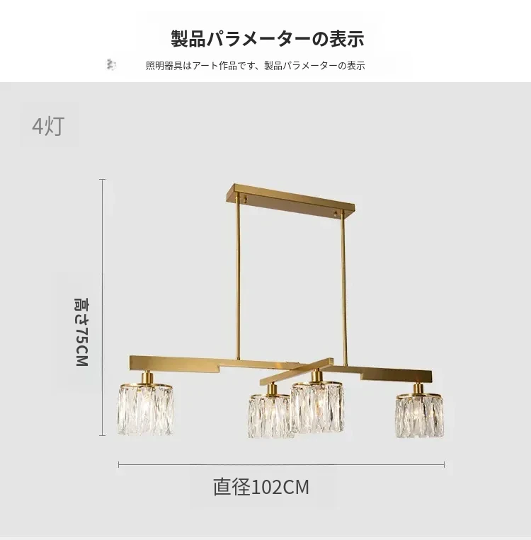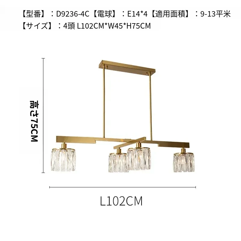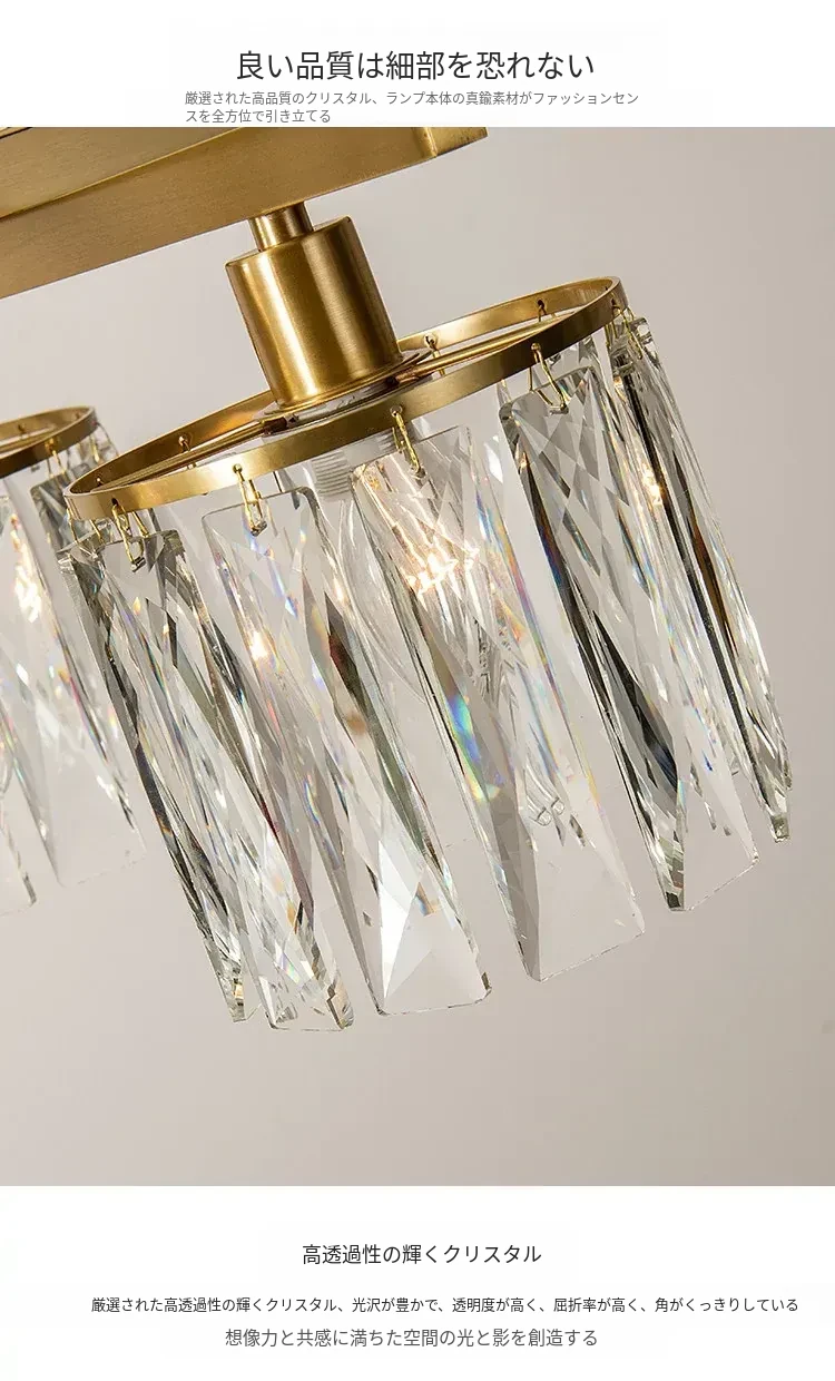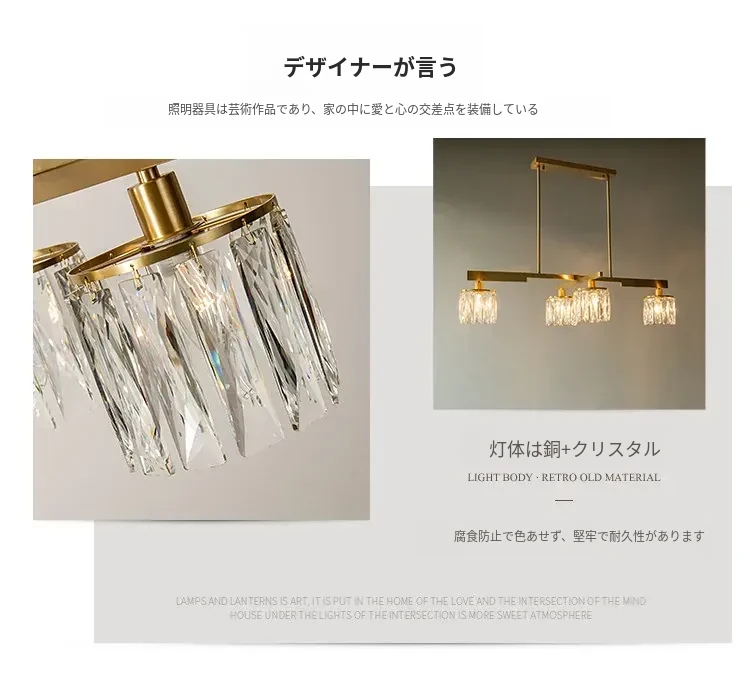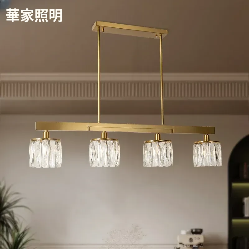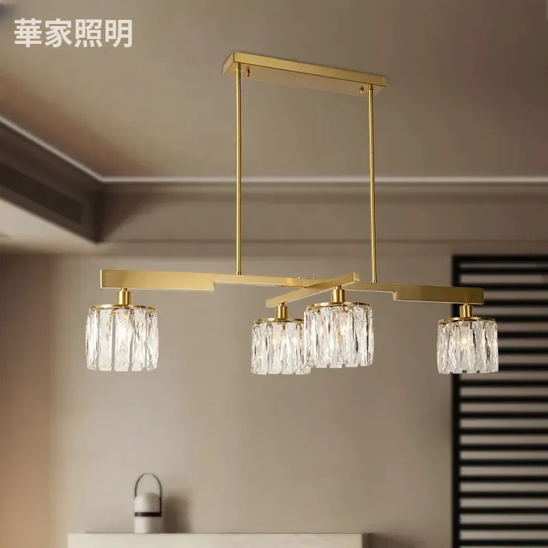 アメリカンスタイル全銅製レストラン用ペンダントライト - シンプルでエレガントな長方形デザイン、ダイニングテーブルに最適!高級感あふれるクリスタルの一字型バーライトで、あなたの食卓を華やかに演出します。