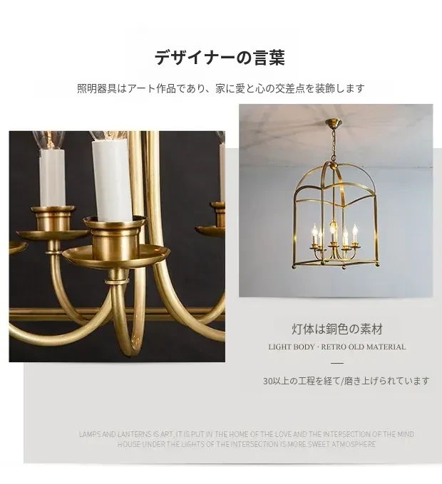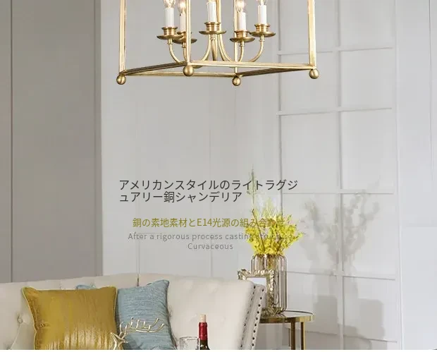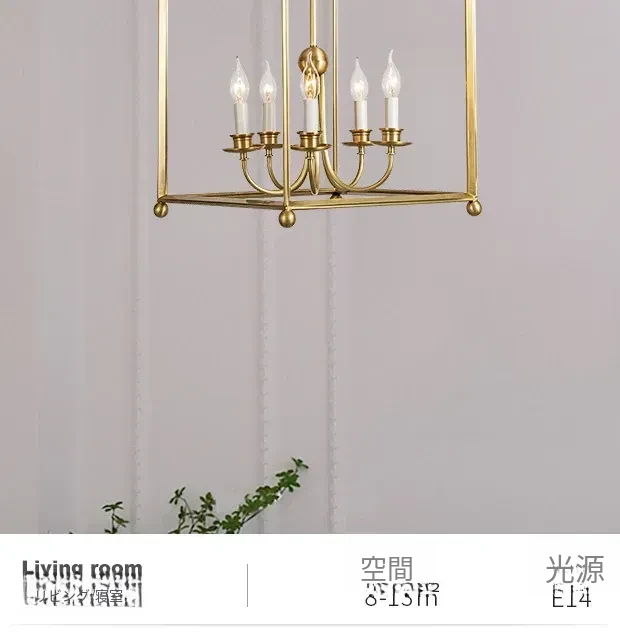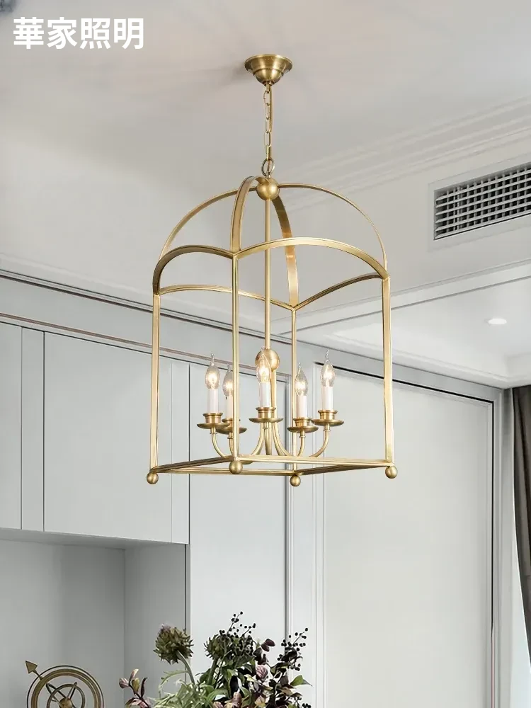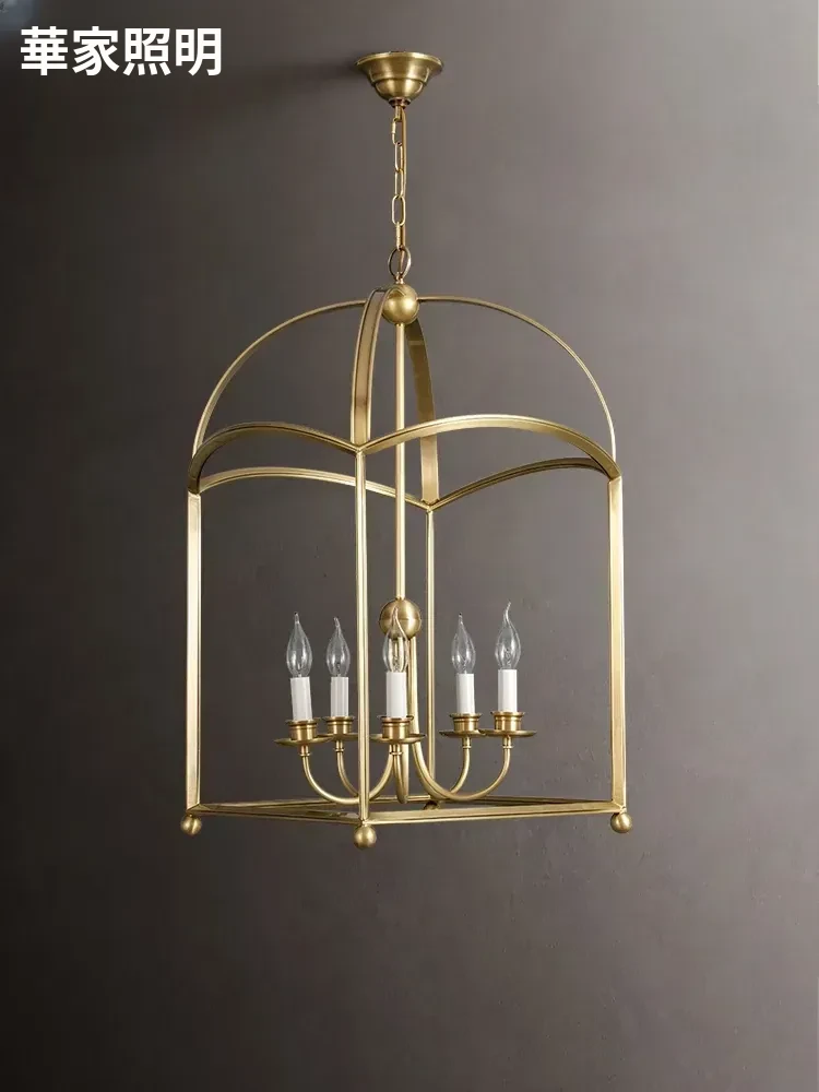 レトロアメリカン&フレンチスタイルの高級シャンデリア - ヴィラのエントランスや書斎、寝室、階段にぴったり!純銅製のスクエアデザインで、優雅さとクラシックな雰囲気を演出します。