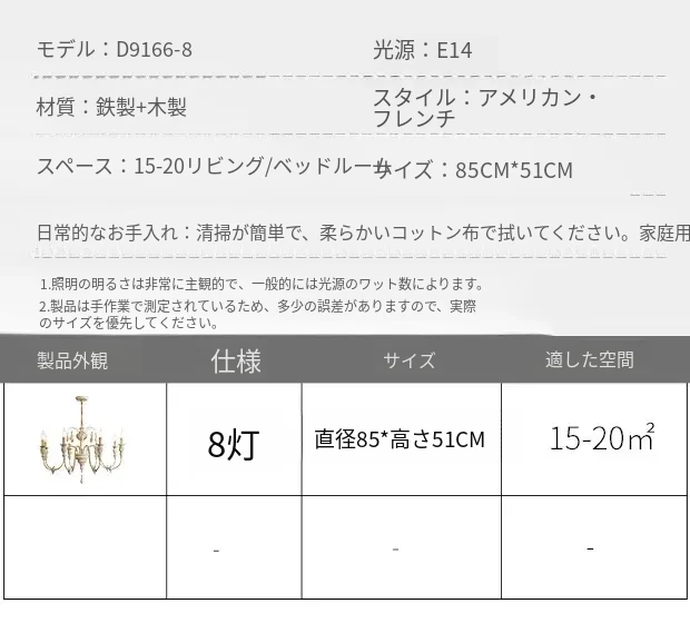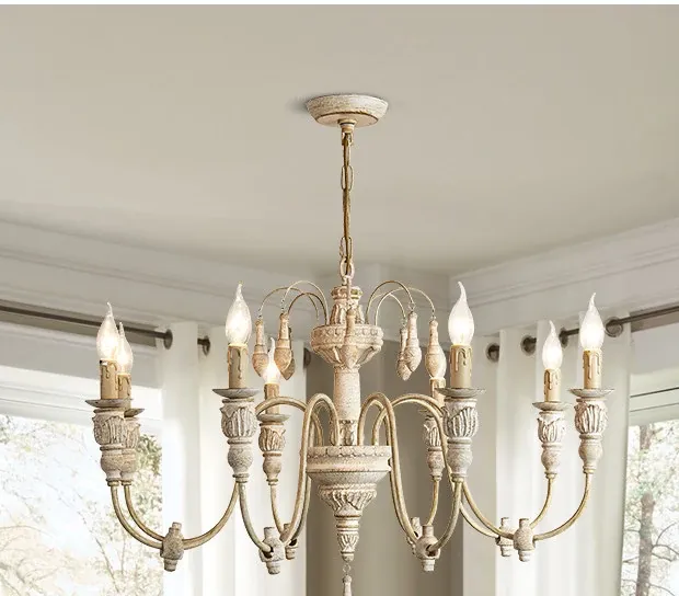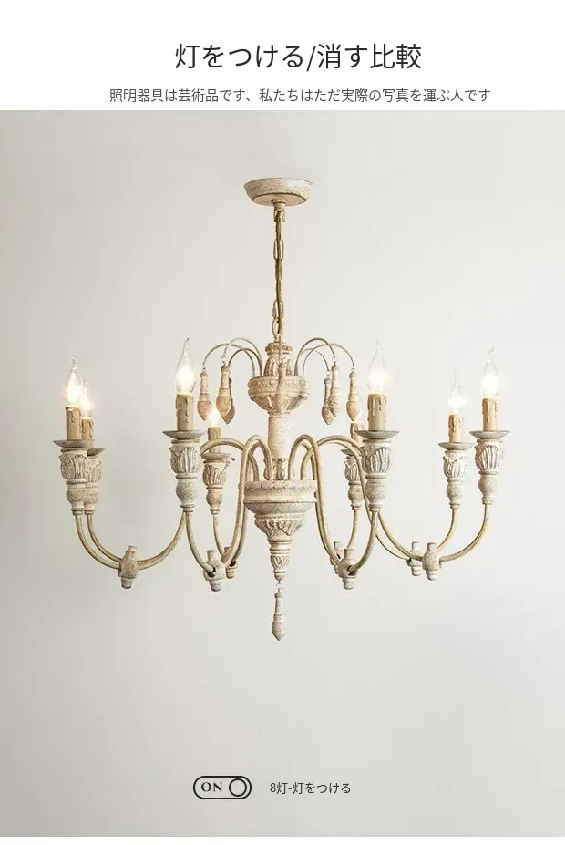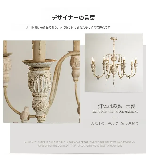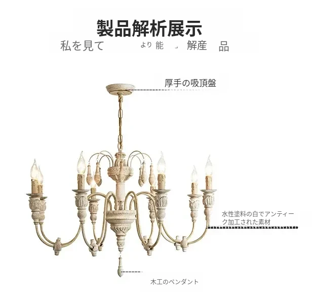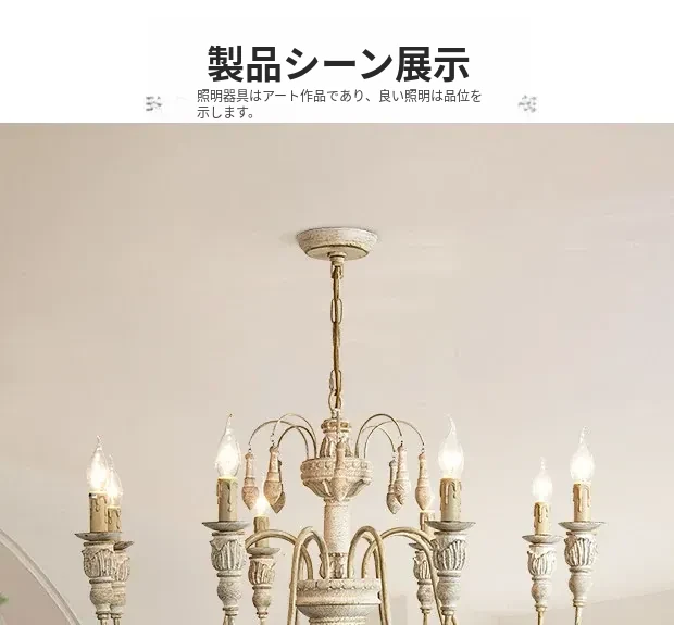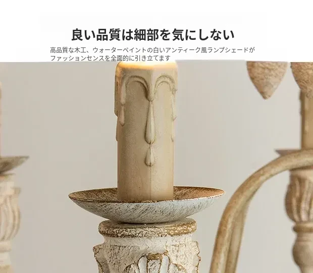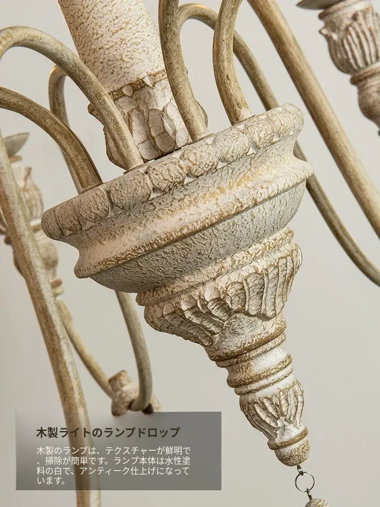 アメリカンスタイルのシャンデリア - レトロなフレンチカントリーデザイン、プリンセスルームや別荘、民宿に最適!おしゃれなキャンドルウッドライトで、リビングやダイニングを温かく彩ります。