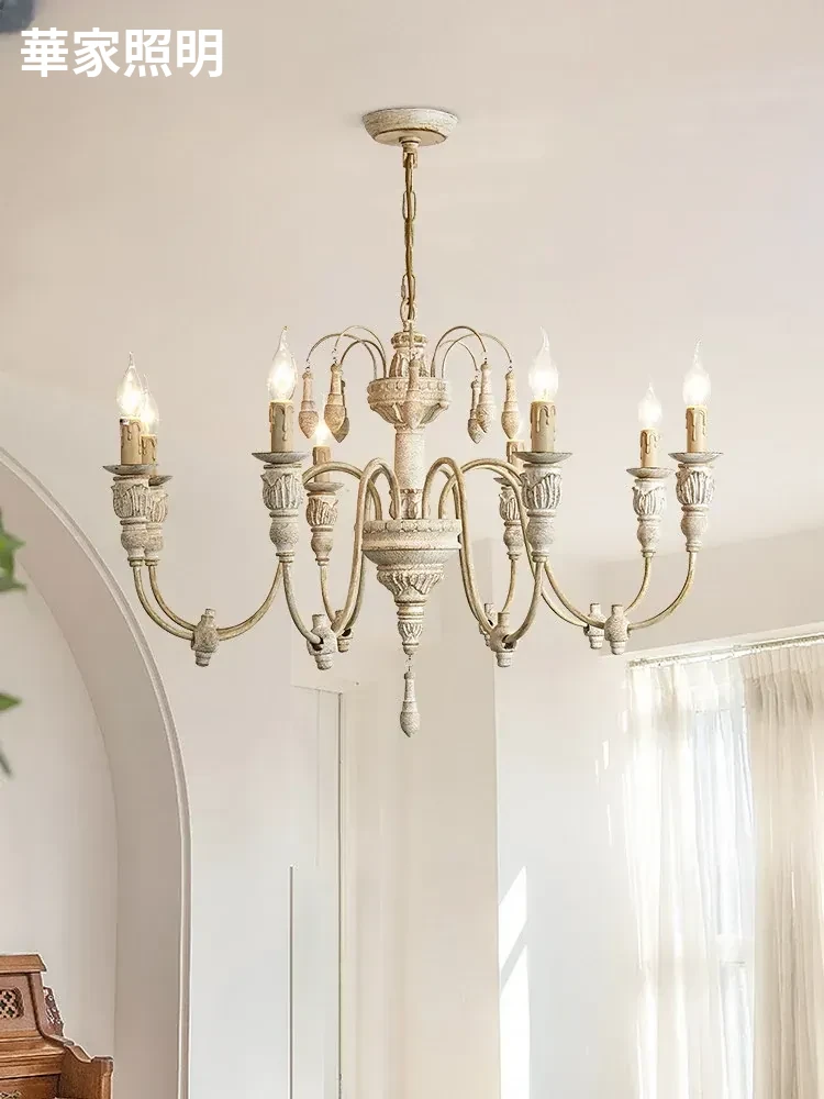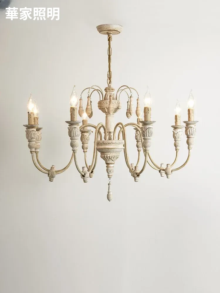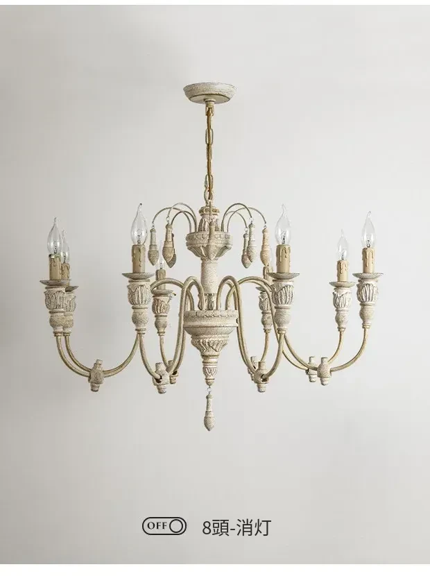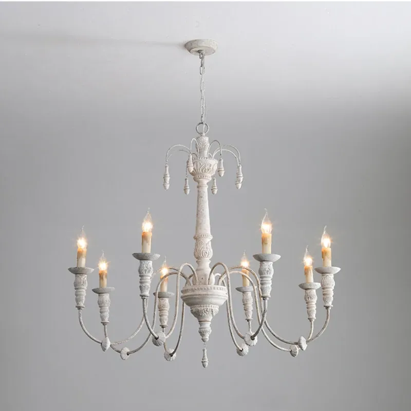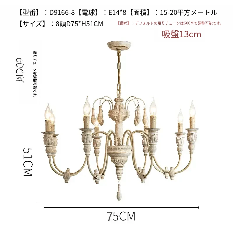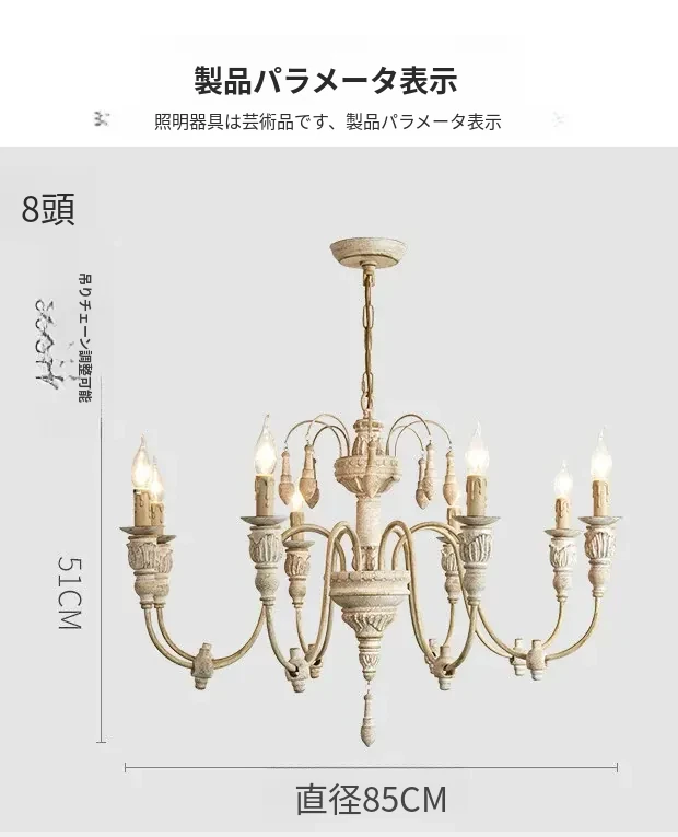 アメリカンスタイルのシャンデリア - レトロなフレンチカントリーデザイン、プリンセスルームや別荘、民宿に最適!おしゃれなキャンドルウッドライトで、リビングやダイニングを温かく彩ります。
