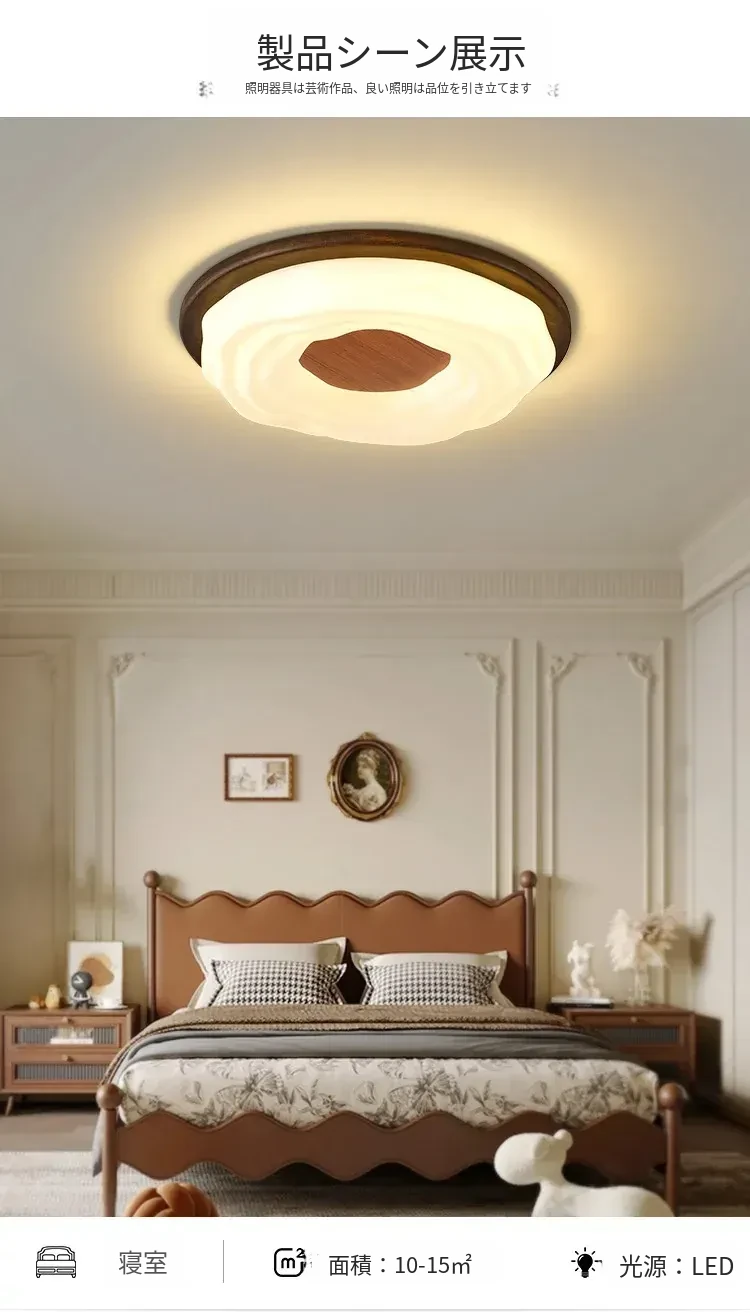 レトロなアメリカンスタイルのウォールナット製天井ライト!2024年新作、オシャレな木製フランス風ダイニングライト。寝室やサブルームにぴったりの中古風デザインで、優雅な雰囲気を演出します。