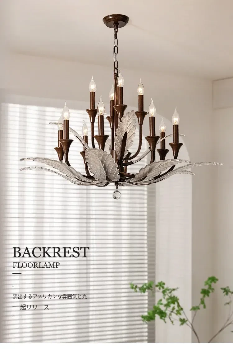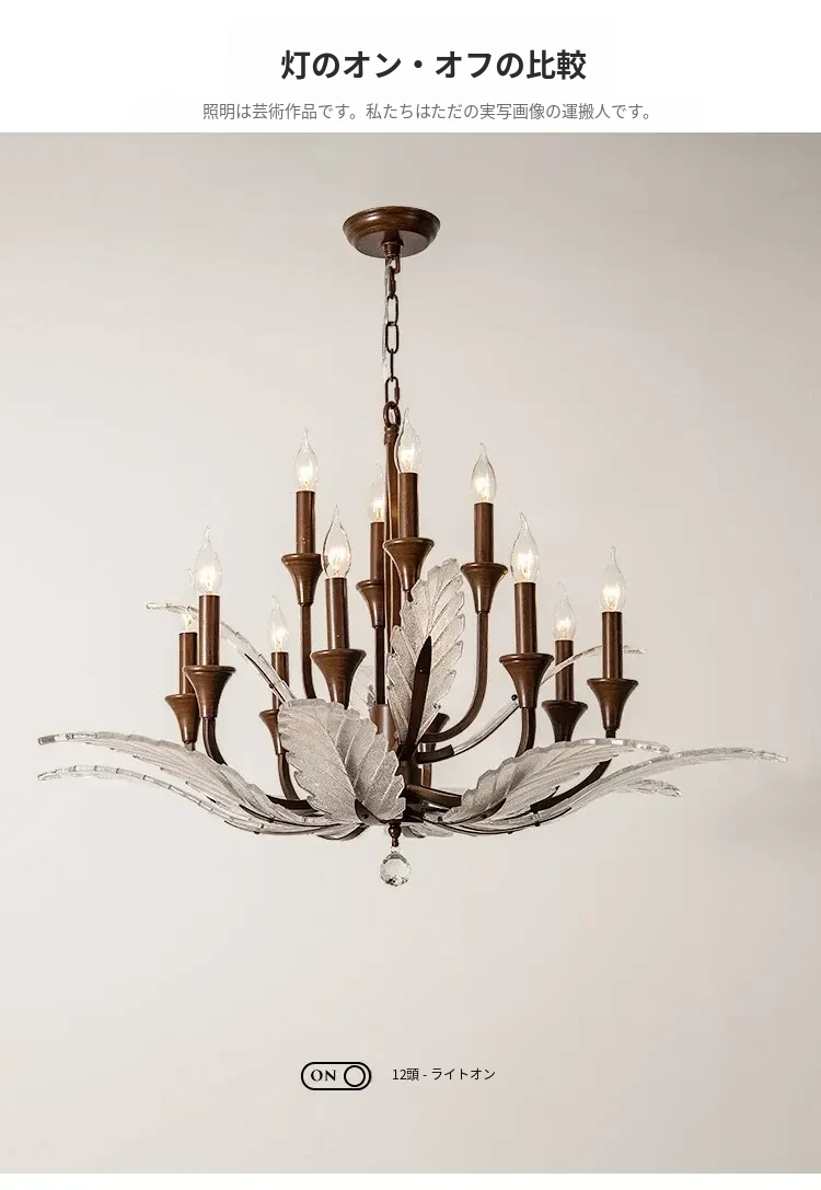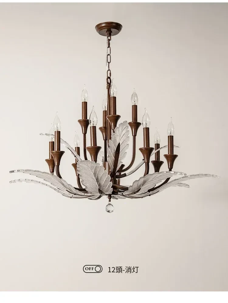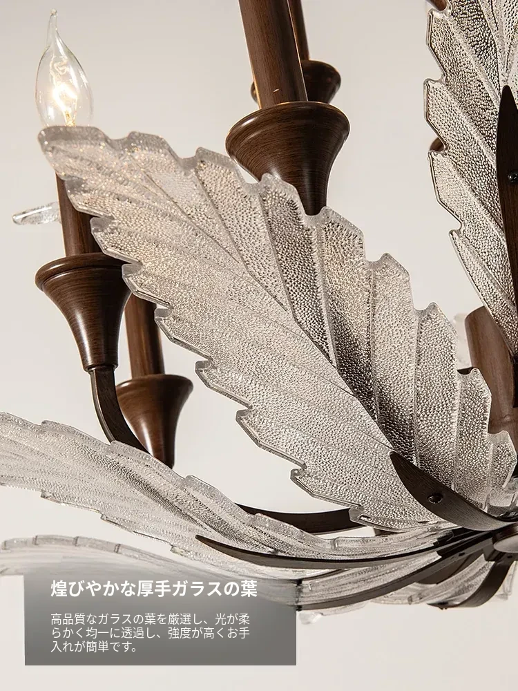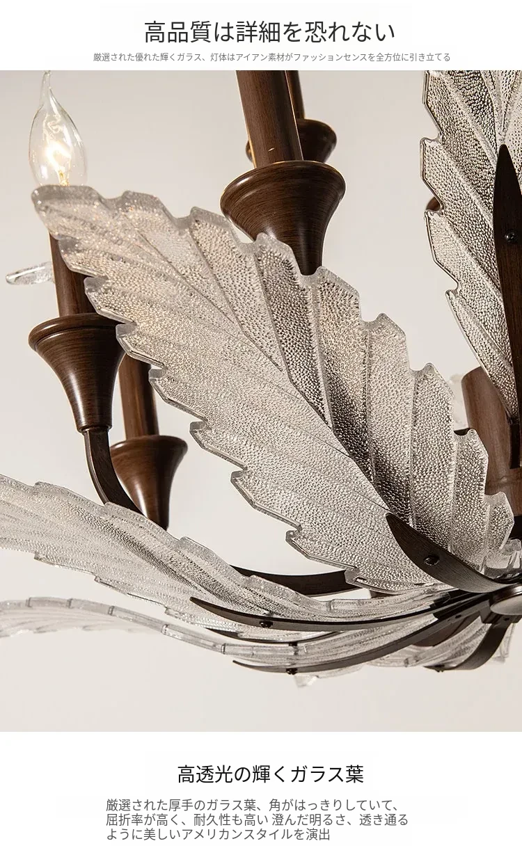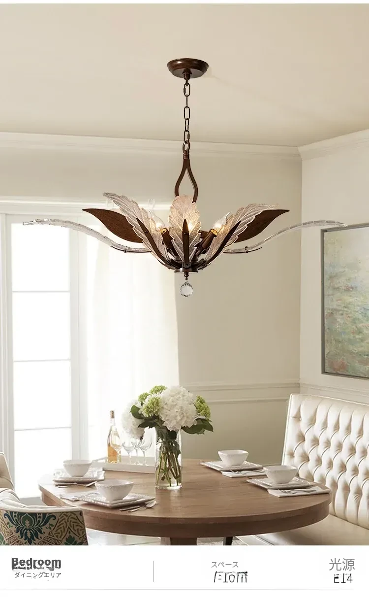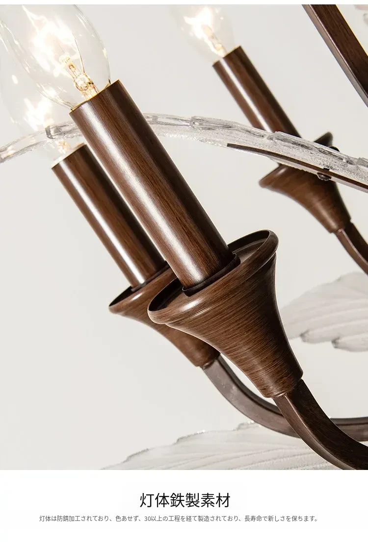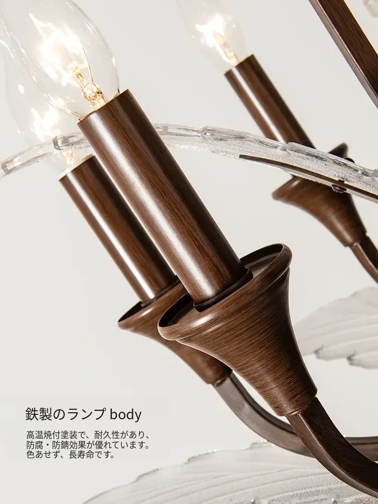 フレンチスタイルのヴィンテージシャンデリア、ガラスの美しいデザイン。アメリカンヴィンテージのファッショナブルでシンプルなウォールナット色、寝室や書斎にぴったりの灯りを演出します。