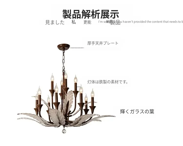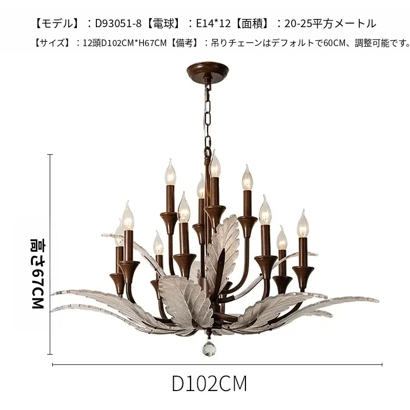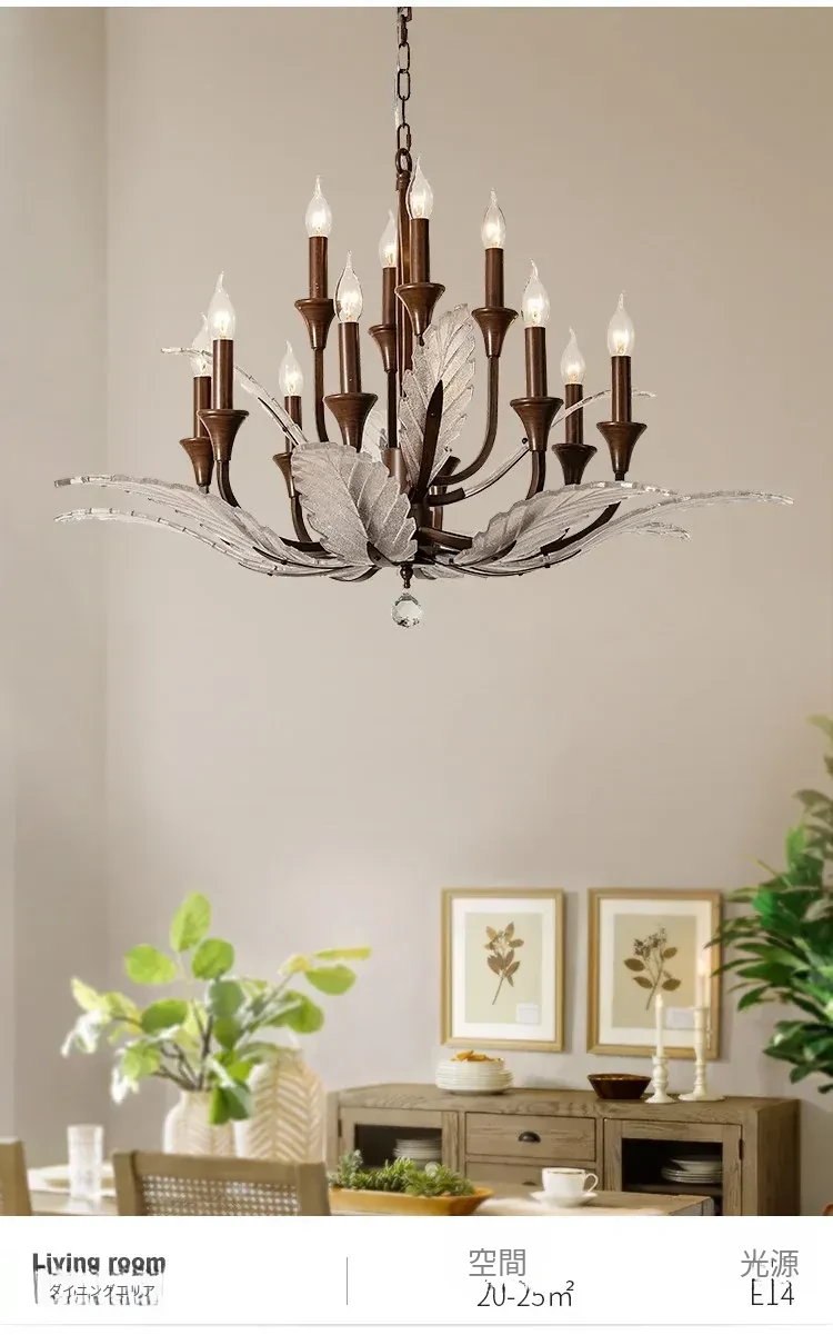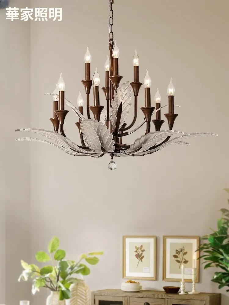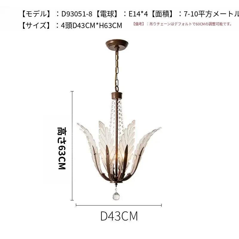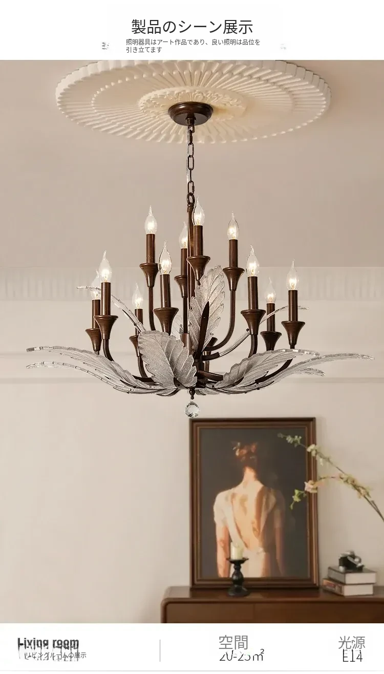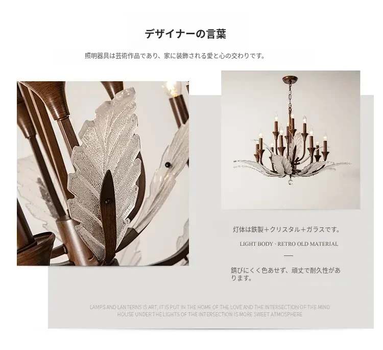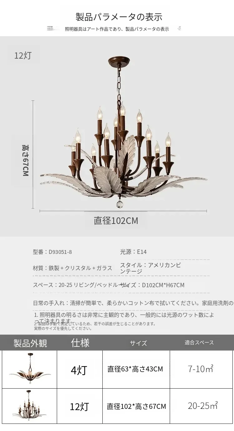 フレンチスタイルのヴィンテージシャンデリア、ガラスの美しいデザイン。アメリカンヴィンテージのファッショナブルでシンプルなウォールナット色、寝室や書斎にぴったりの灯りを演出します。