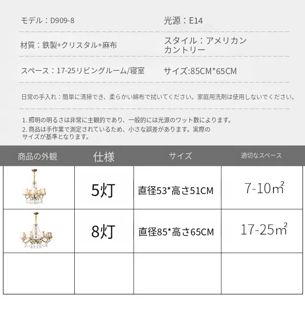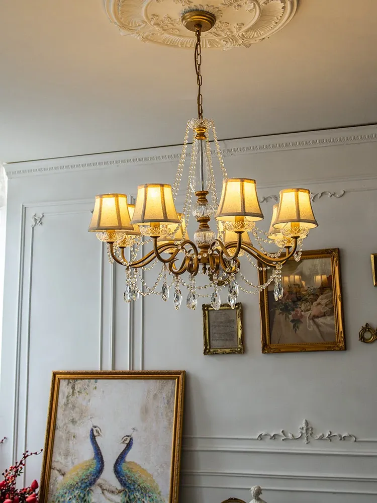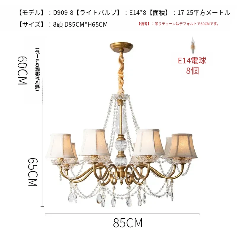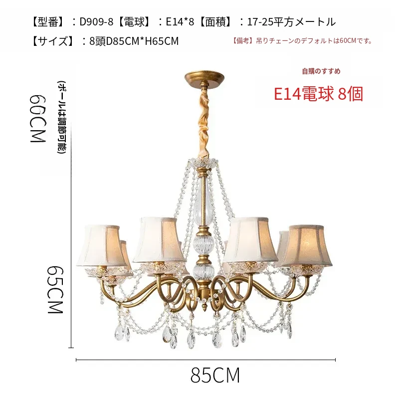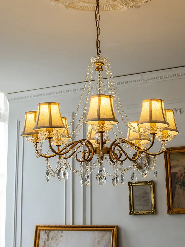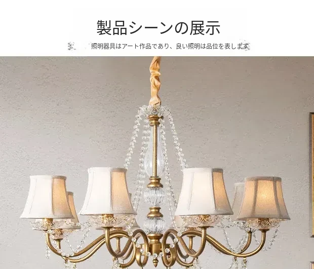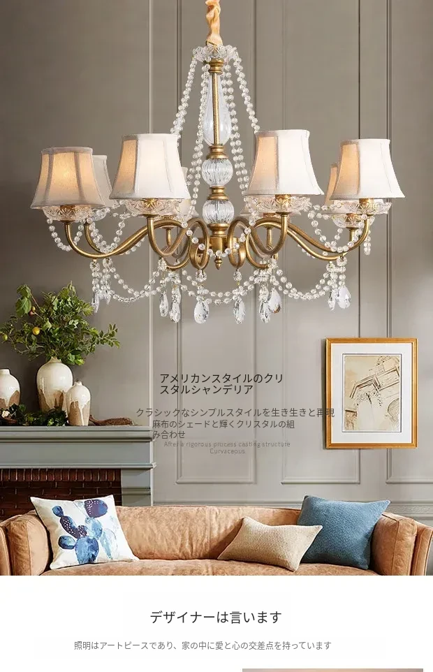 アメリカンスタイルの寝室用シャンデリア!クリエイティブなデザインのホームランプ、レトロなクリスタルとフレンチスタイルが融合した軽やかな贅沢感。リビングルームを華やかに彩る、魅力あふれる照明です!