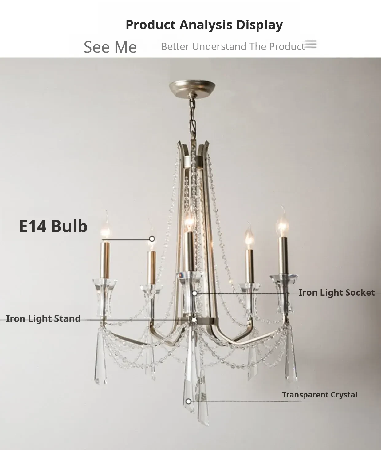D58Cm*H76Cm 5 Heads(For Room Heights Above 112.20in)