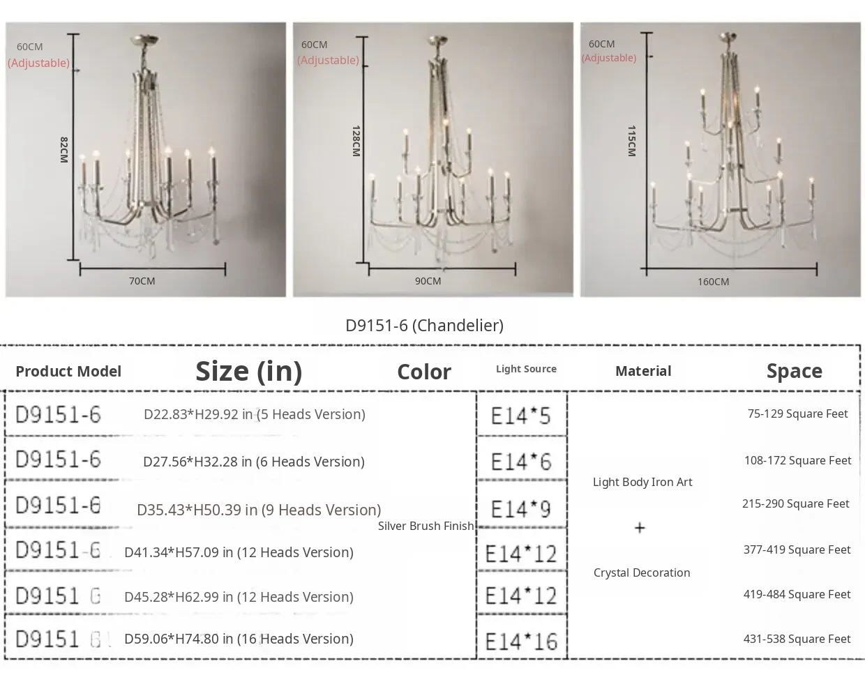 D70Cm*H82Cm 6 Heads(For Room Heights Above 116.14in)