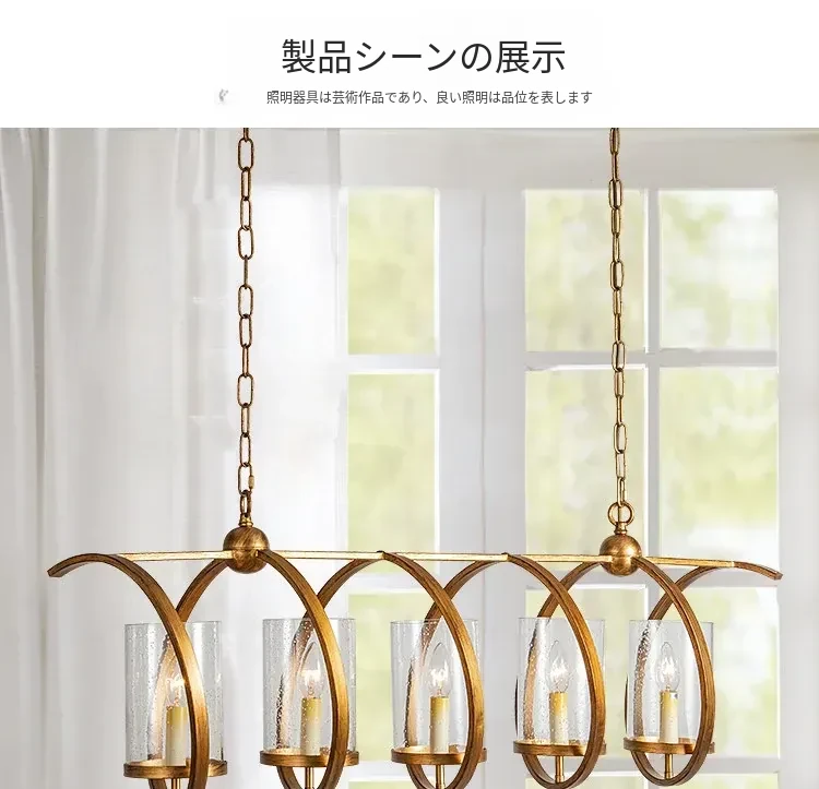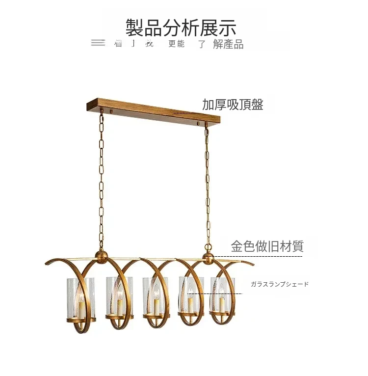 アメリカンスタイルのレトロ長方形ダイニングライト - フレンチアンティーク風のユニークなデザイン、商業用にも最適!おしゃれなカフェやレストランにぴったりのインテリア照明。あなたのダイニングスペースを華やかに演出します!