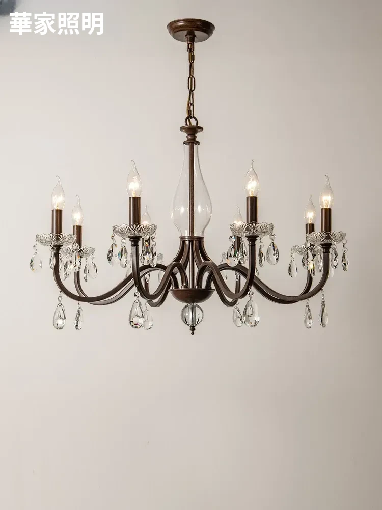 アメリカンレトロクリスタルアイアンシャンデリア|リビング・ダイニング・寝室・書斎にぴったりの中古フレンチヴィラ風2階建て照明器具!魅力的なデザインで空間を華やかに演出します。