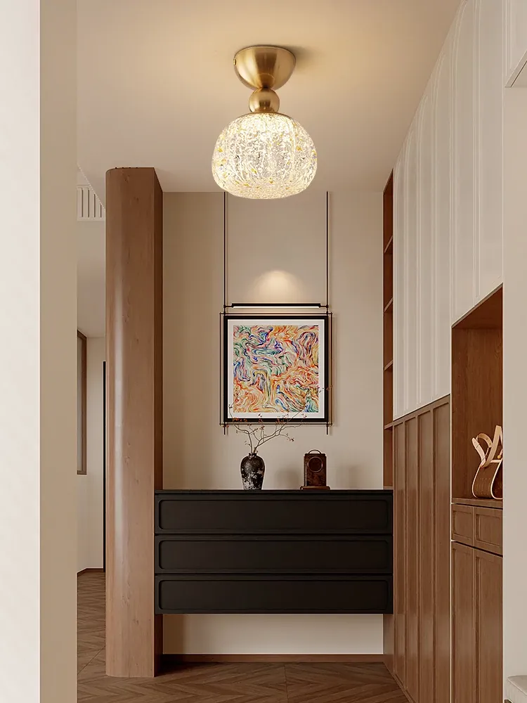 フランス風アンティークシーリングライト 廊下や通路に最適!全銅製のレトロデザイン、入居者を迎える玄関やバルコニーにもピッタリなガラスシーリングランプ。洗練された雰囲気を演出します!