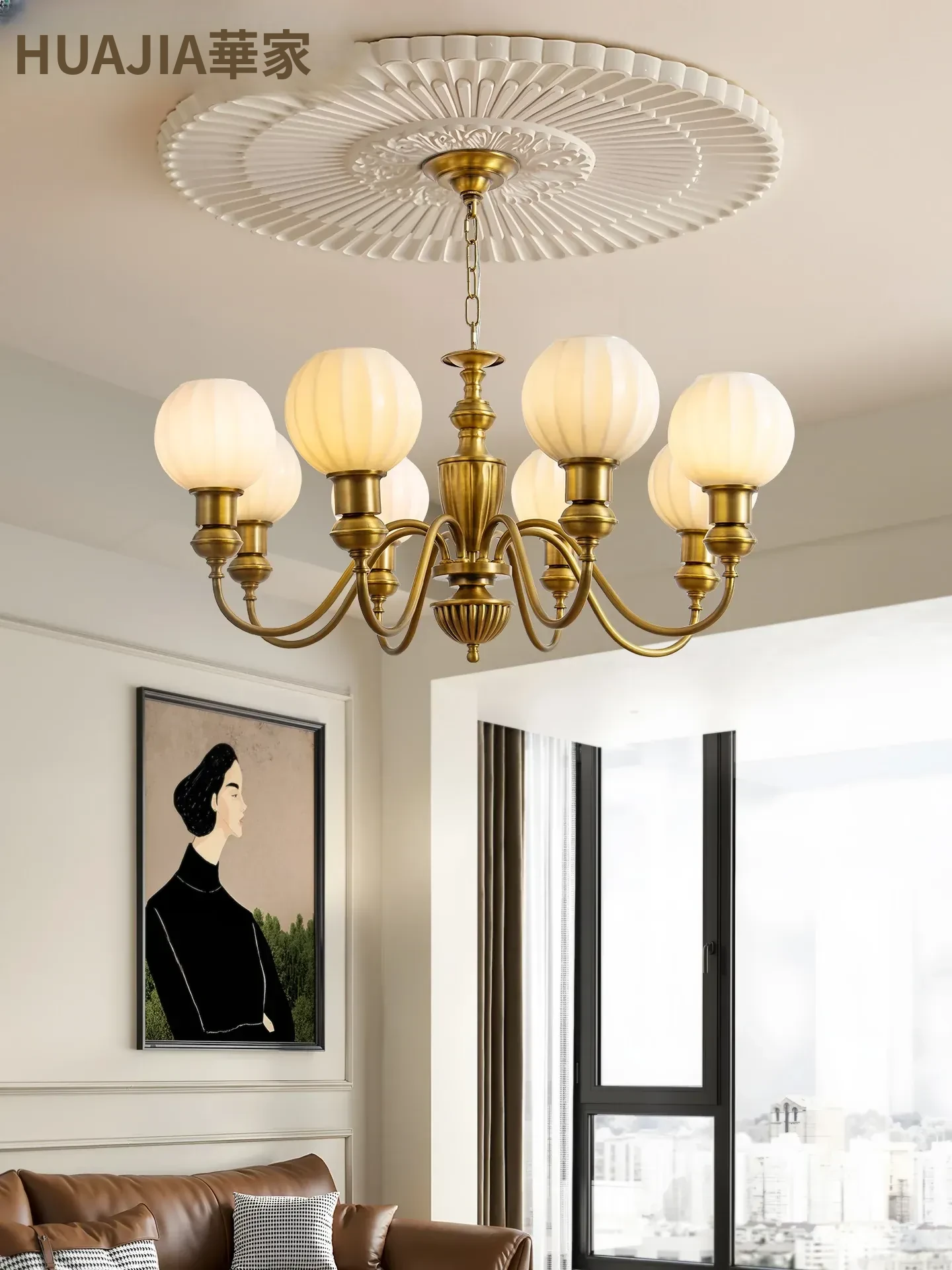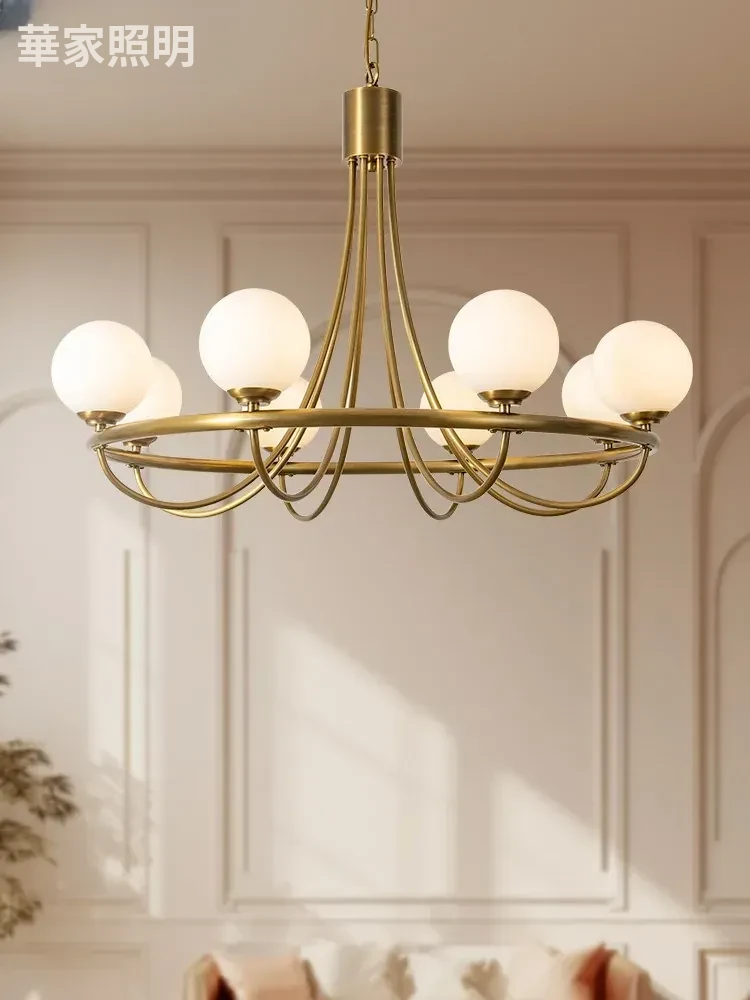 フランス風ビンテージシャンデリア - アメリカンレトロデザインの全銅製、リビングルームやダイニングホールにぴったりな高級感あふれる主灯。おしゃれな雰囲気を演出し、空間を華やかに彩ります!