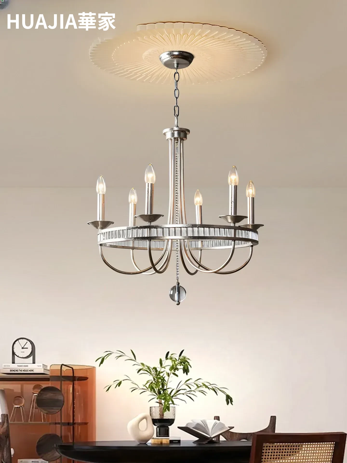 アメリカンスタイルのシャンデリア、リビングやダイニングにぴったりなラグジュアリーなクリスタルライト。シンプルで洗練されたデザインが魅力の高級インテリア照明。書斎やベッドルームにも最適な装飾灯具です。