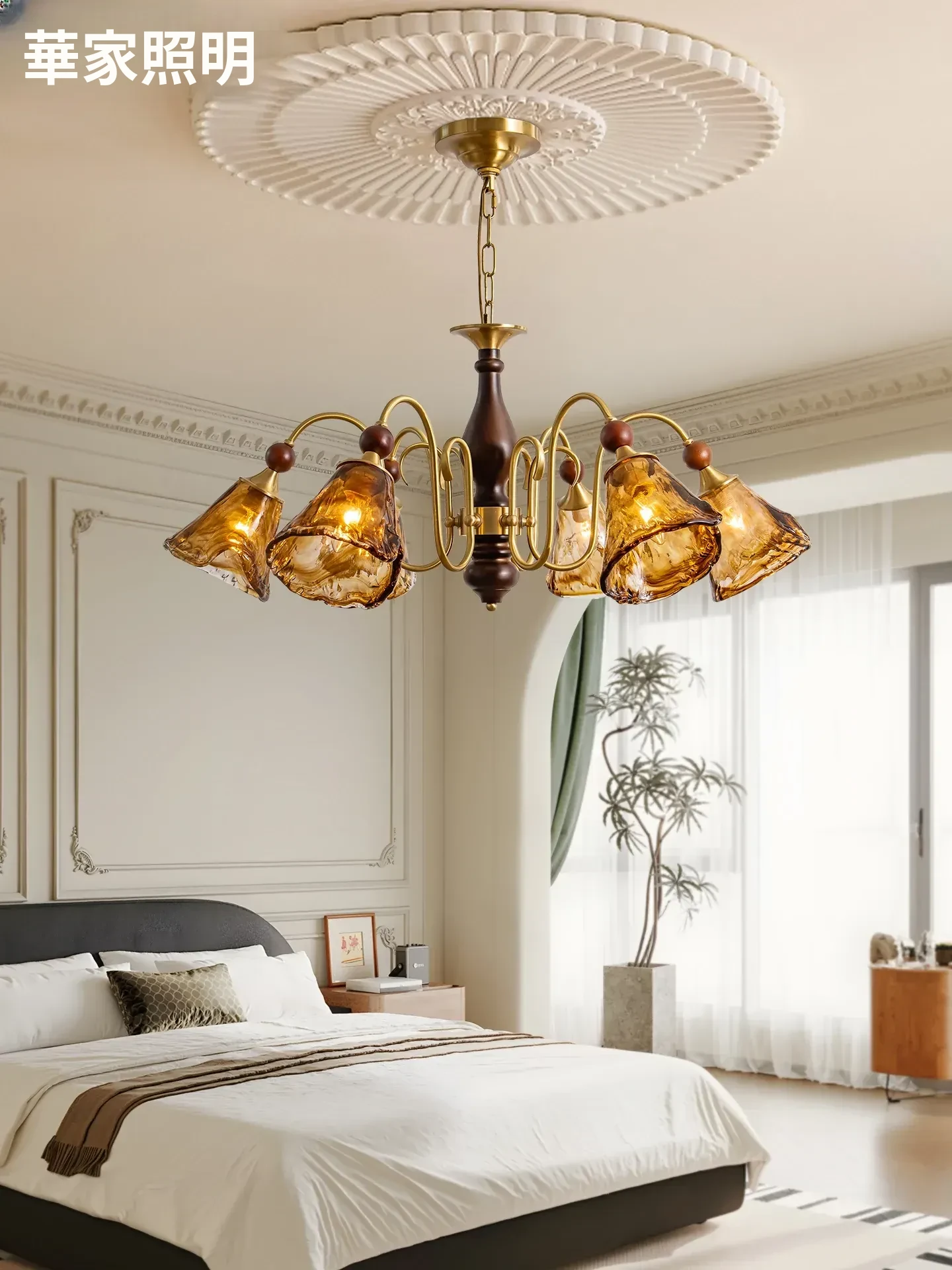 アメリカンヴィンテージシャンデリア|全銅製・ラグジュアリーなフレンチスタイル|高級感あふれるダイニングライト|アンティークブロンズガラスのベッドルーム照明│洗練された空間を演出!